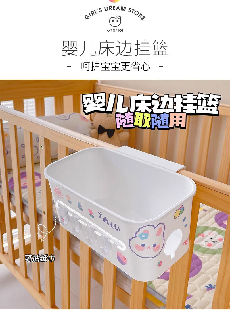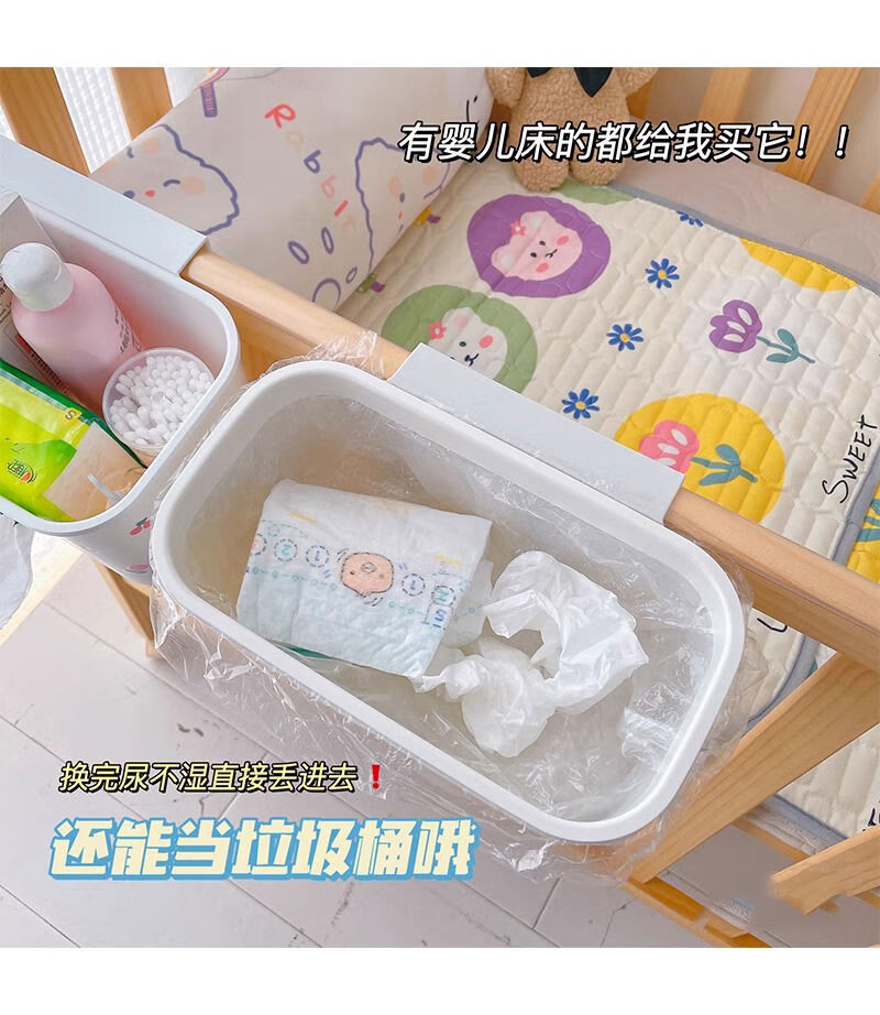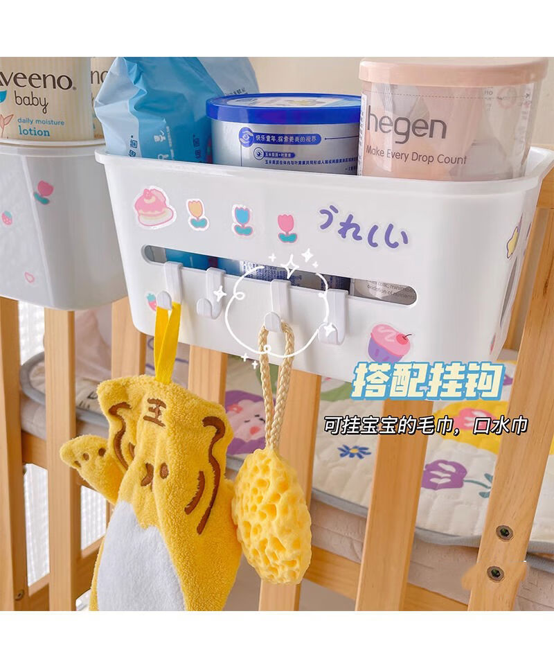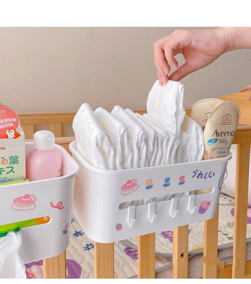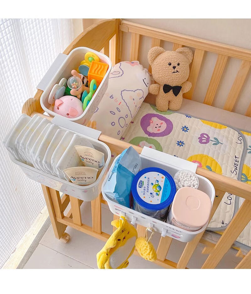 Mihong bedside hanging basket baby bedside diaper storage box storage rack storage bag crib hanging storage hanging bag gray and white 1 pack + sticker