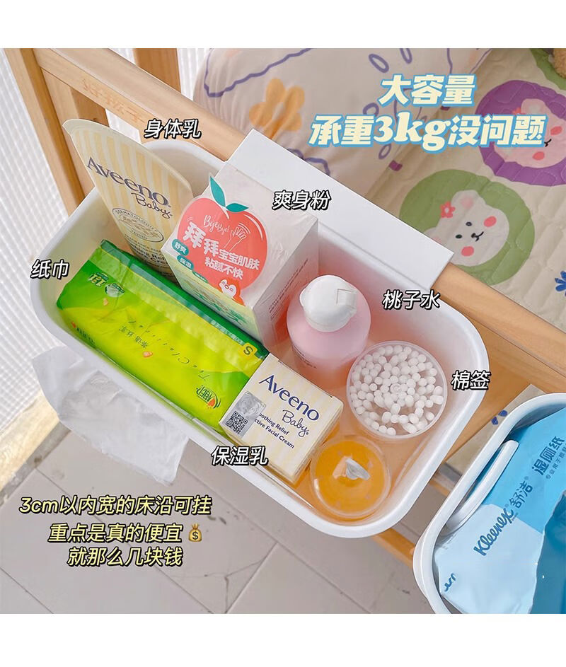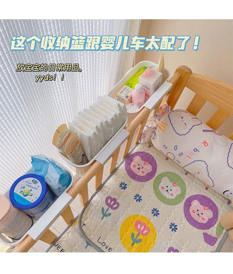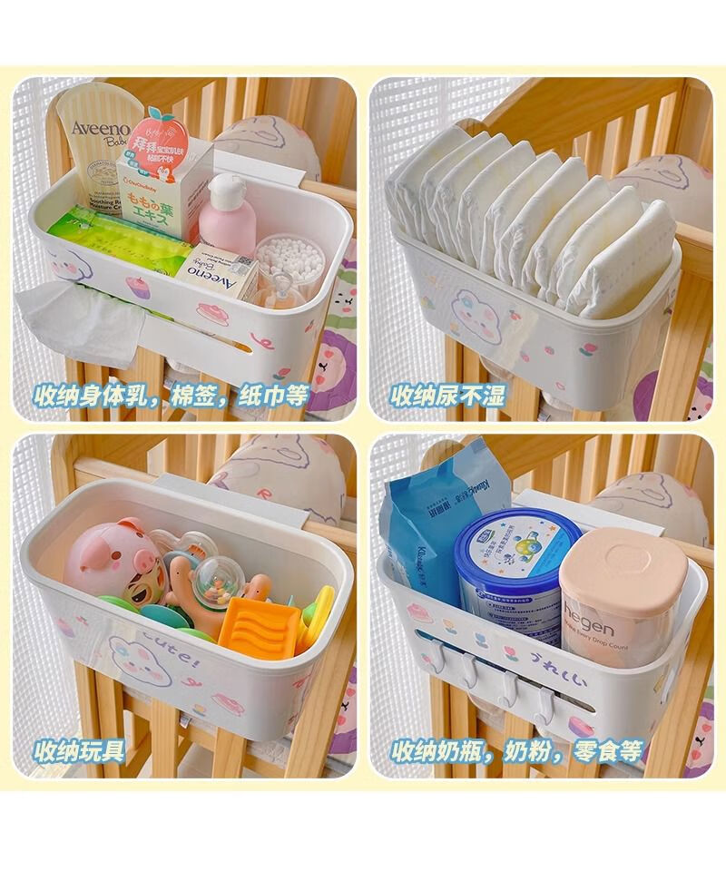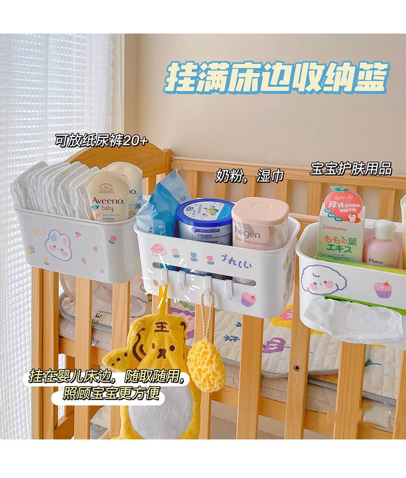 Mihong bedside hanging basket baby bedside diaper storage box storage rack storage bag crib hanging storage hanging bag gray and white 1 pack + sticker