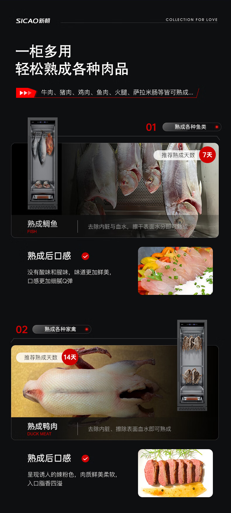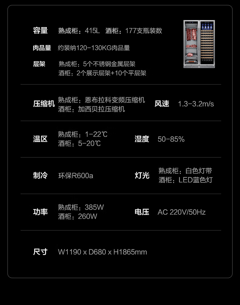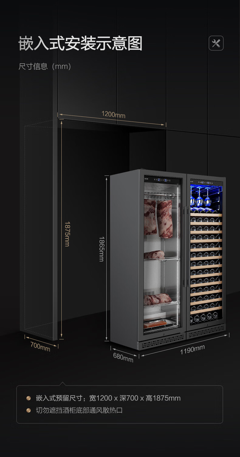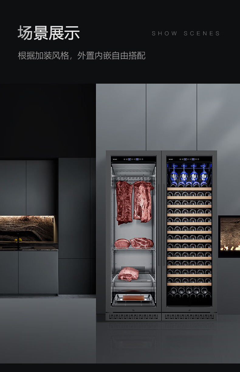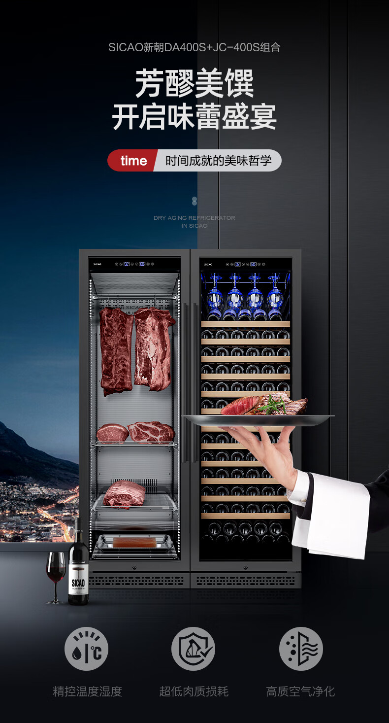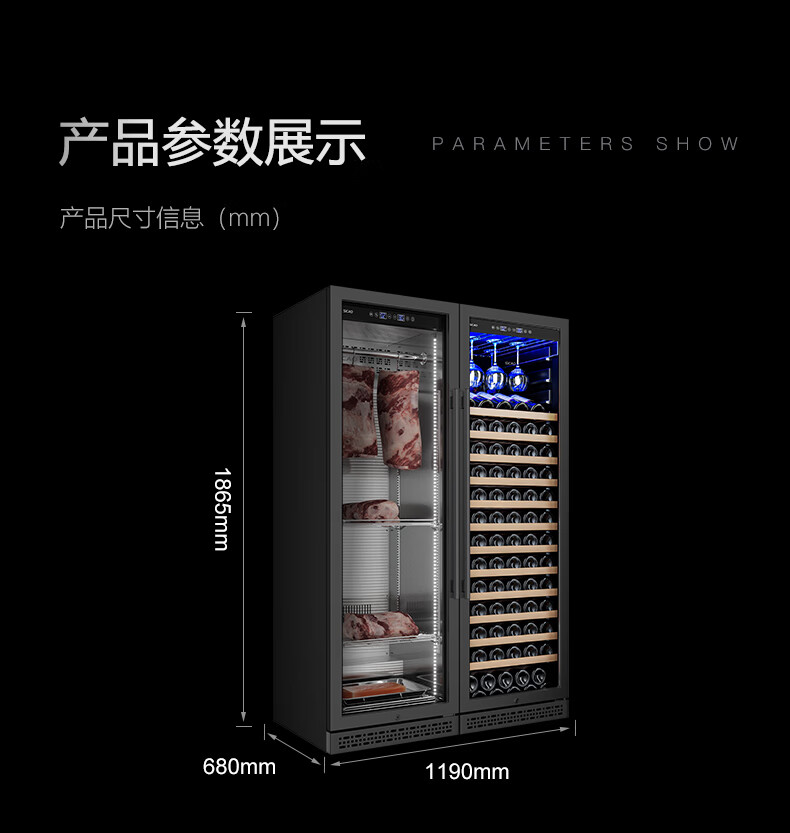 Xinchao Beef Aging Cabinet Commercial Large Capacity Air-cooled Intelligent Wine Cabinet Double Door Intelligent Air-cooled Frost-free Preservation Aging Cabinet + Wine Cabinet Dual Combo - Original Color