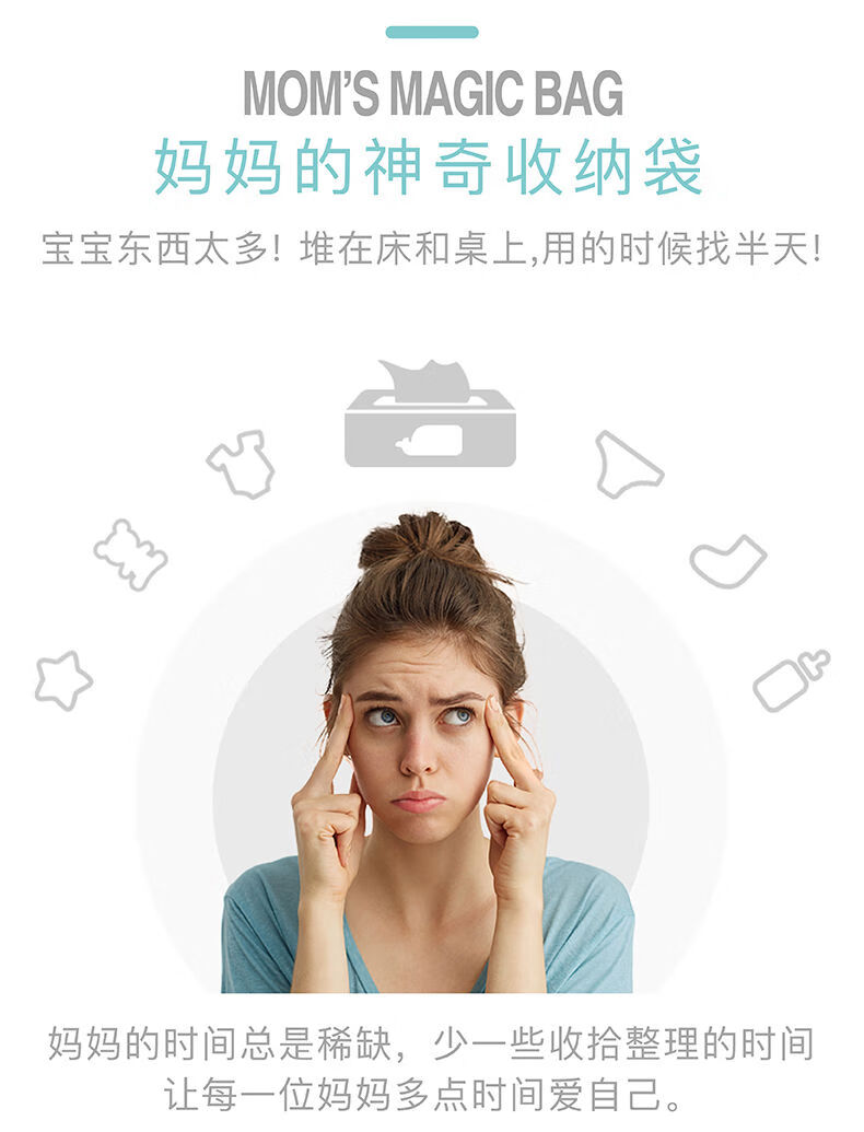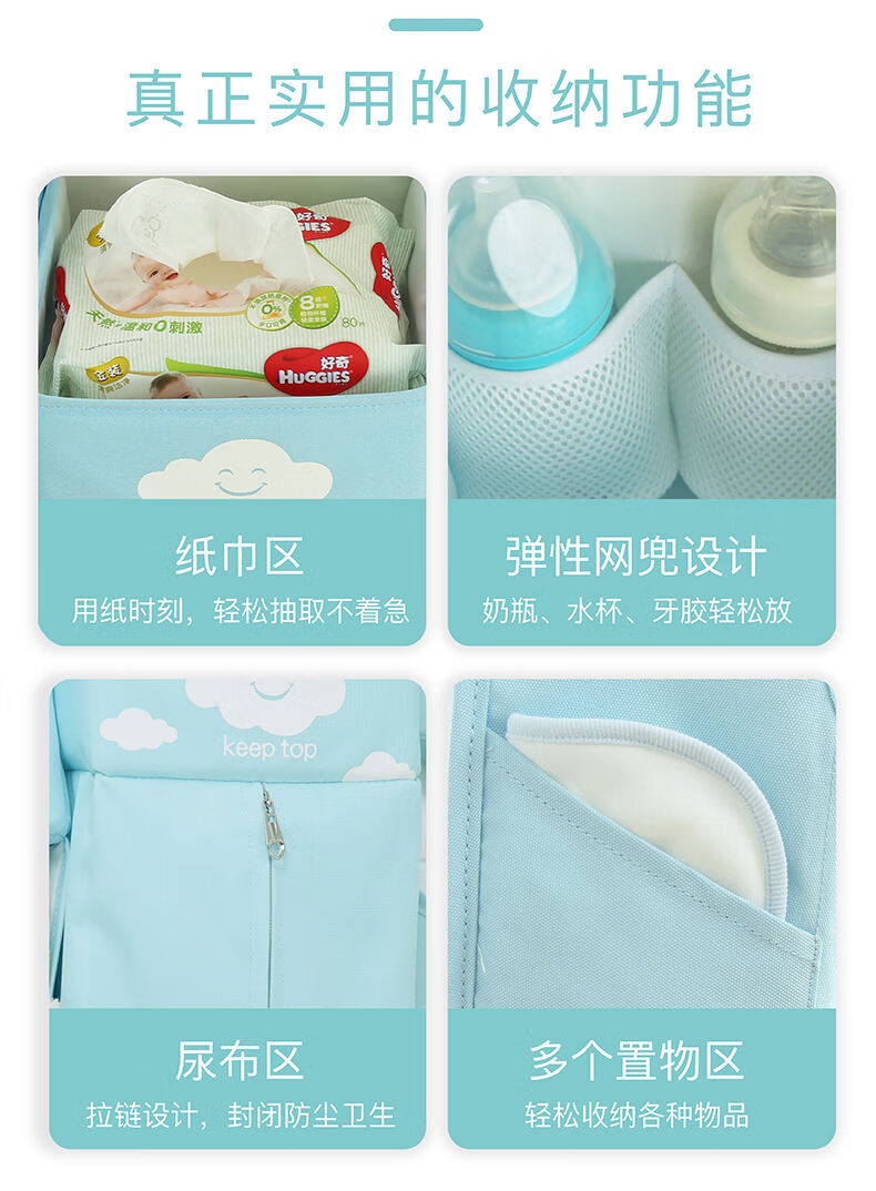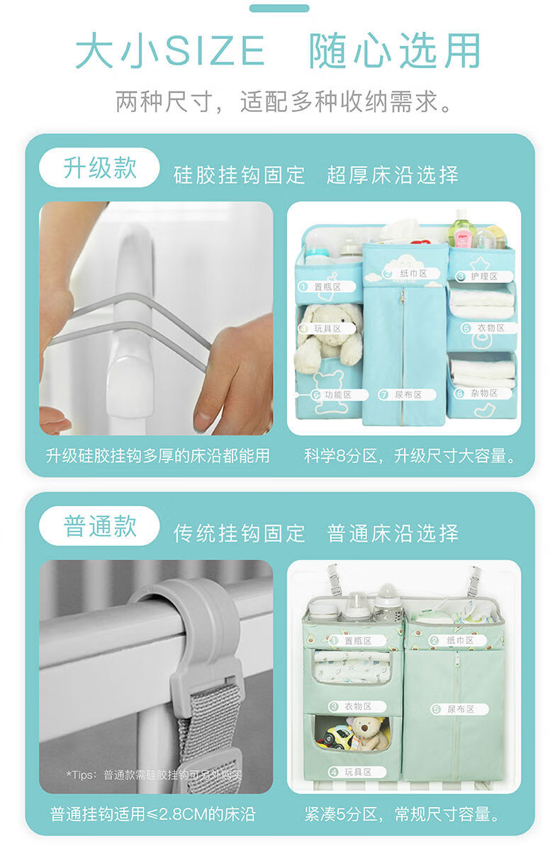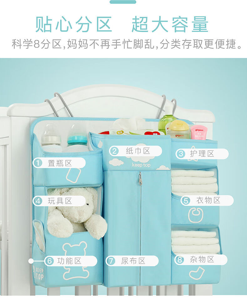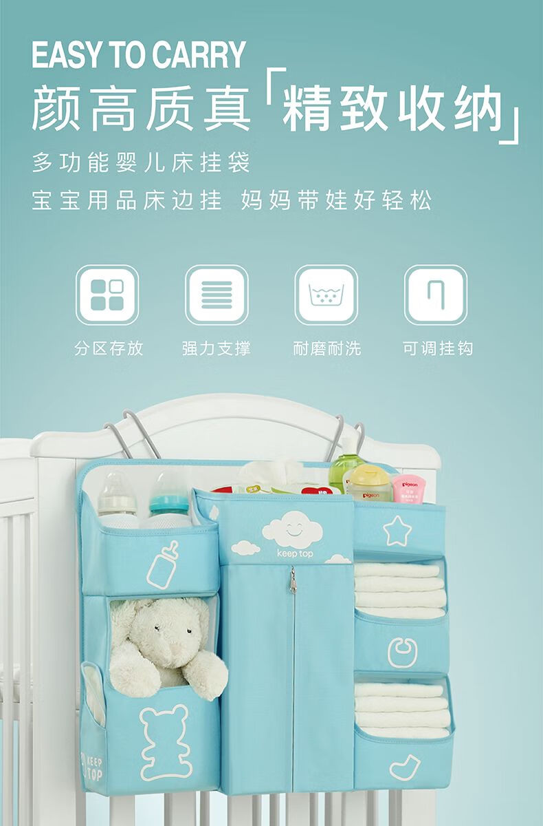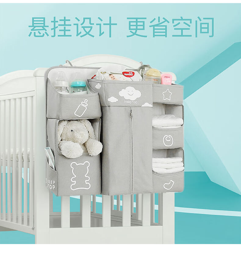 Yusenyi crib storage bag hanging bag bedside diaper storage newborn bedside storage bag diaper bag multi-functional storage light gray upgraded to enlarge - adjustable hook