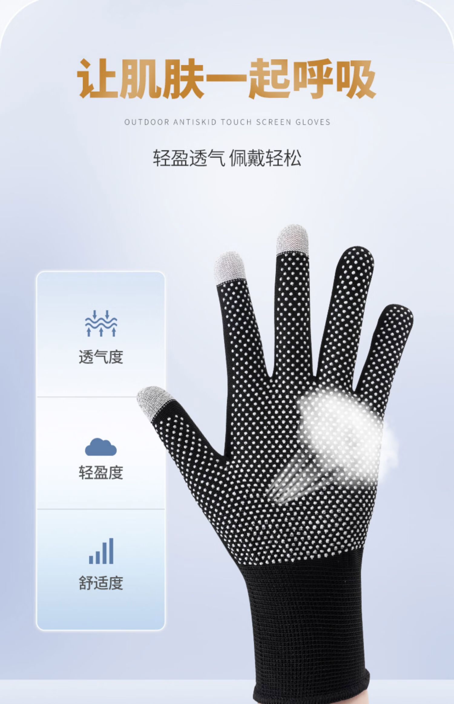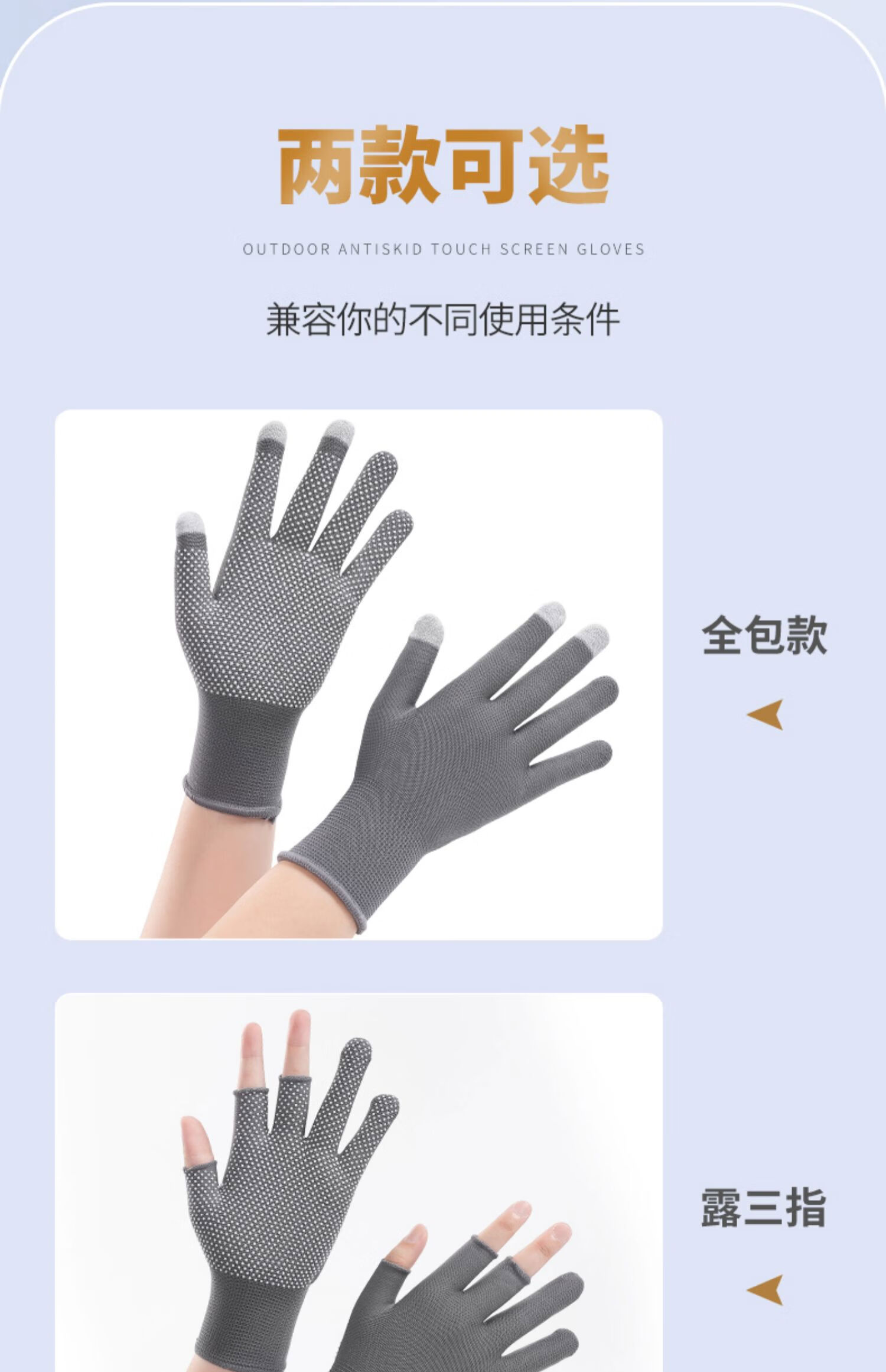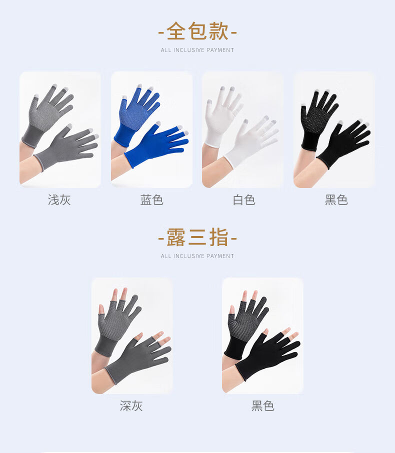 Touch screen sun protection gloves for men and women in summer outdoor driving sports fishing thin non-slip cycling ice silk half-finger exposed three-finger dark gray total 2 pairs one size