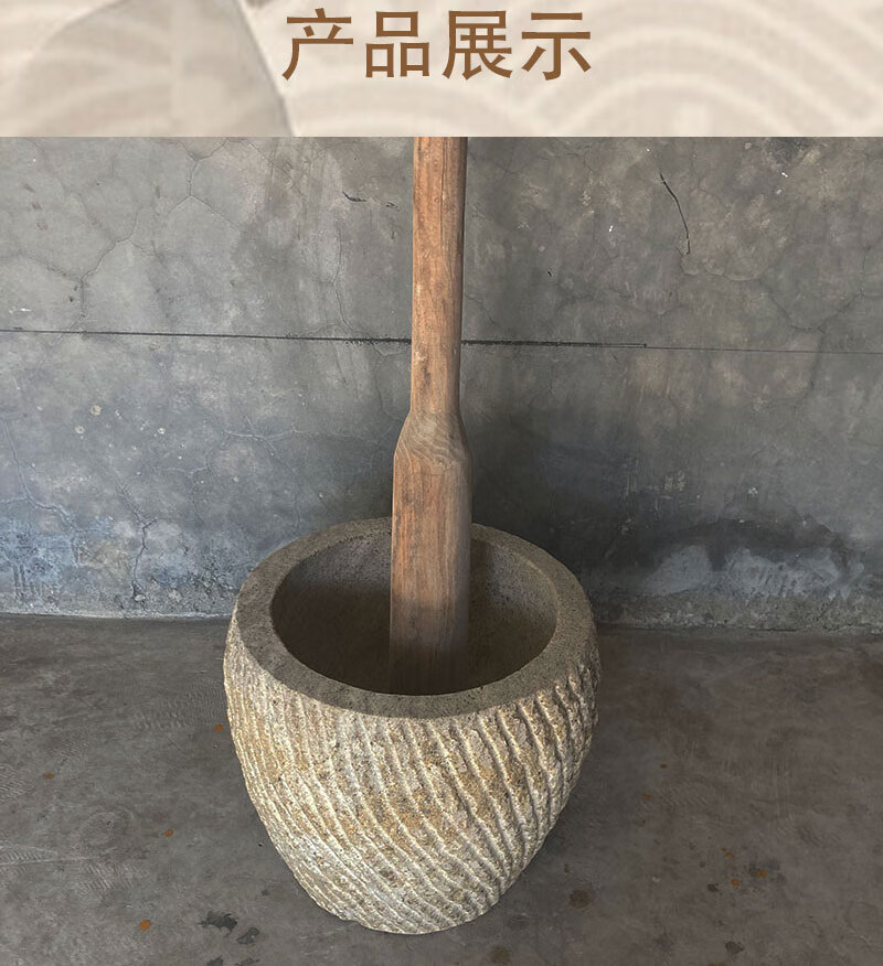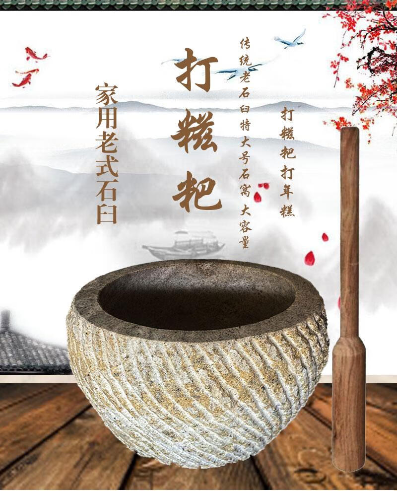Natural glutinous rice cake making stone mortar for making rice cakes, extra large pair of stone jars for making mugwort and red pepper, household traditional stone nest, 25 cm diameter, free stone hammer