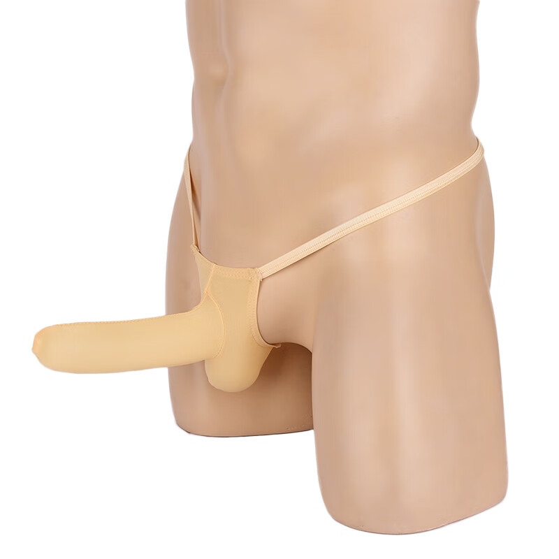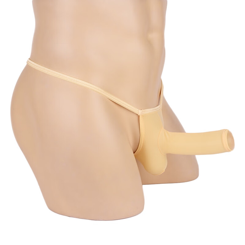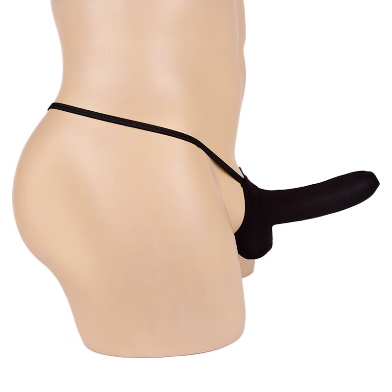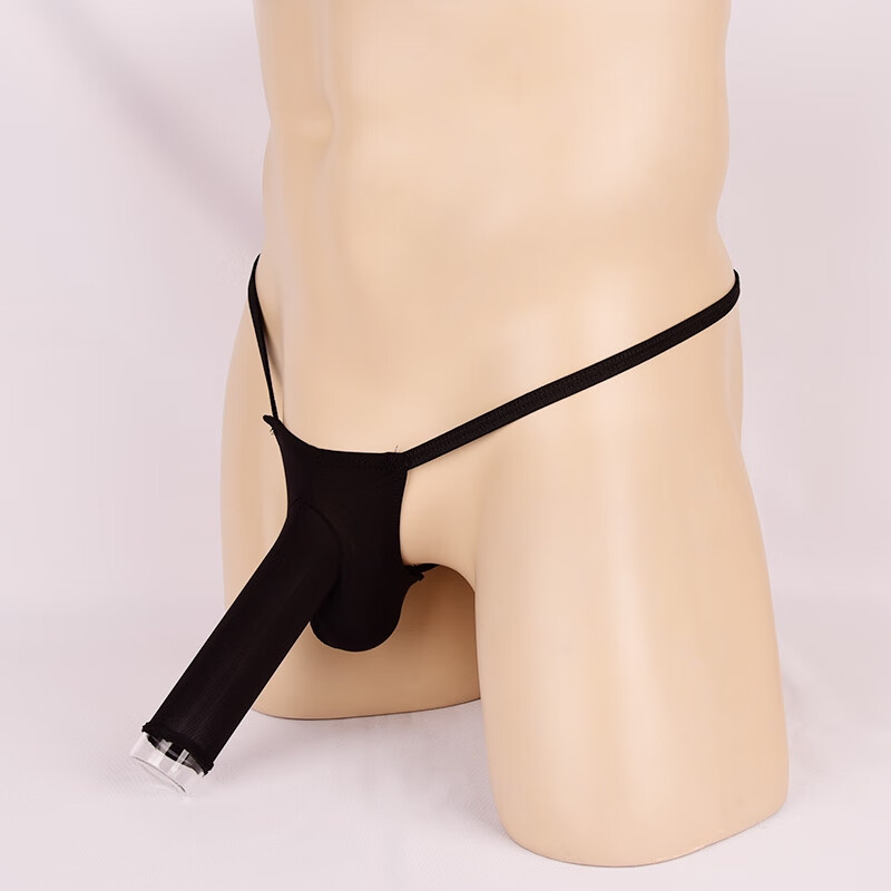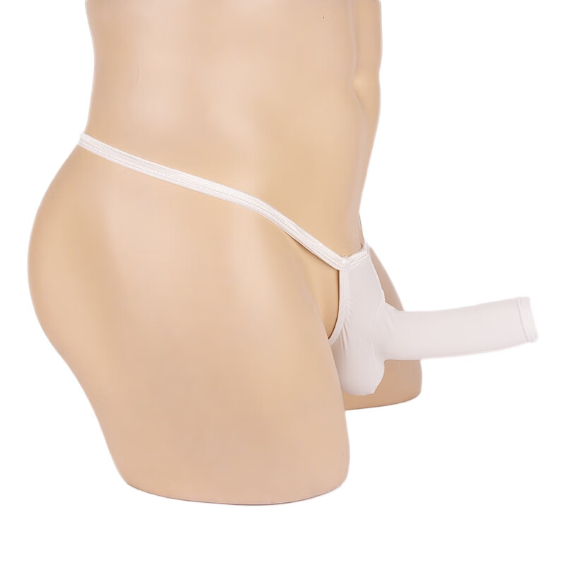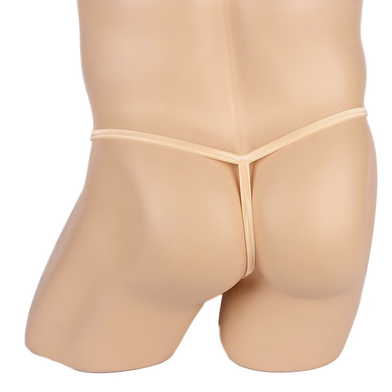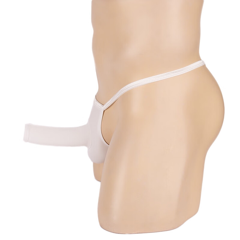 T-string men's ice silk underwear, slightly transparent, smooth and sexy, low-waisted men's t-pants, tight-fitting, with a thread, white closed mouth