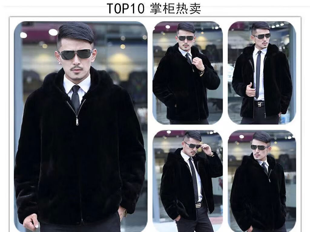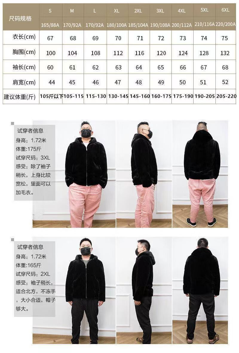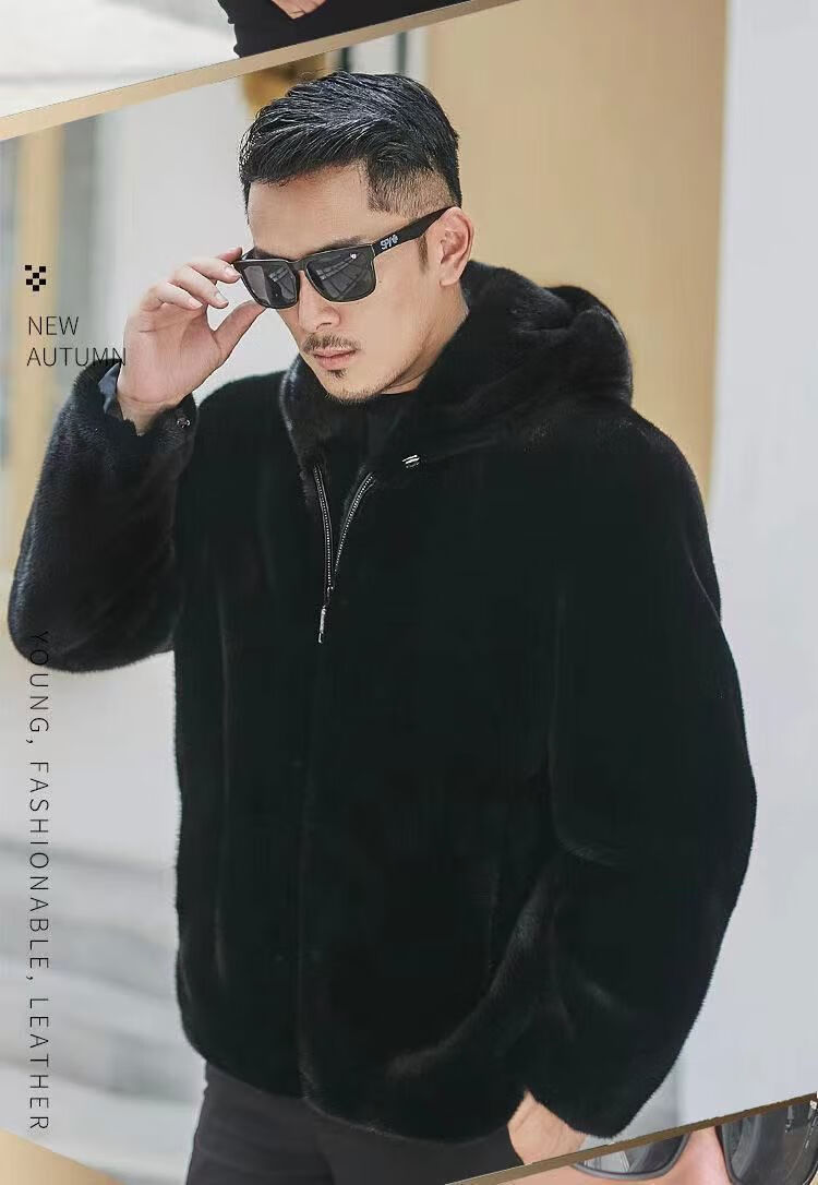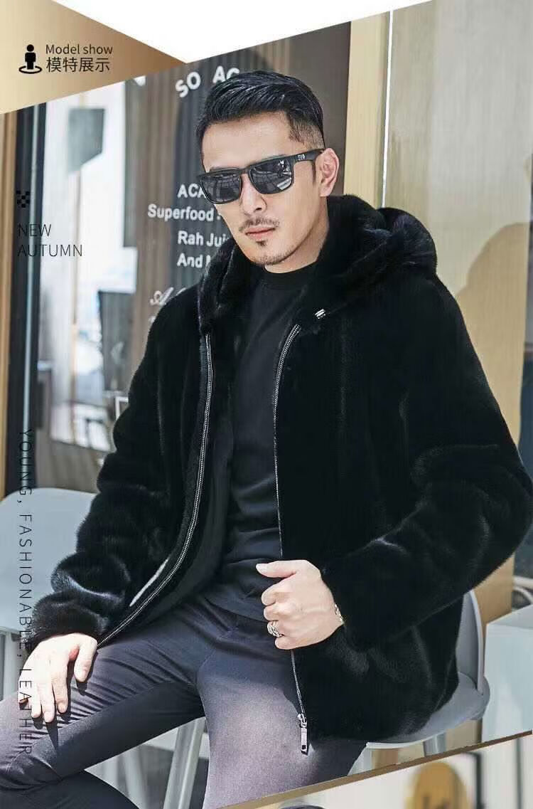 Off-season mink coat men's velvet whole mink winter hooded jacket mink fur imitation mink coat thickened hooded style XL XL125-135Jin Jin equals 0.5 kg