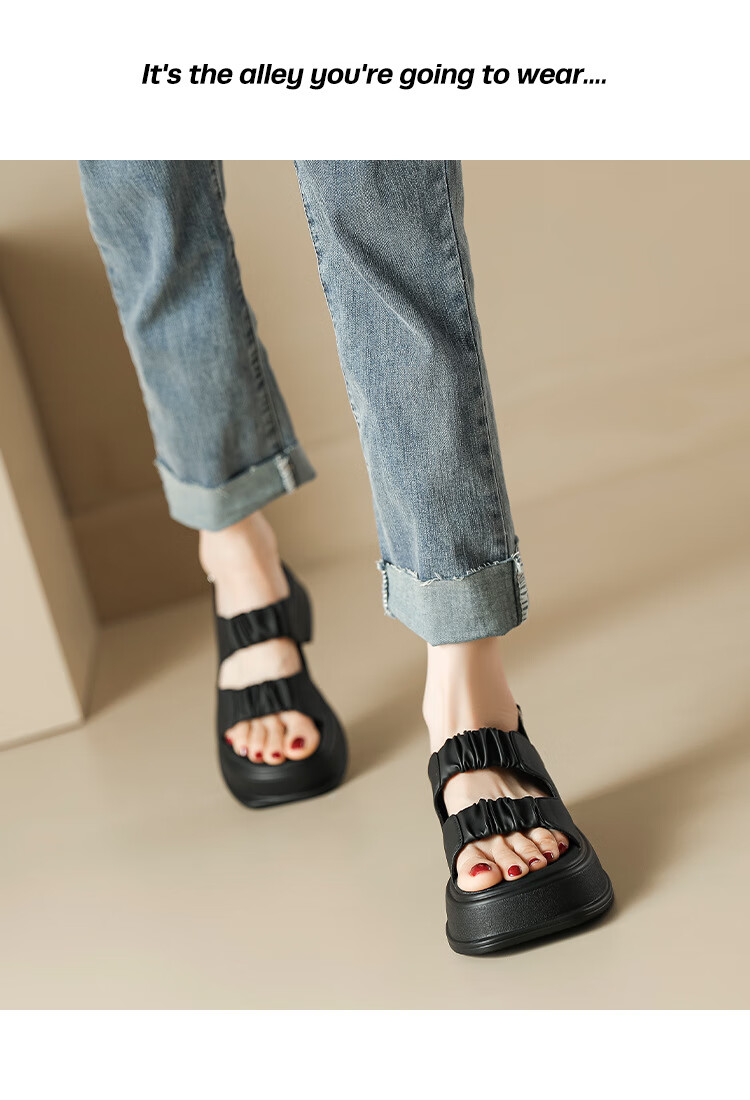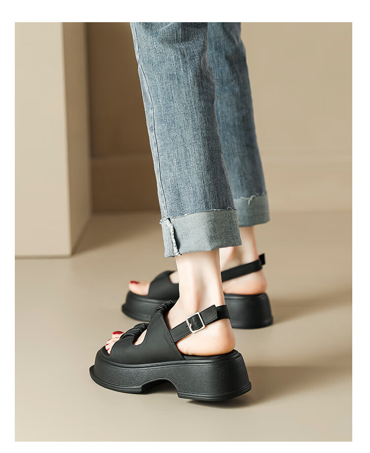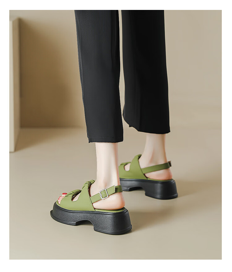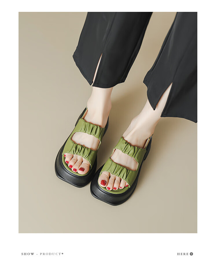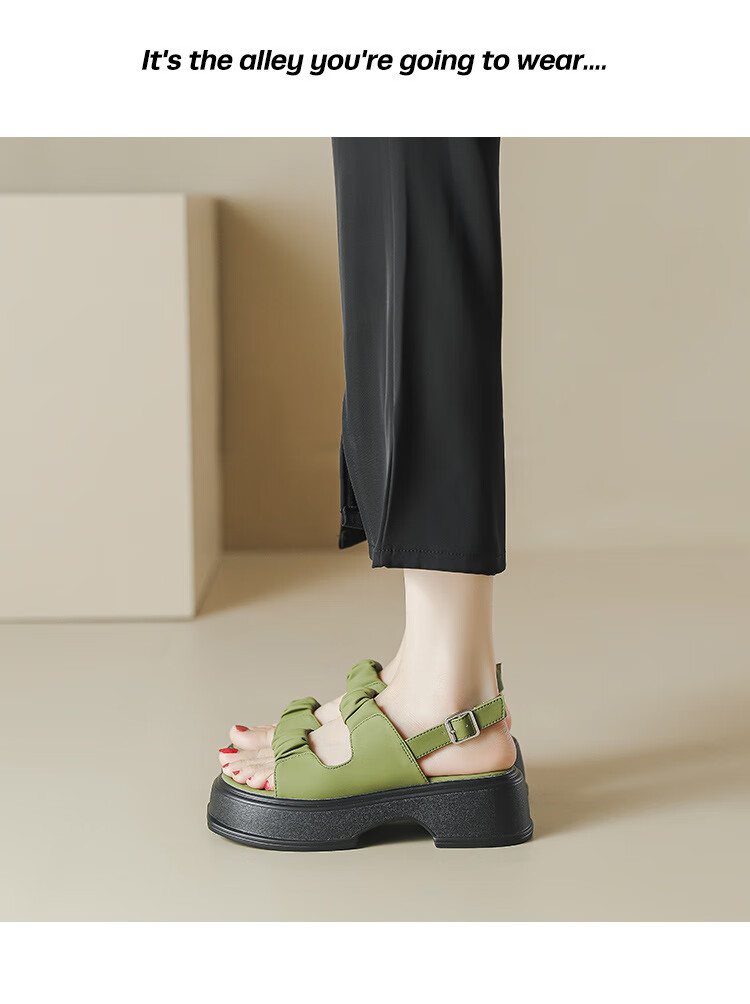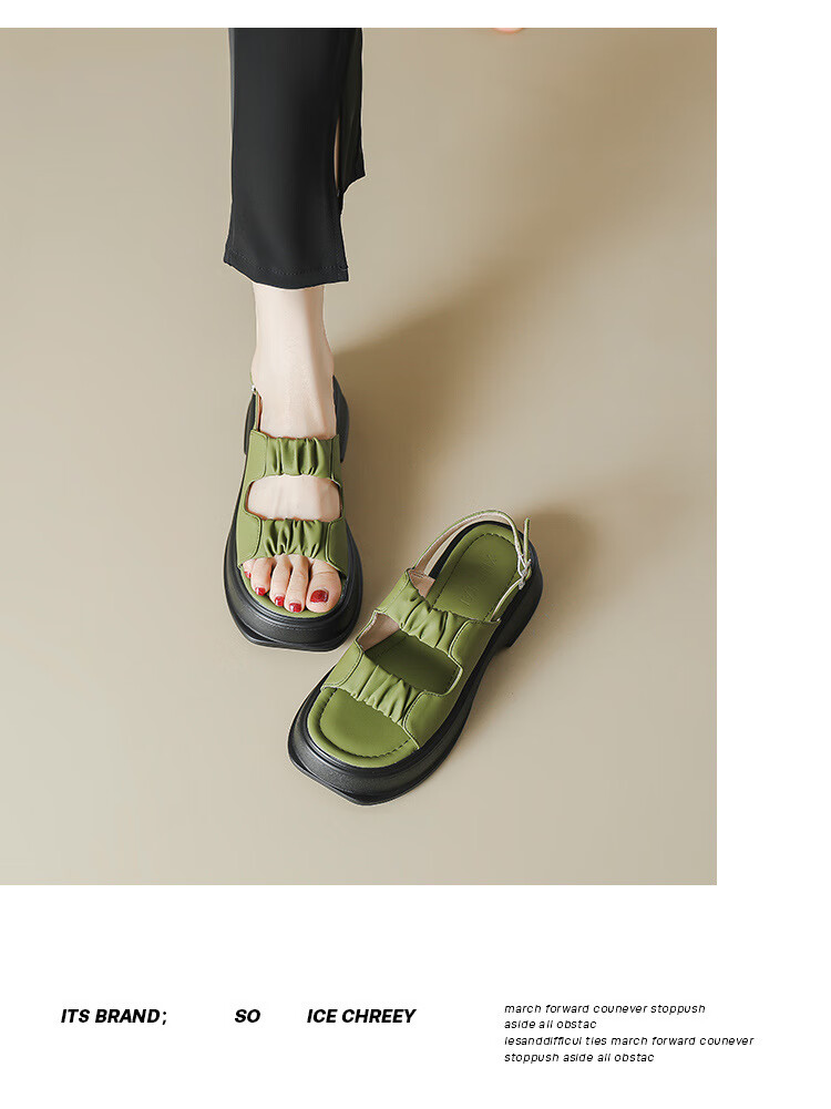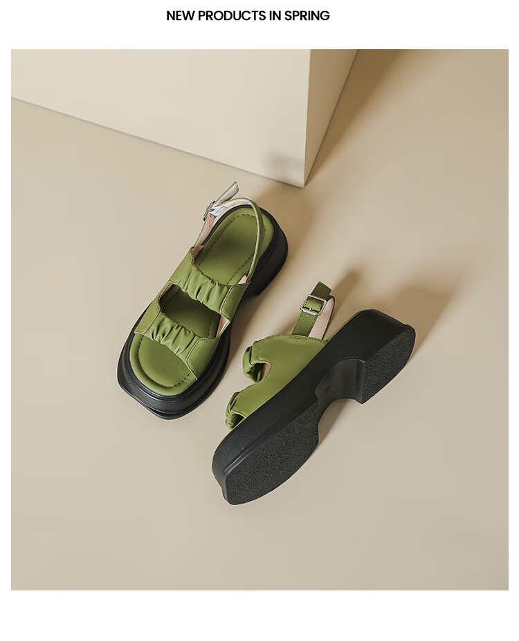 Mustard green white thick-soled sandals for women 2025 new summer Roman shoes platform sole sandals mustard green 40