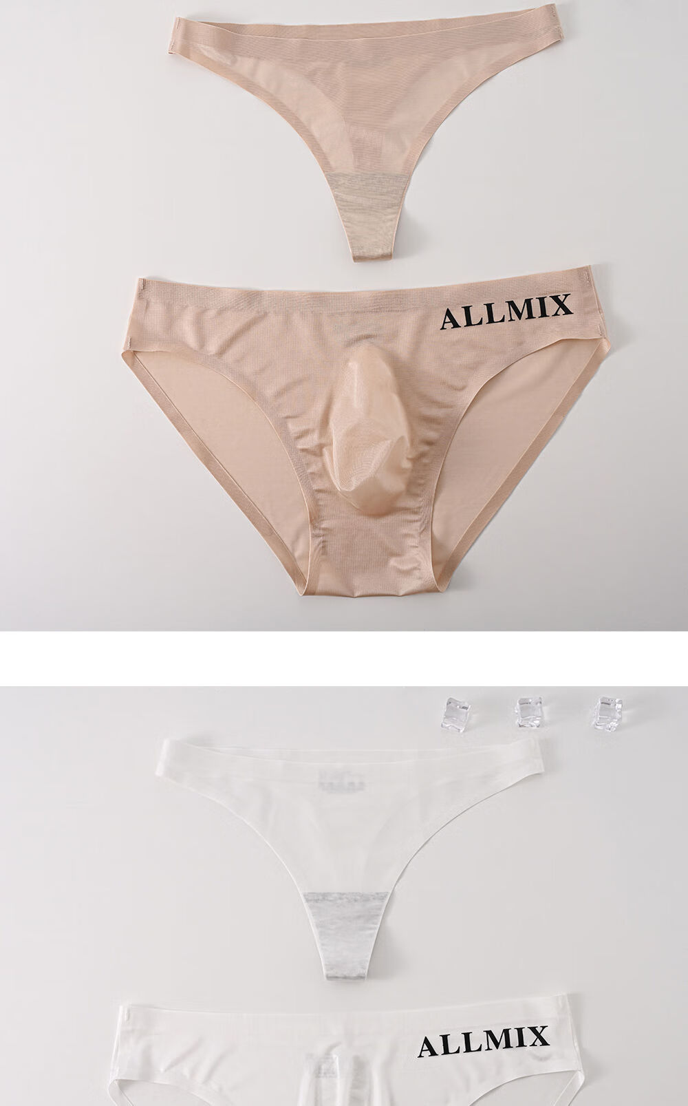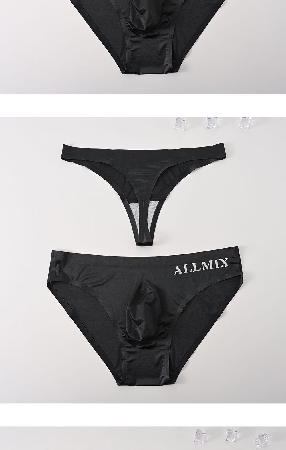 Fangluyu sexy pure lust style couple underwear ice silk seamless men and women pair of triangle thong underwear 2025 new summer thin black male L + female M