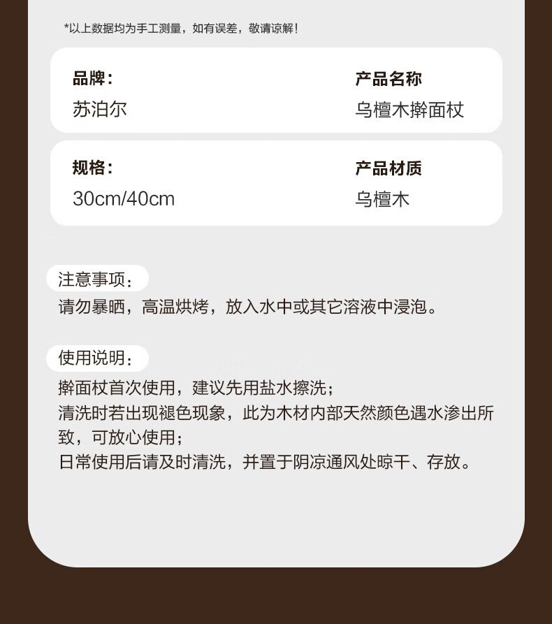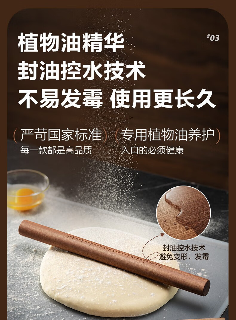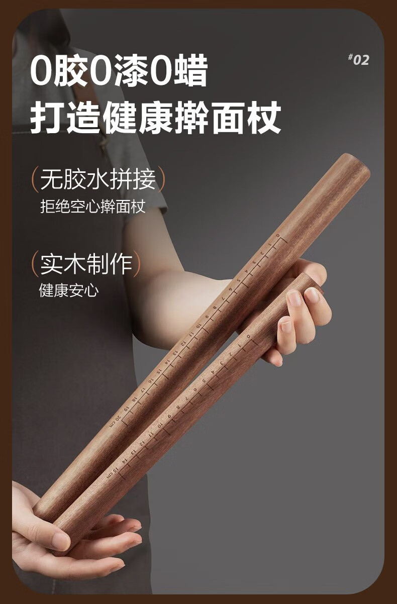 SUPOR ebony rolling pin solid wood pressing pin tool household extended rolling pin to roll out dumpling skin artifact rolling pin ebony rolling pin 40cm