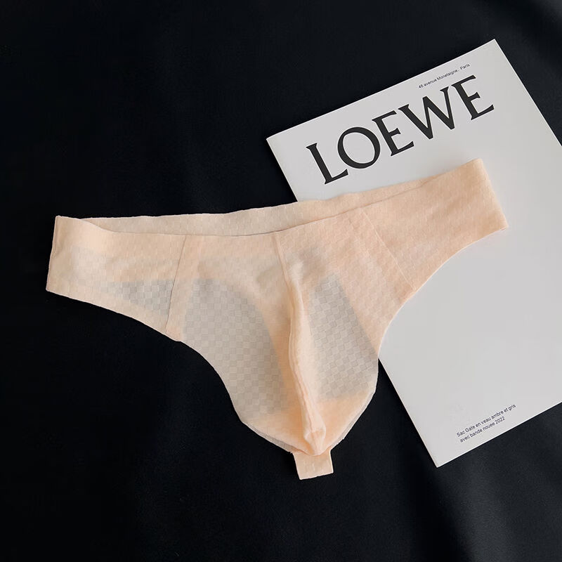 Timebao men's thong men's U-convex summer simple cool seamless ice silk one-piece low-waist fashion sexy shorts C79 white navy powder M90-120Jin Jin is equal to 0.5 kg