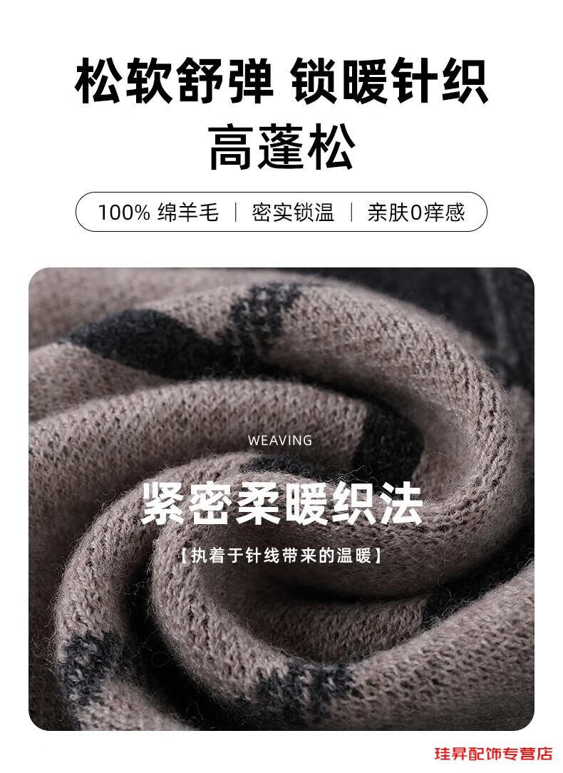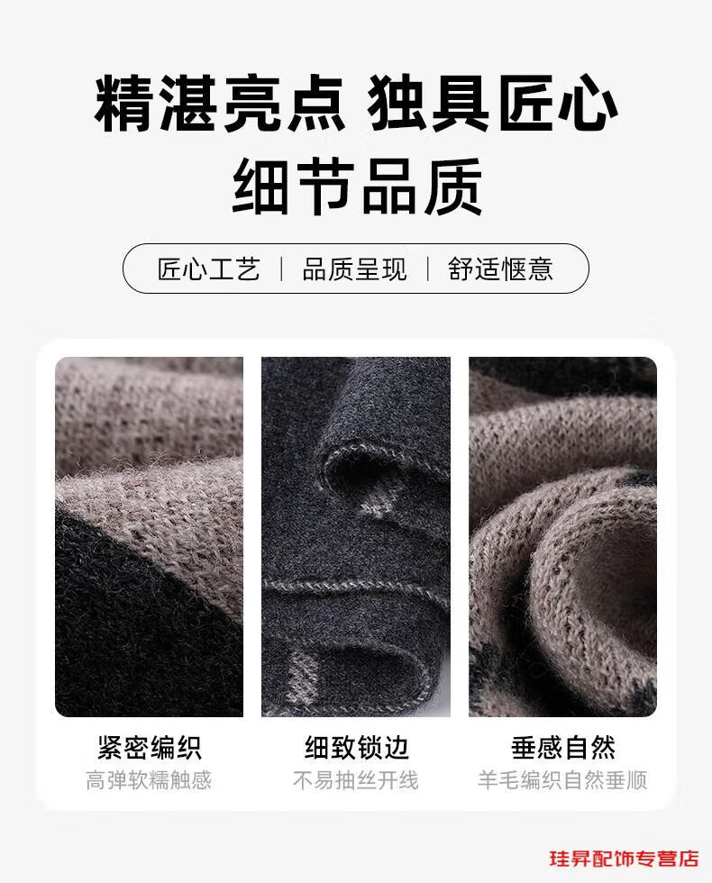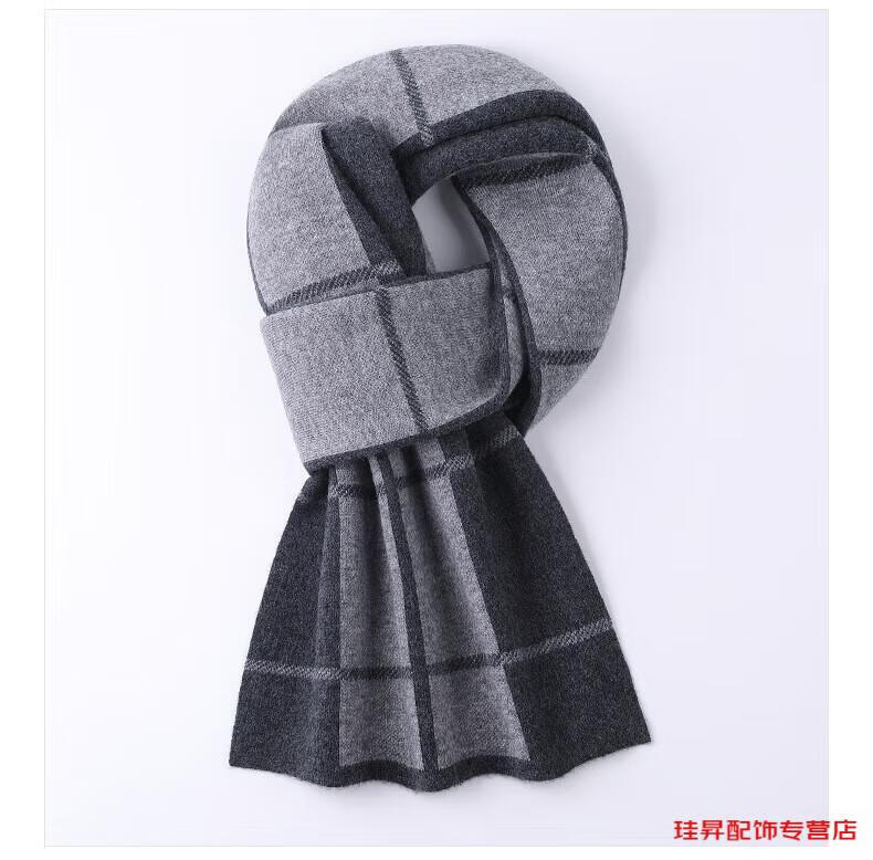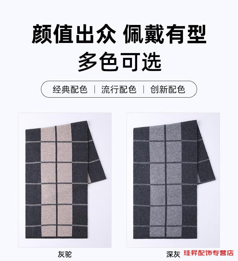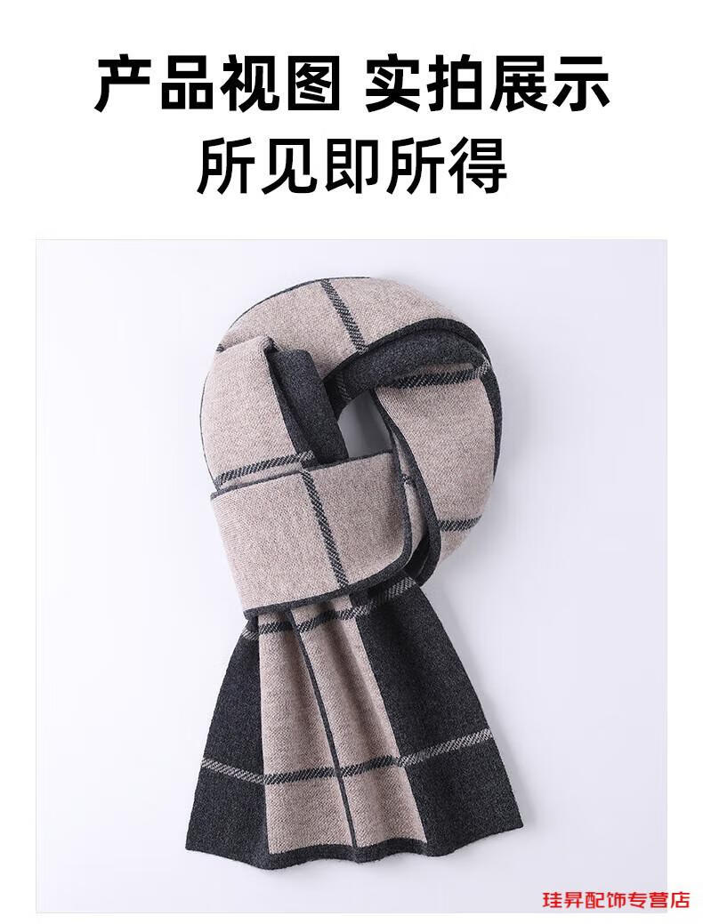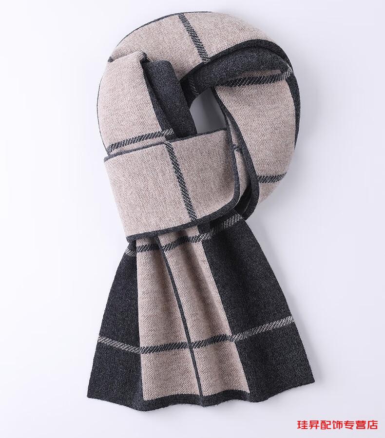 Hengyuanxiang scarf men's wool 2026 winter new style simple warm plaid men's scarf for dad and boyfriend's birthday Gray Camel