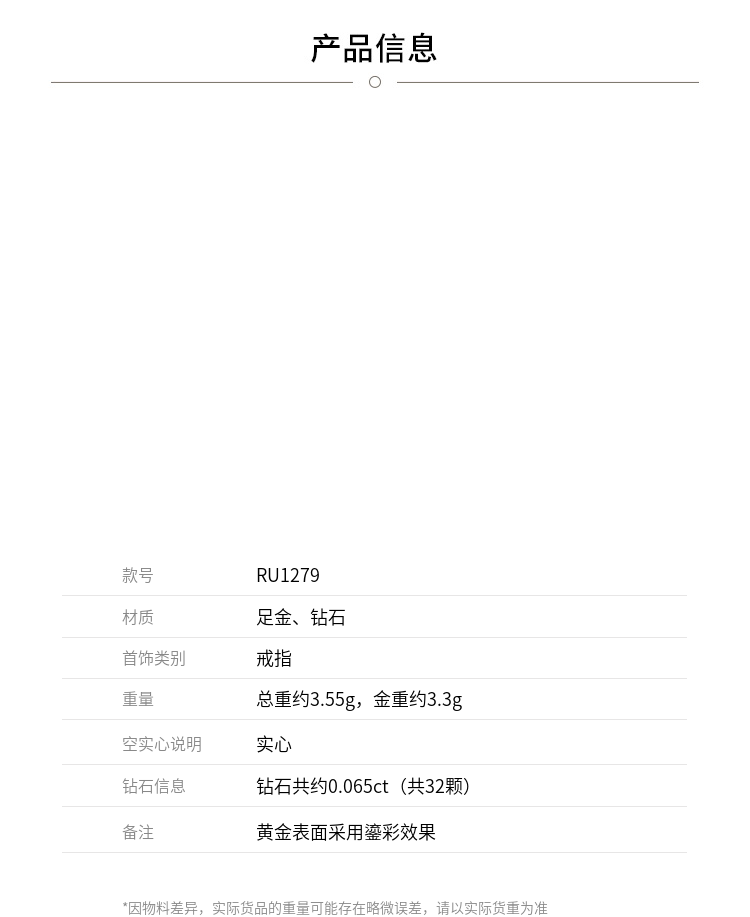 Chow Tai Fook Pre-order Chuanxi Series Pure Gold Inlaid Diamond Ring for Women as a Gift RU1279 Customized model, returns and exchanges are not supported, please contact customer service before purchasing, it will be shipped in about 65 days