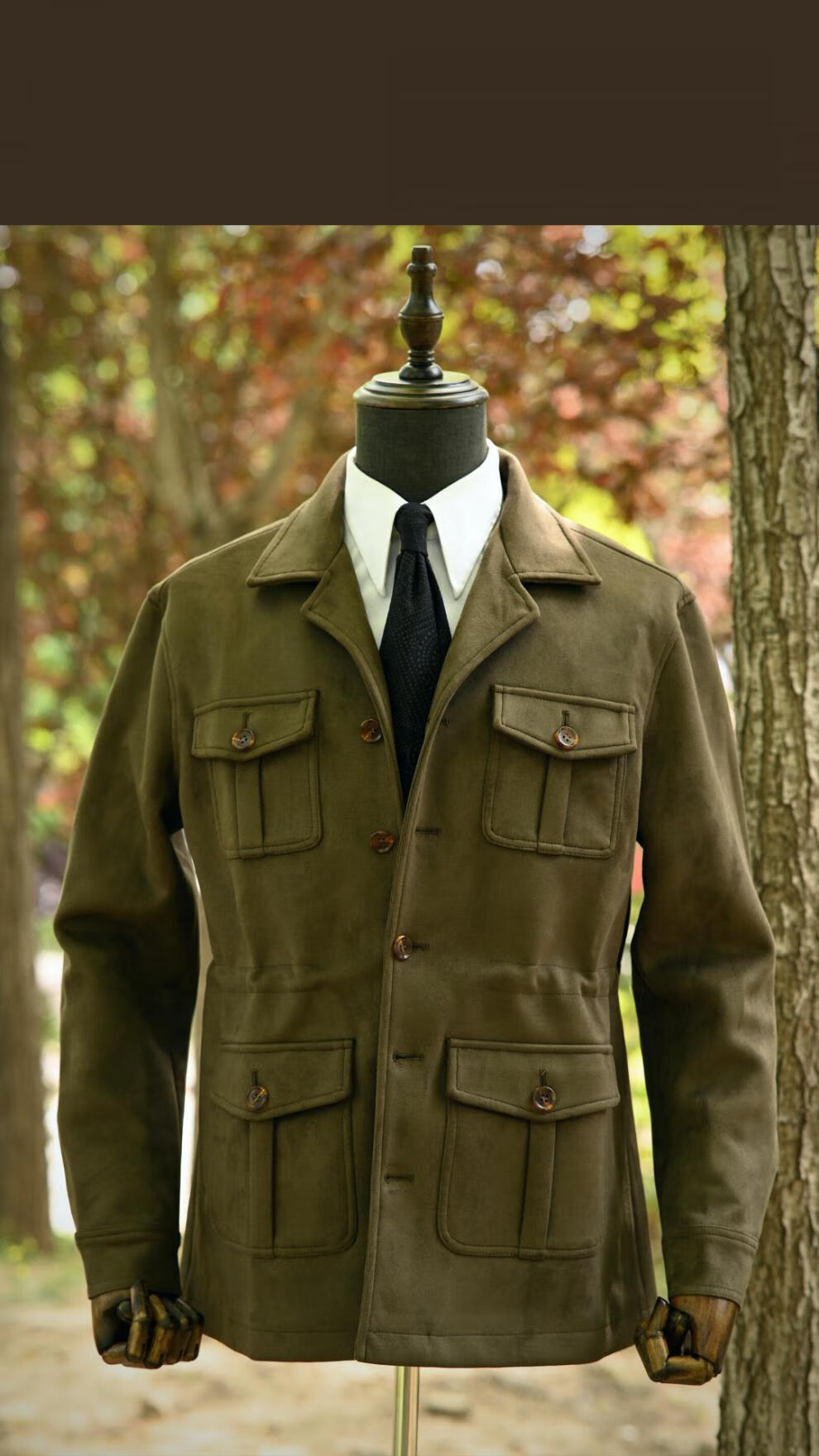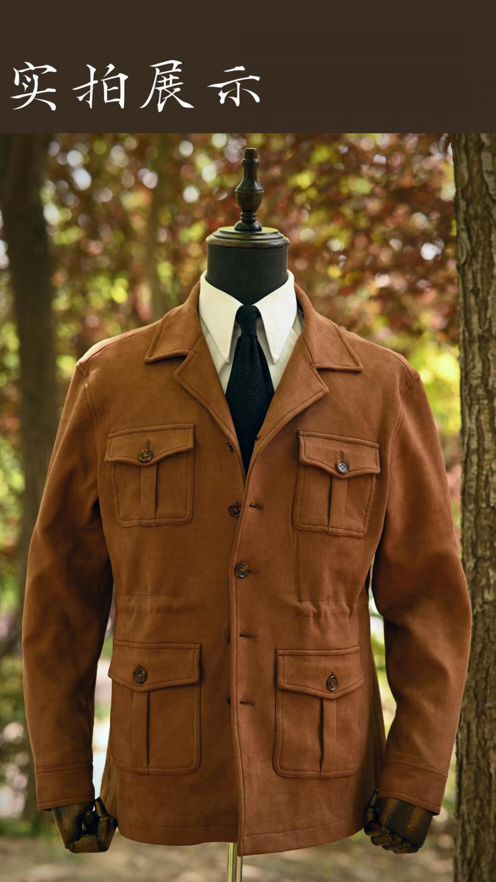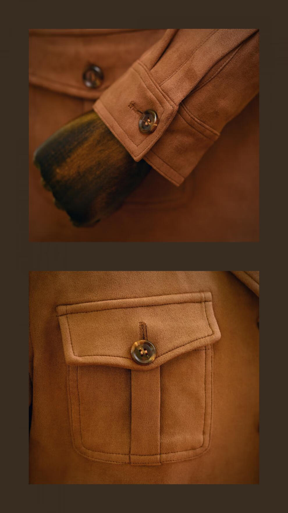 VDJHE spring and autumn hunting jacket imitation deerskin velvet multi-pocket American casual retro workwear khaki style jacket brown XL