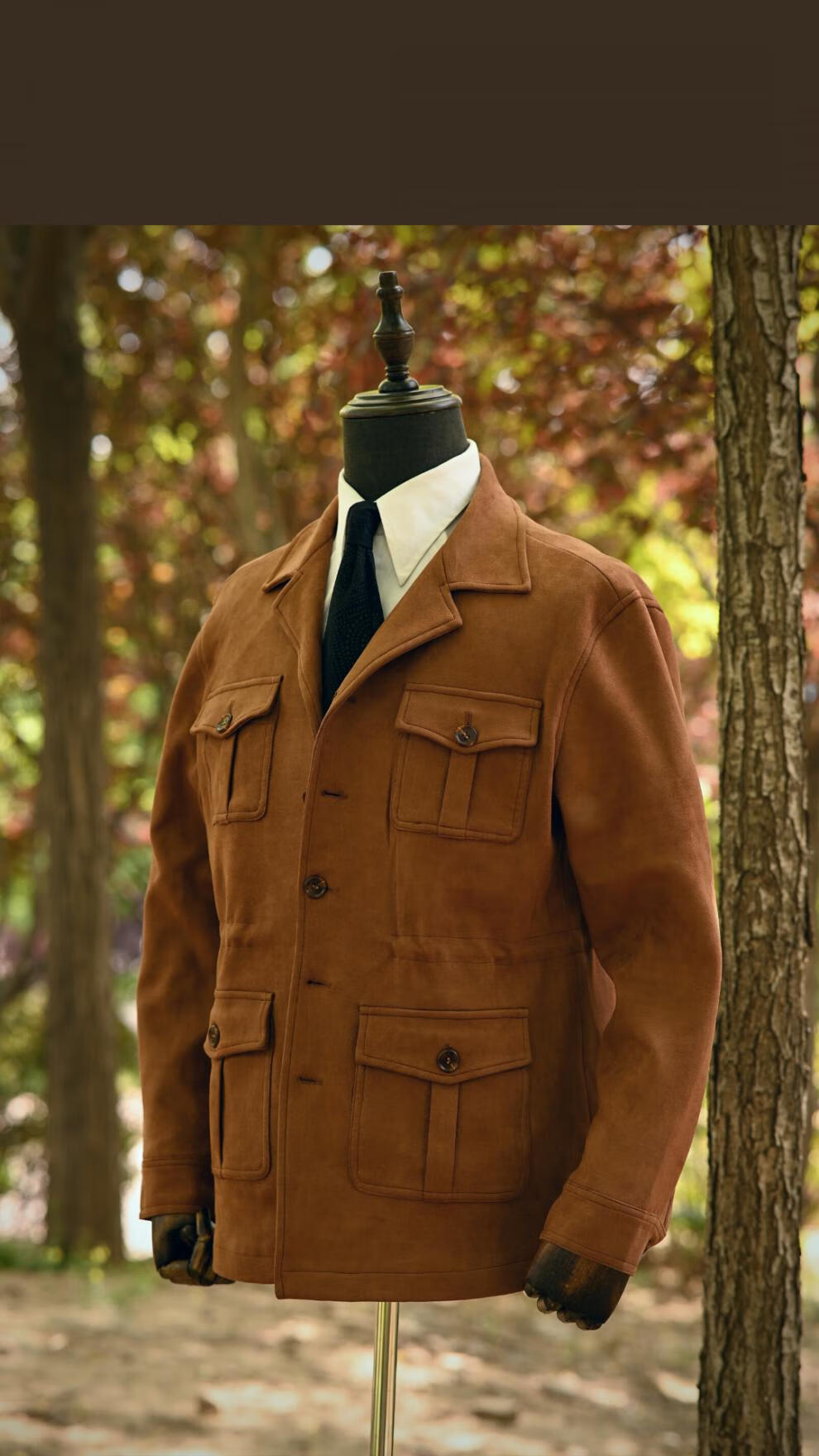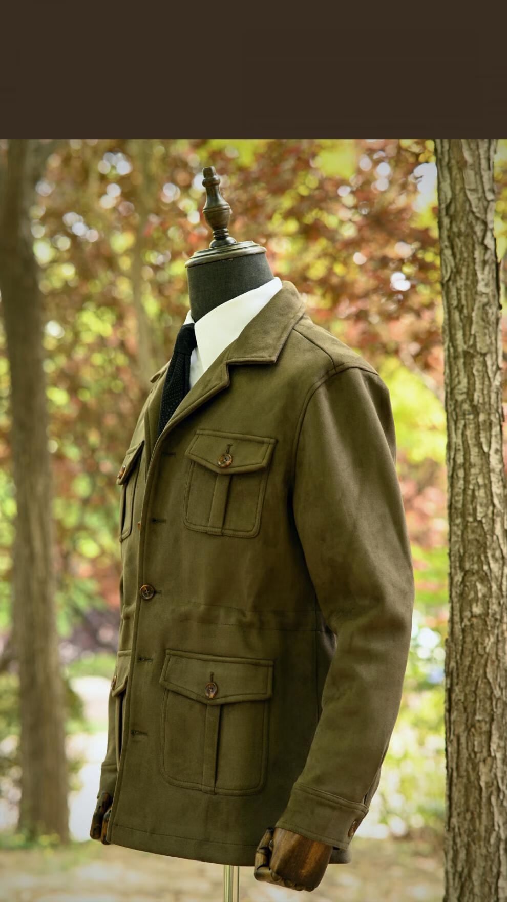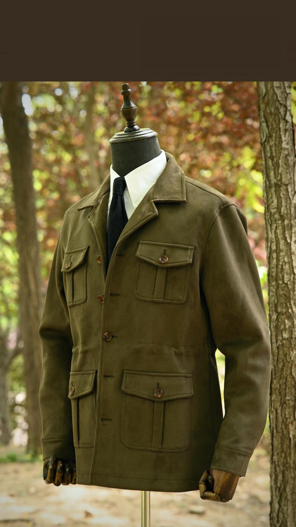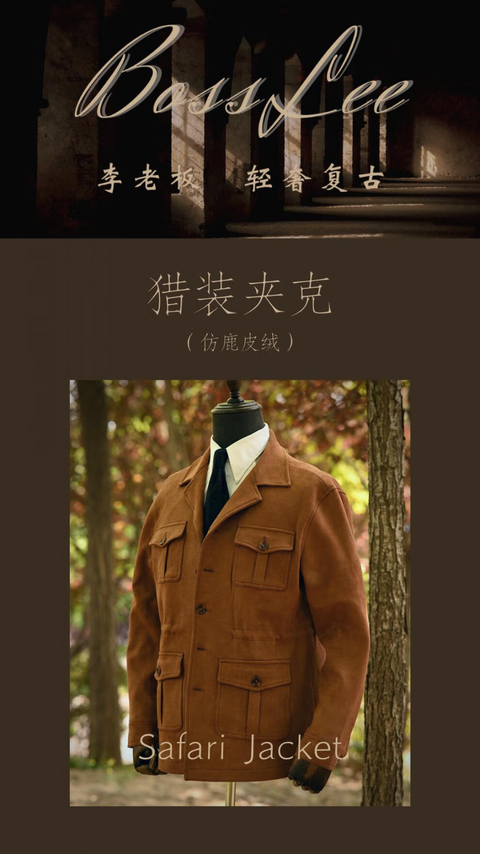 VDJHE spring and autumn hunting jacket imitation deerskin velvet multi-pocket American casual retro workwear khaki style jacket brown XL