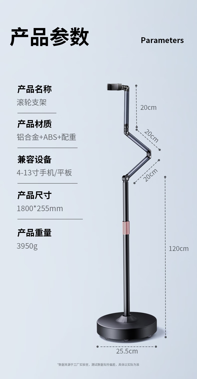 JIAHUACAI universal pulley, mobile phone stand, floor-standing, overhead shooting, live broadcast, 2025 new model with wheels, removable flatbed, multi-functional bedside, lazy bed, lying on the bed to chase dramas, single-arm - standard model, dedicated for mobile phones