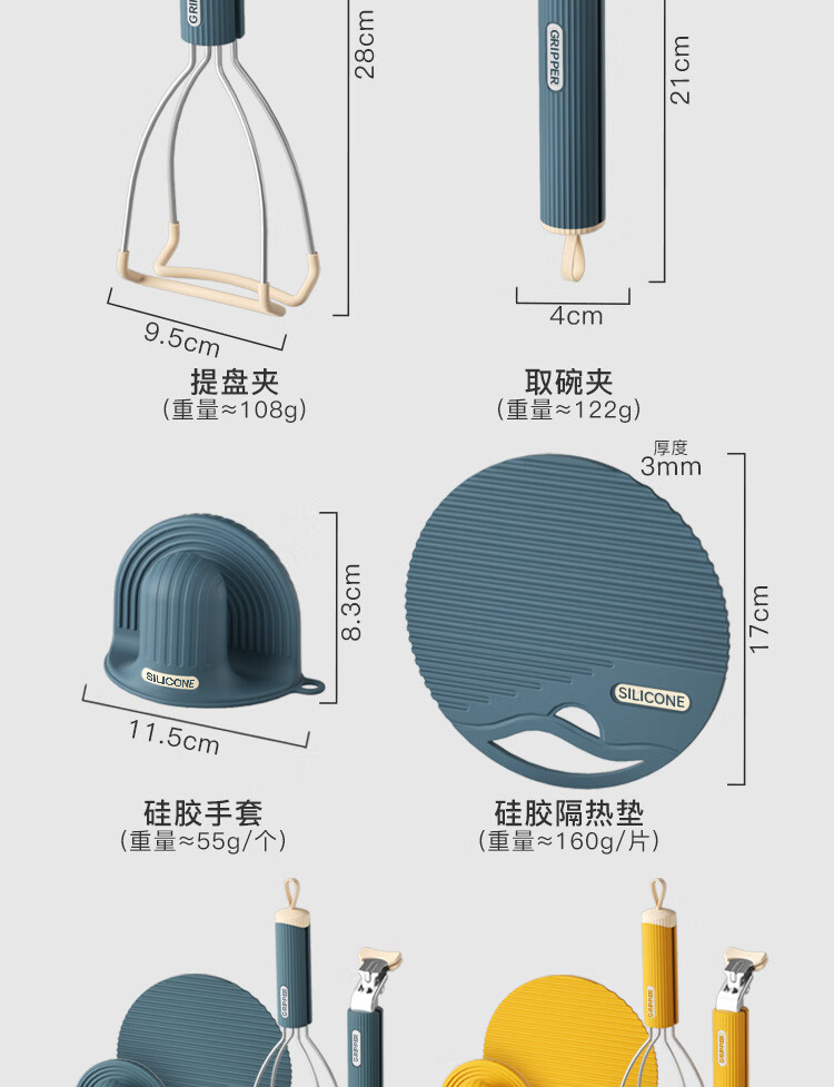 FVFH German kitchen artifact anti-scalding plate lifter bowl clamp silicone hand chuck bowl clamp bowl clamp bowl plate clamp bowl clamp quiet black
