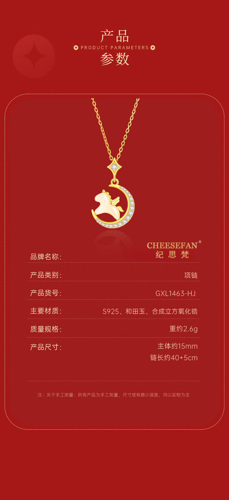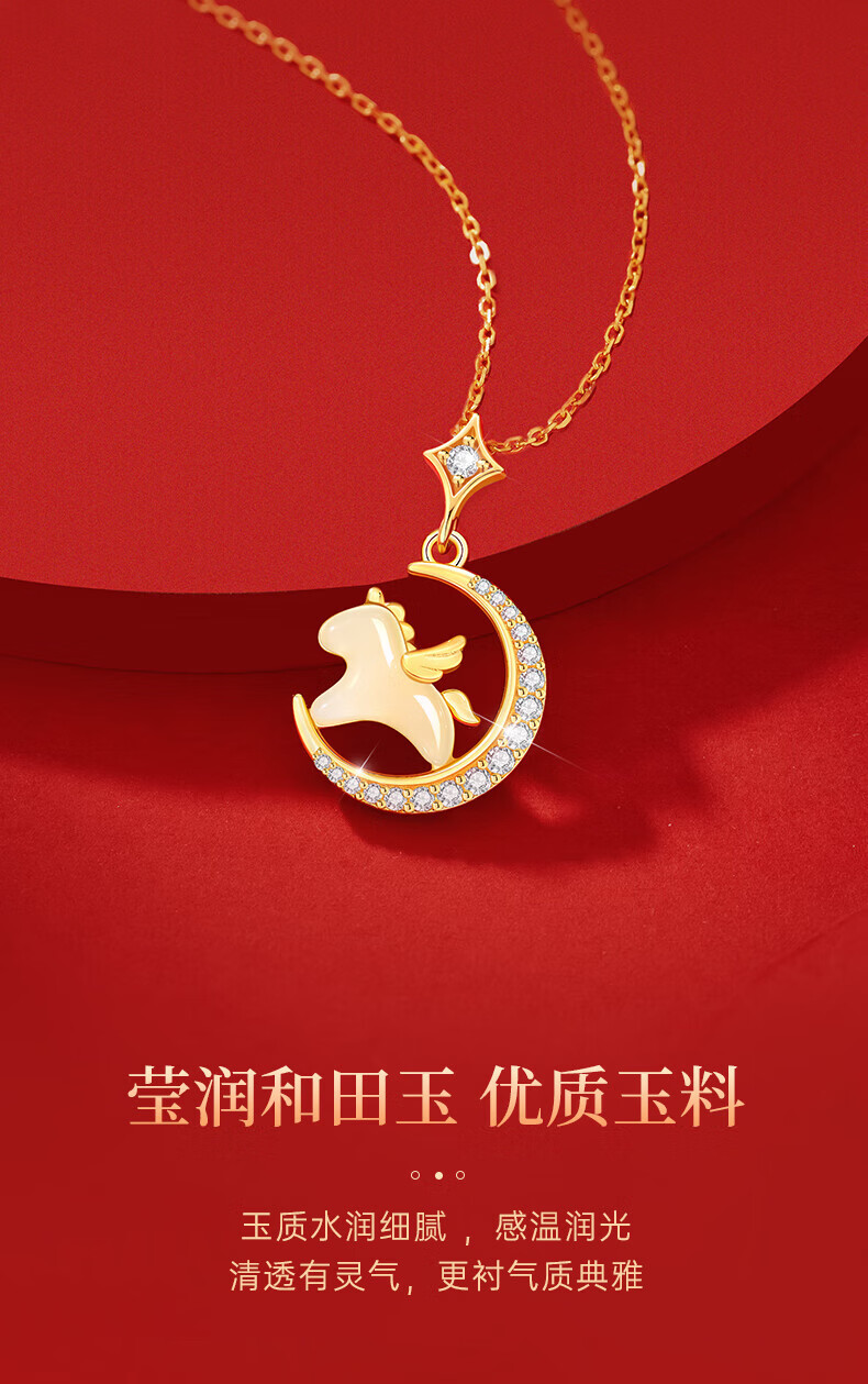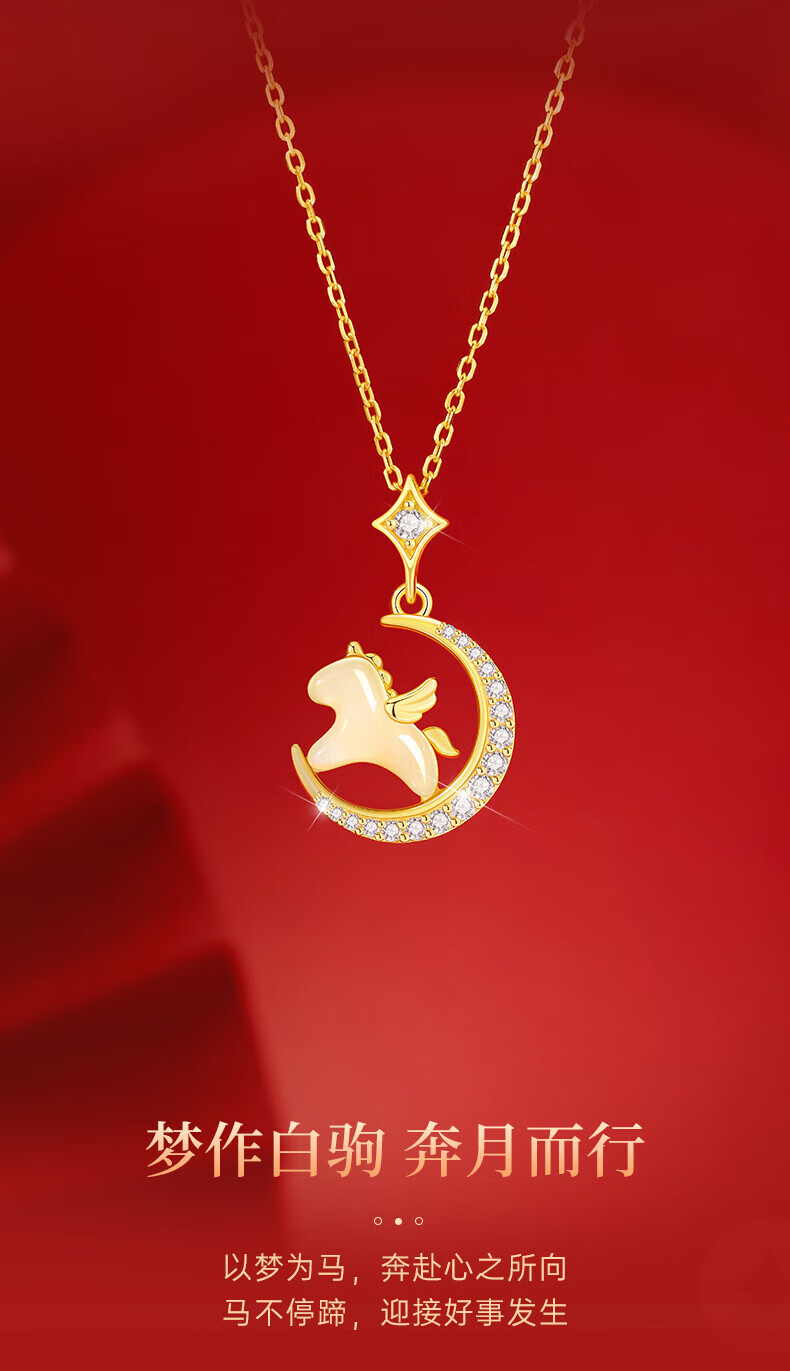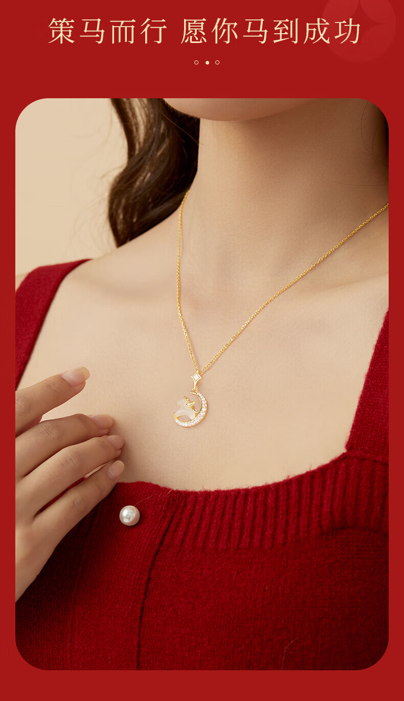 Ji Sifan Light Luxury Brand Zodiac Year Necklace Girls Horse Pendant Heart-warming and Practical Birthday Memorial Gift for Girlfriend and Wife Dream as Horse-Zodiac Hetian Jade Necklace