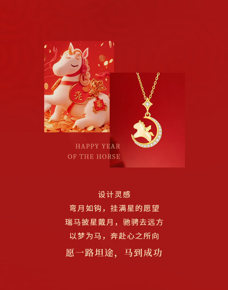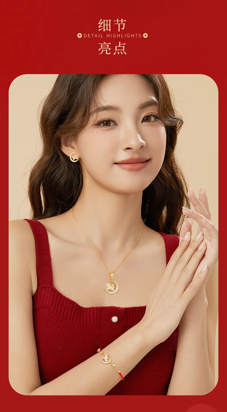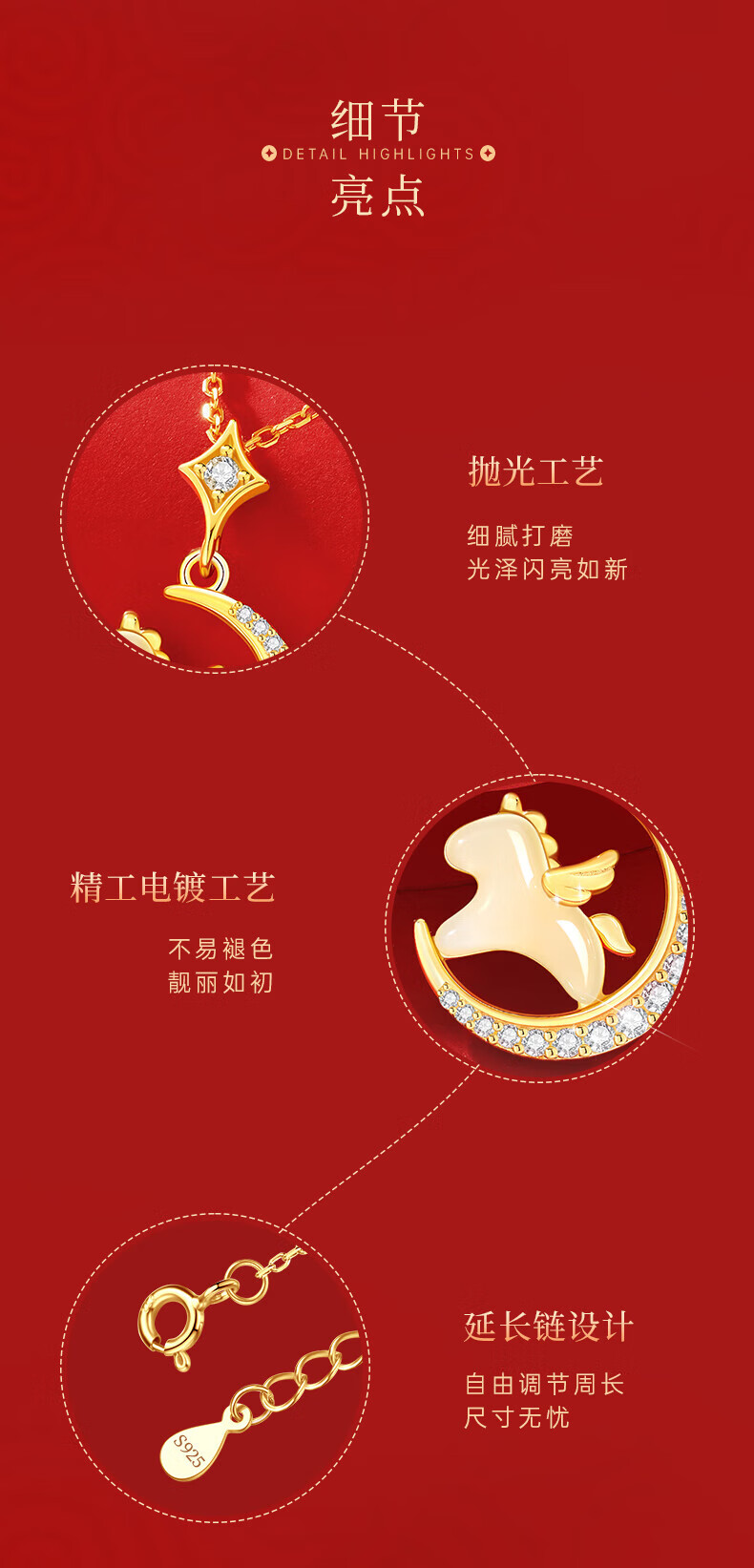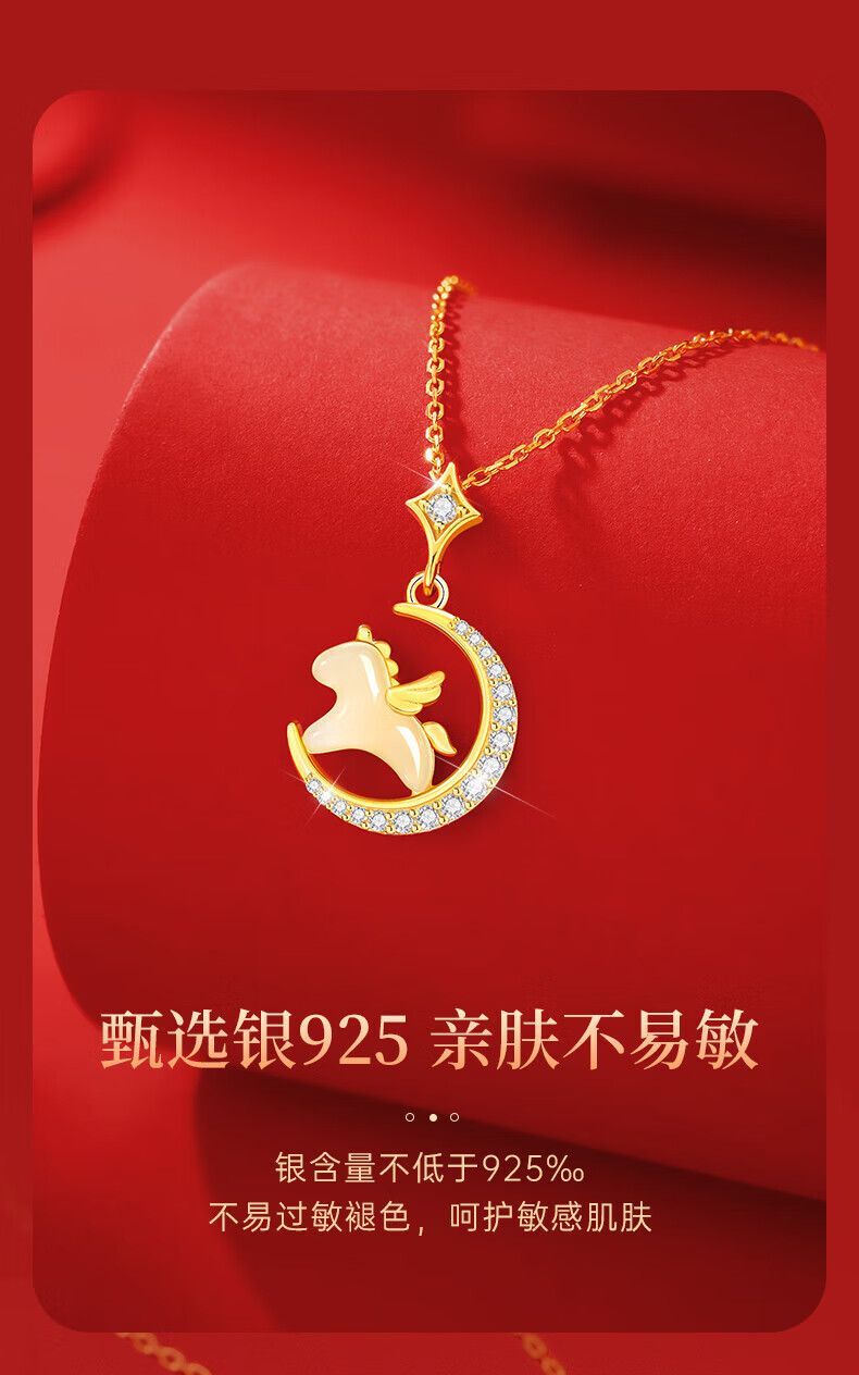 Ji Sifan Light Luxury Brand Zodiac Year Necklace Girls Horse Pendant Heart-warming and Practical Birthday Memorial Gift for Girlfriend and Wife Dream as Horse-Zodiac Hetian Jade Necklace