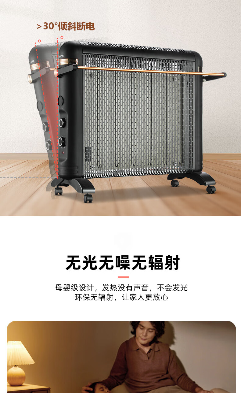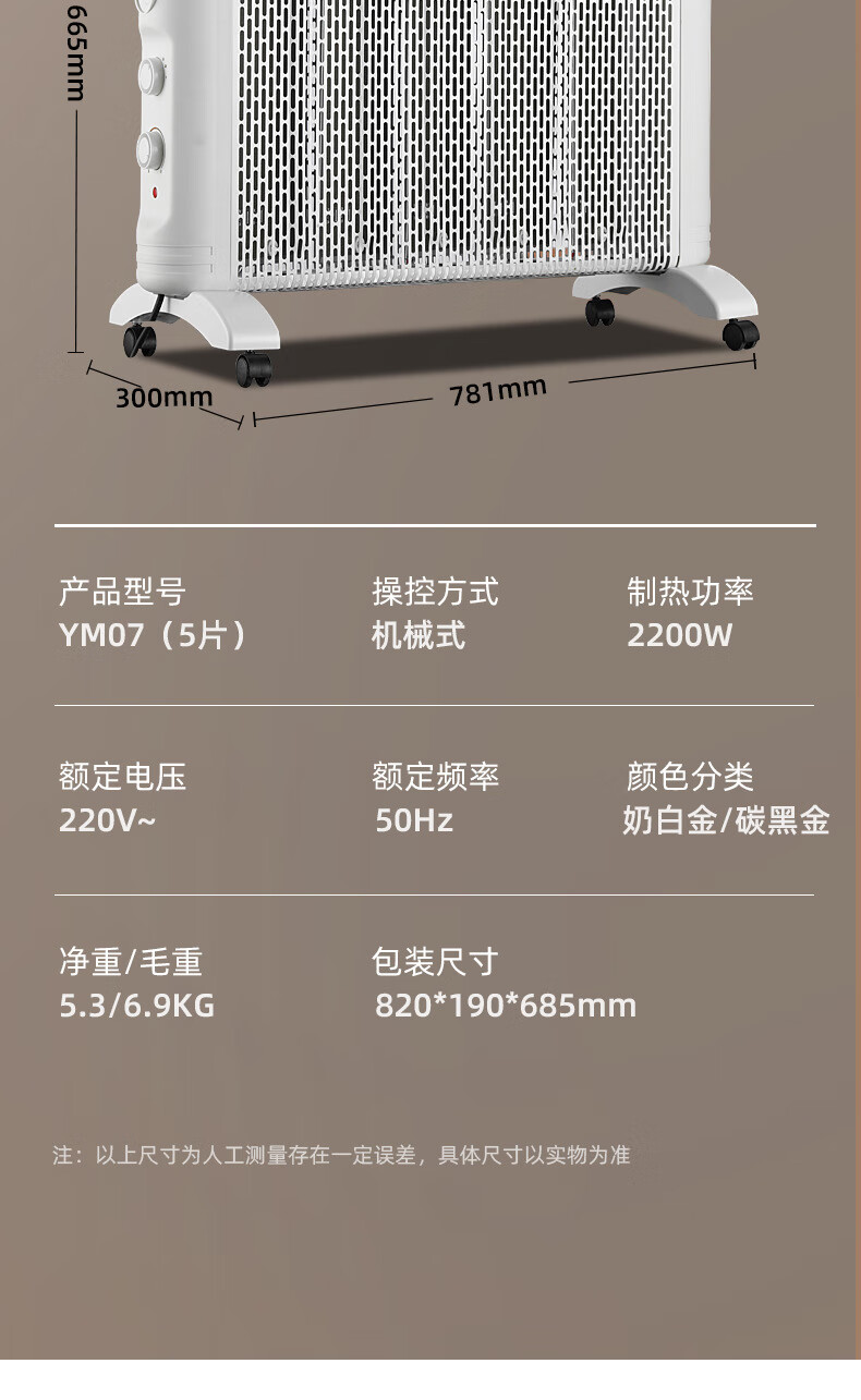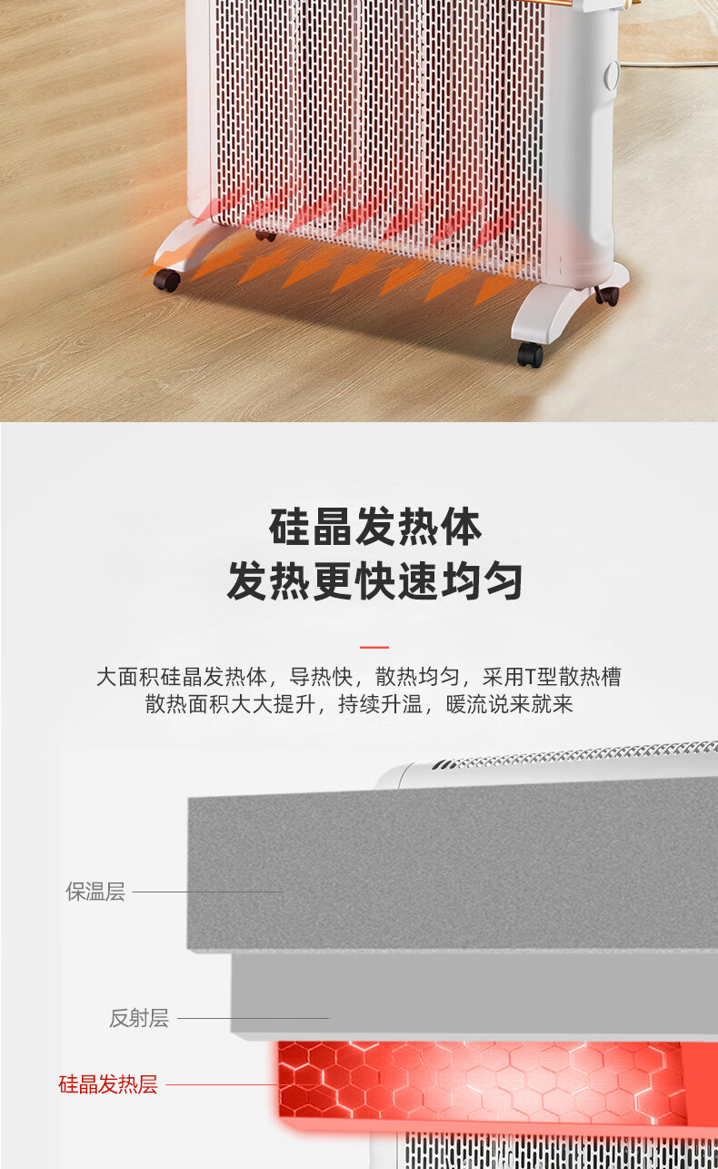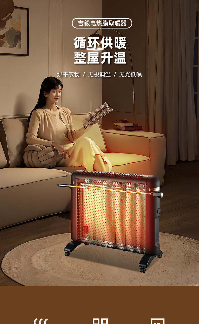 JY Jiyi electric heater household electric heater energy-saving fast heating whole house large area radiator electric heater mother and baby electric heating film Xinfei/Jiyi 5 pieces 2200 watts with universal wheel white