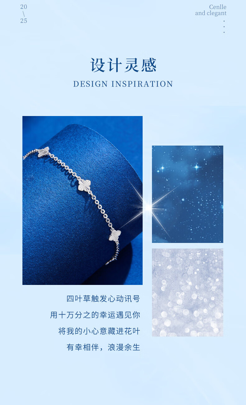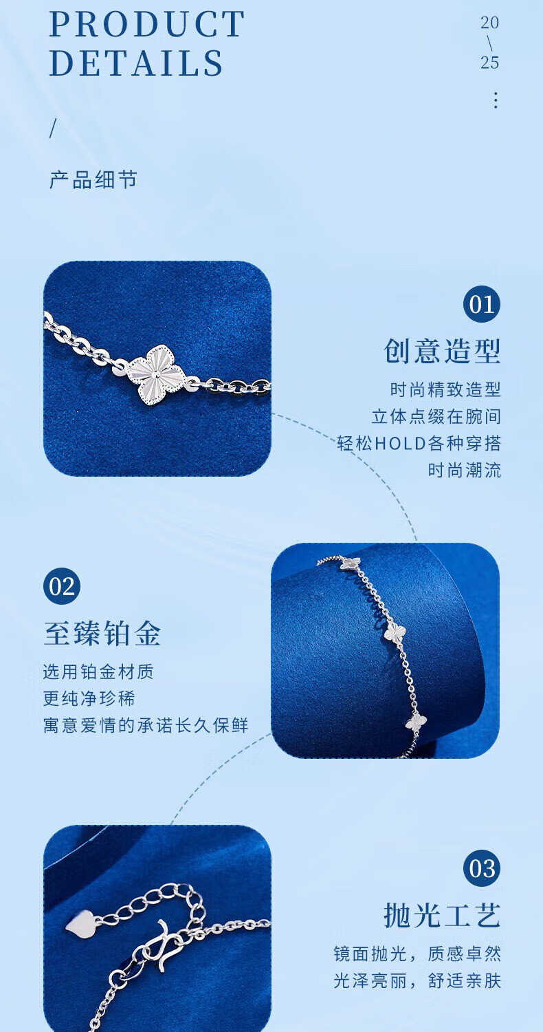 Lao Fengxiang PT950 platinum four-leaf clover bracelet 2025 new style jewelry for women, Valentine's Day birthday gift for girlfriend and wife, platinum lucky four-leaf clover bracelet, about 3.3g, brand gift box