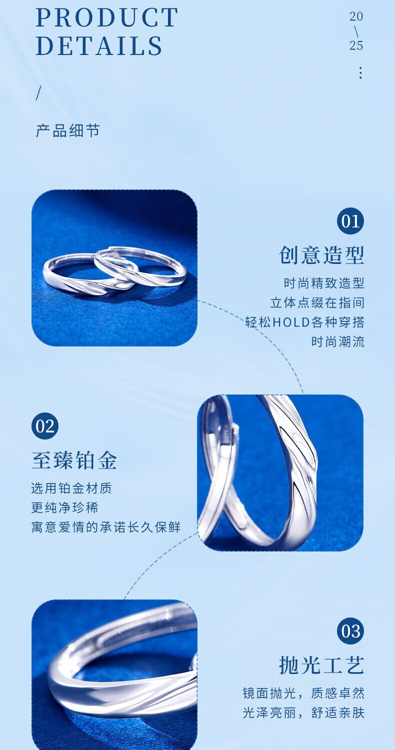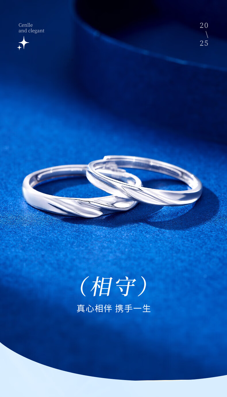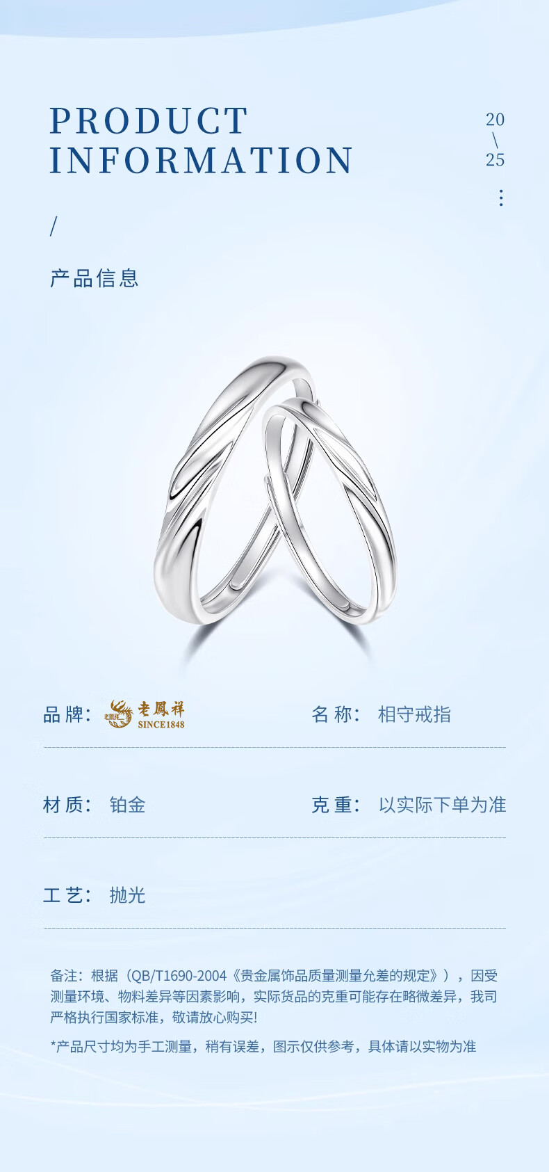 Lao Fengxiang PT950 platinum couple ring platinum couple model light luxury Valentine's Day birthday gift for girlfriend and wife platinum stay together for a lifetime - women's model about 2.2g brand gift box