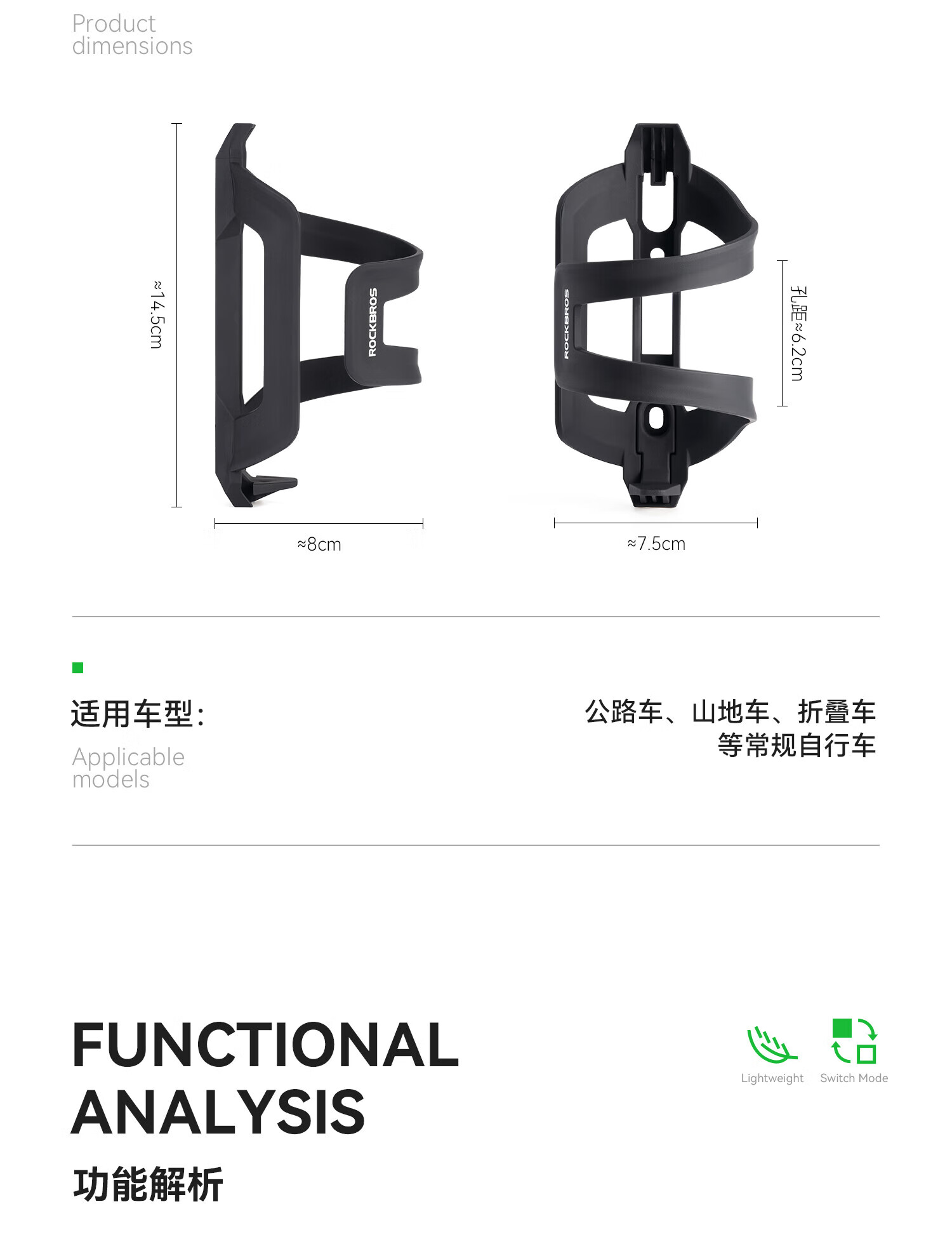 ROCKBROS Bicycle Water Bottle Cage Side-Opening Mountain Road Folding Bike Water Cup Water Bottle Bracket Cycling Equipment Water Bottle Cage + White Water Bottle