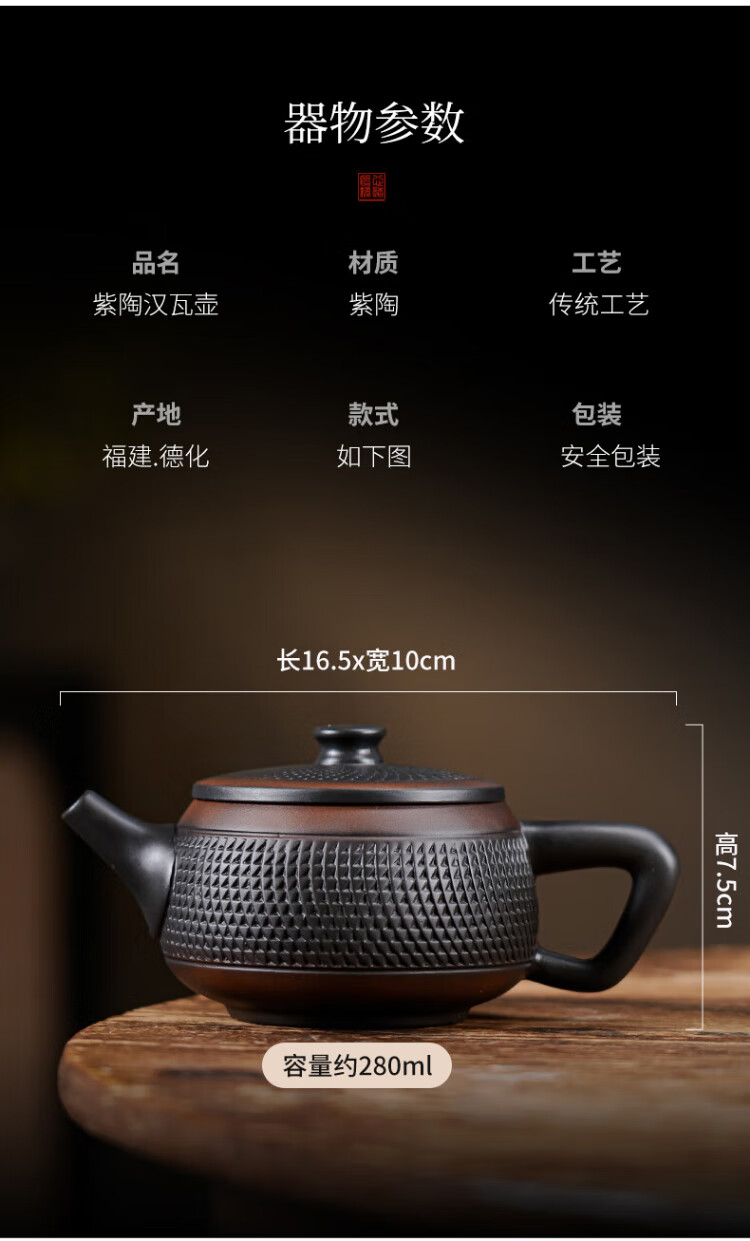 Purple pottery Han tile teapot single pot teapot large capacity high-end gift Kung Fu tea set household Fengming purple clay pot Han tile teapot 280ml