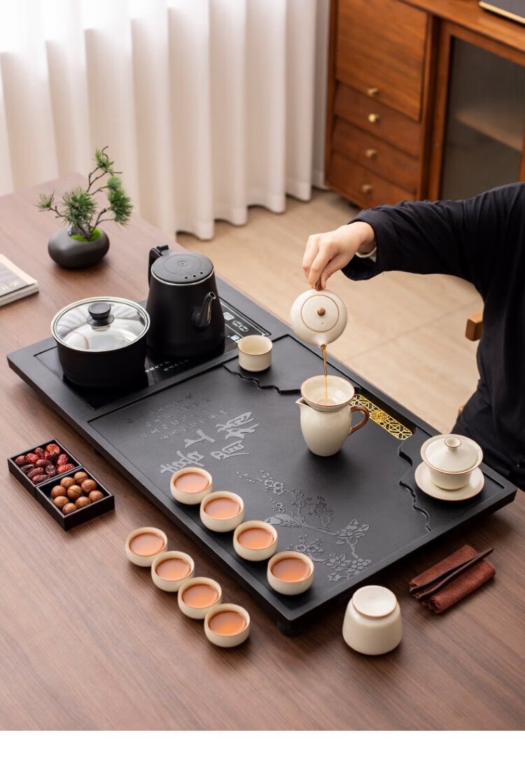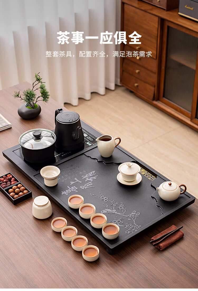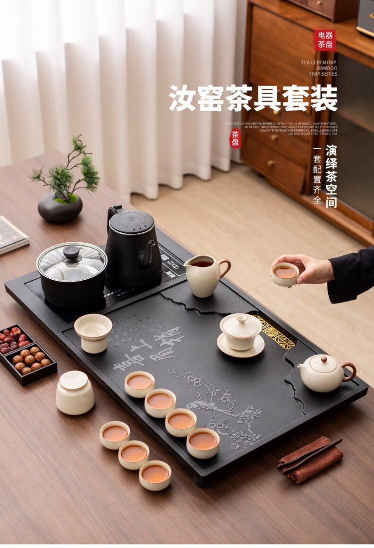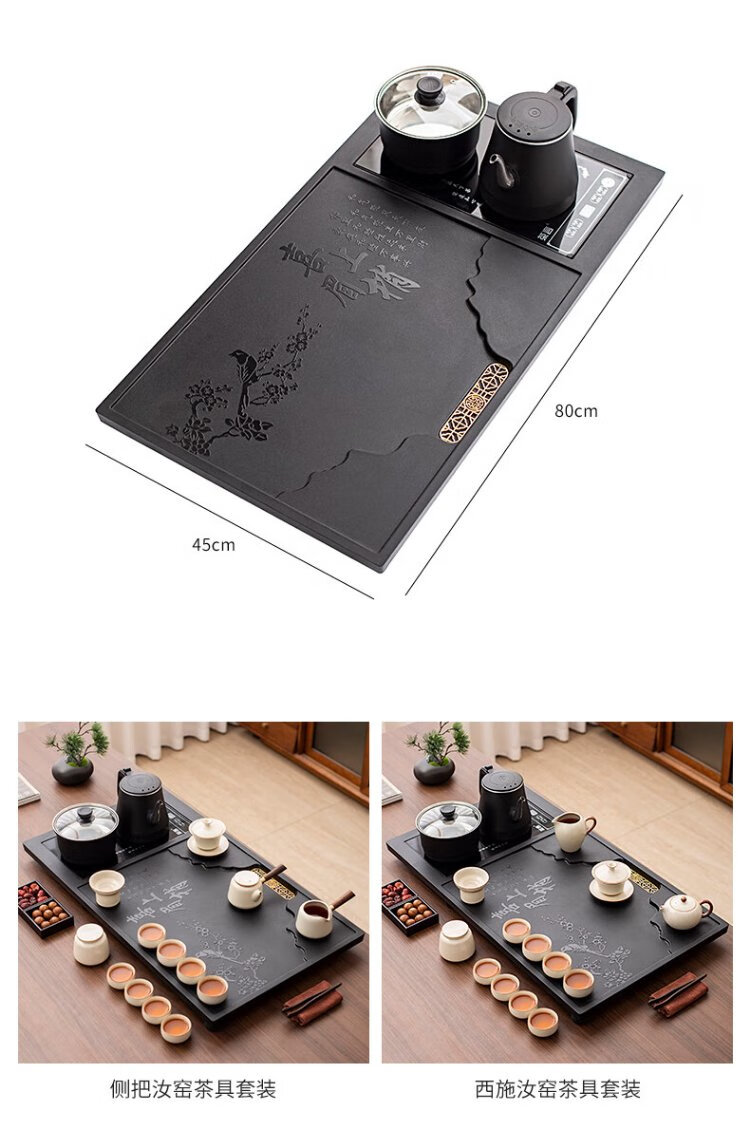 Ru Kiln Kung Fu Tea Set with Tea Tray All-in-One Fully Automatic High-end Home Tea Table Kung Fu Tea Making Complete Set Xishang Meishao Tea Tray (80x45cm) Single Tea Tray