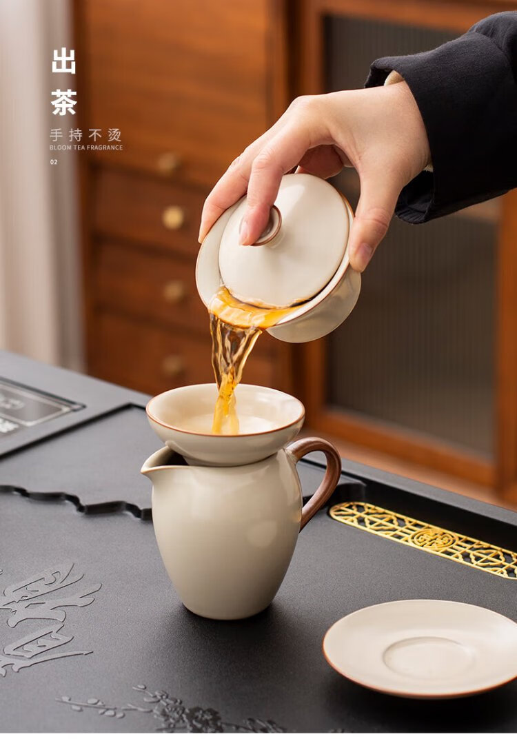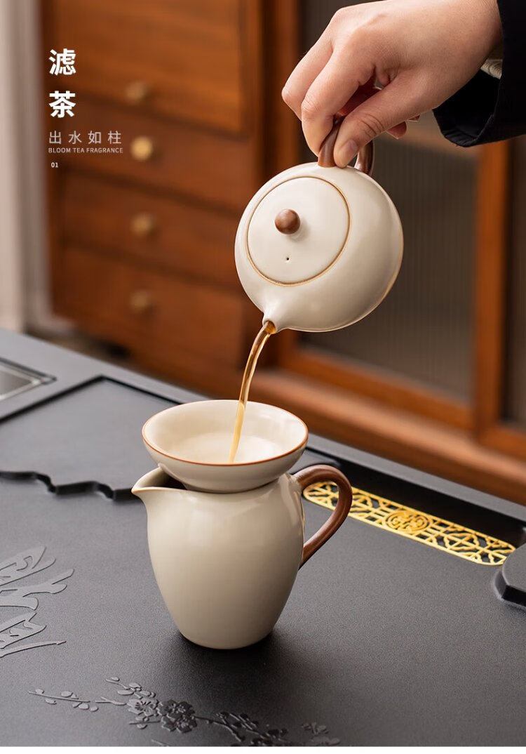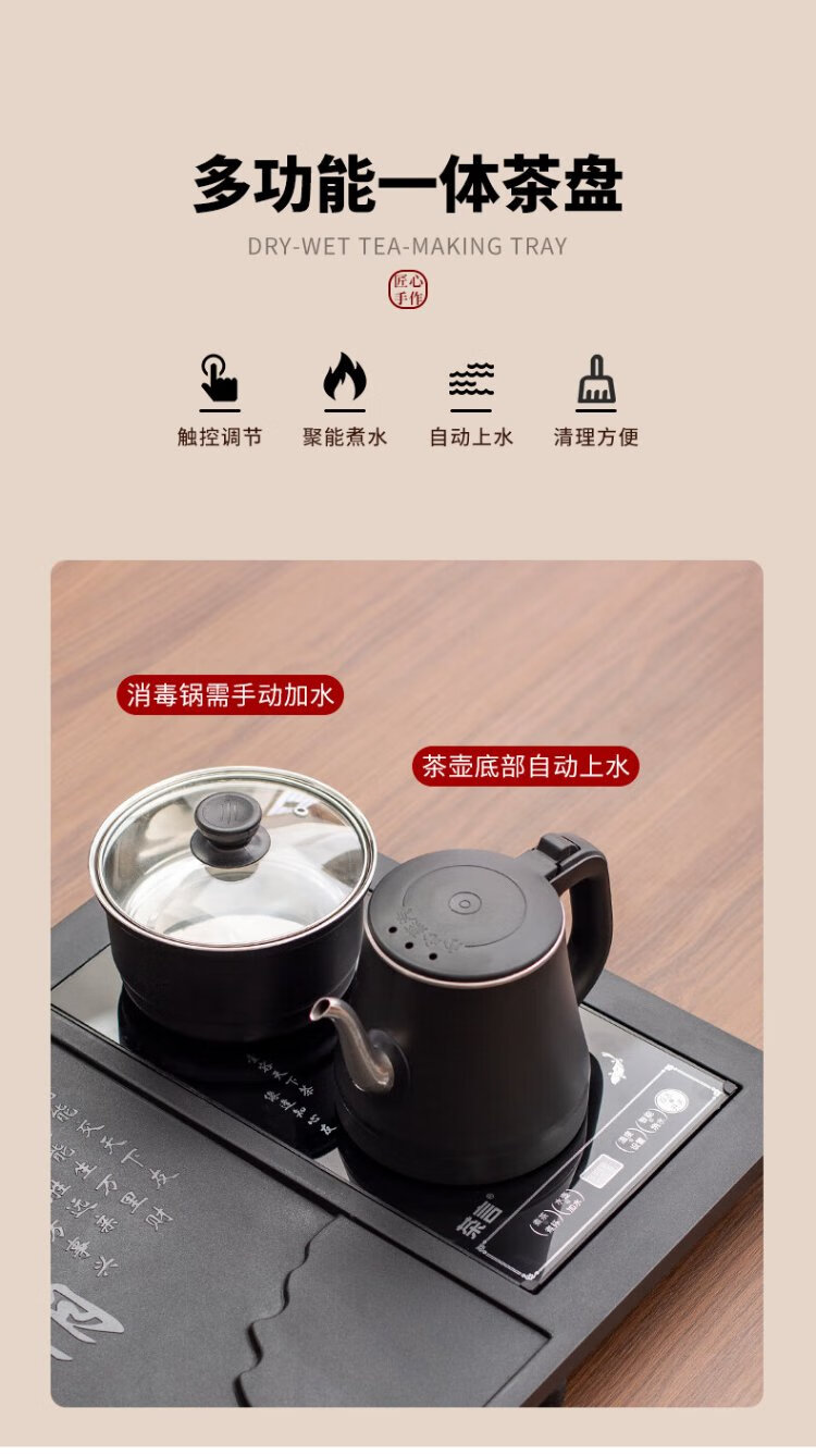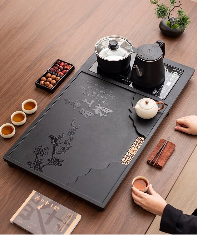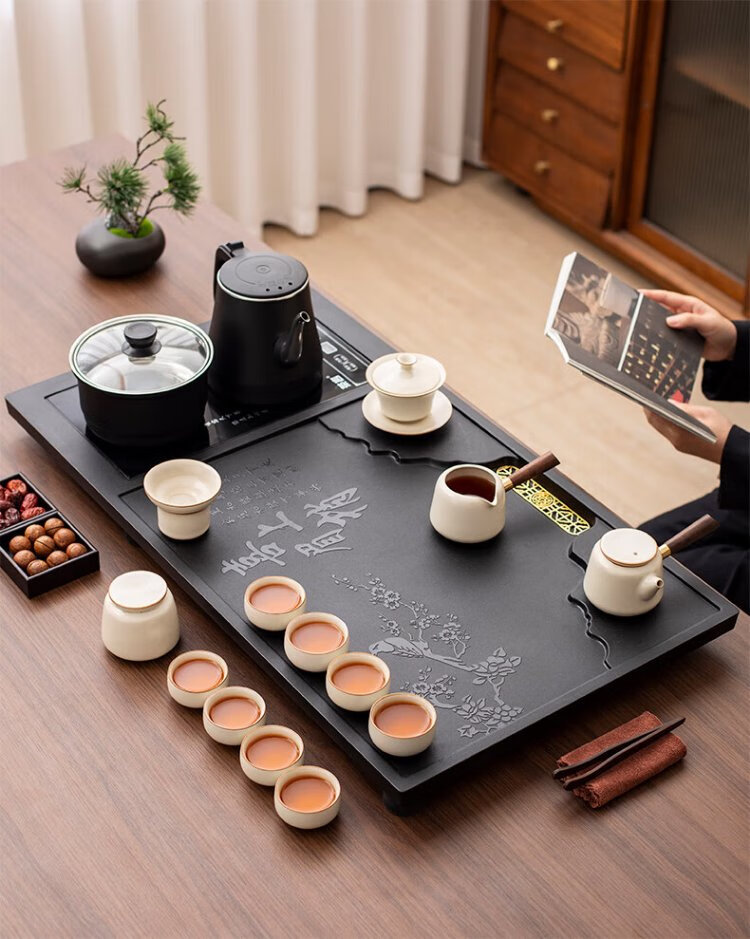 Ru Kiln Kung Fu Tea Set with Tea Tray All-in-One Fully Automatic High-end Home Tea Table Kung Fu Tea Making Complete Set Xishang Meishao Tea Tray (80x45cm) Single Tea Tray