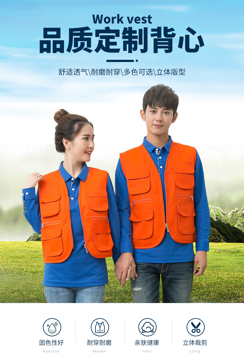 MKFZ multi-pocket vest men's fishing outdoor travel photography vest V-neck work clothes printed with logo for women HT-multi-pocket vest apricot M