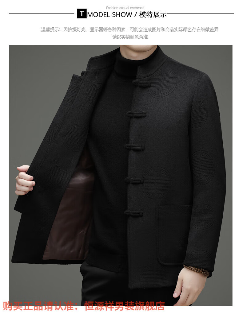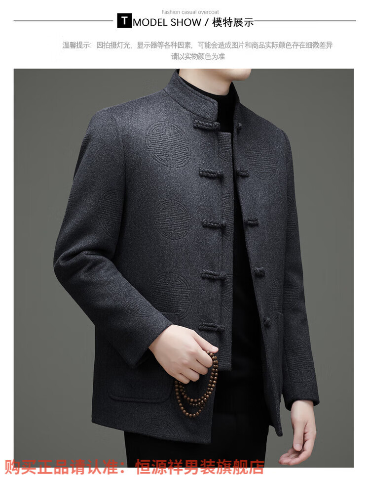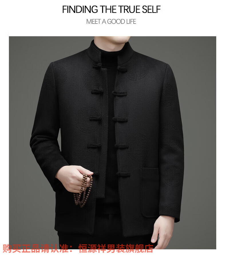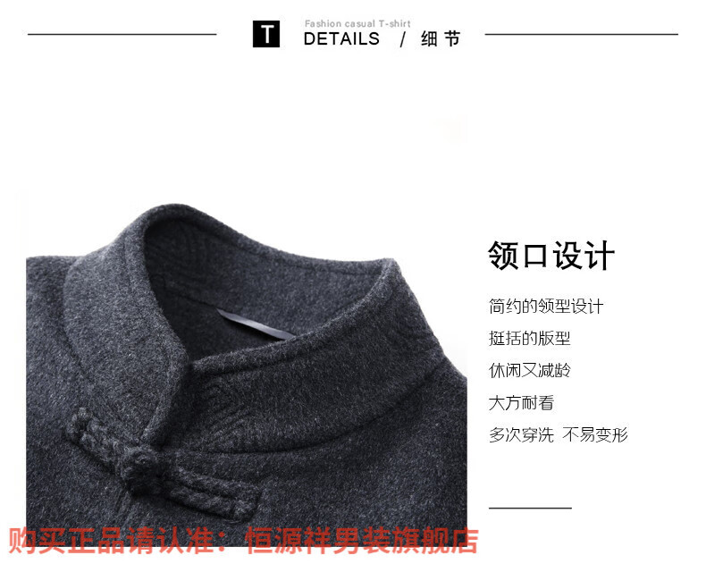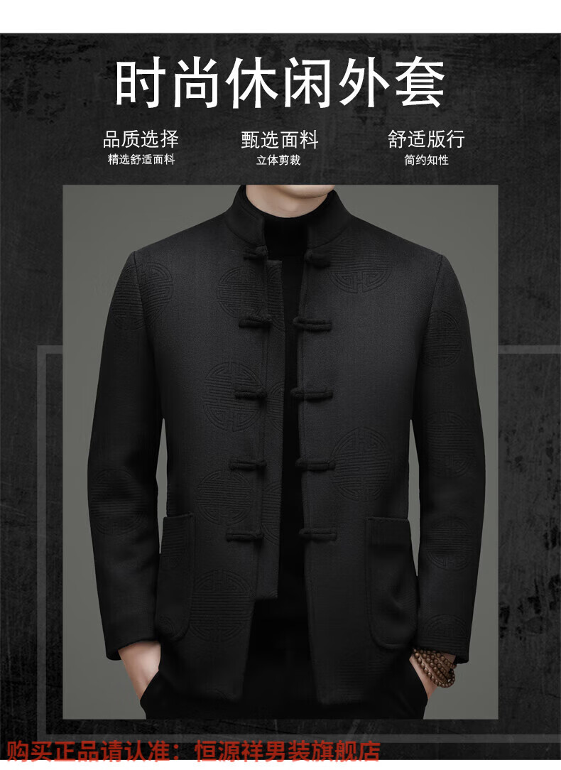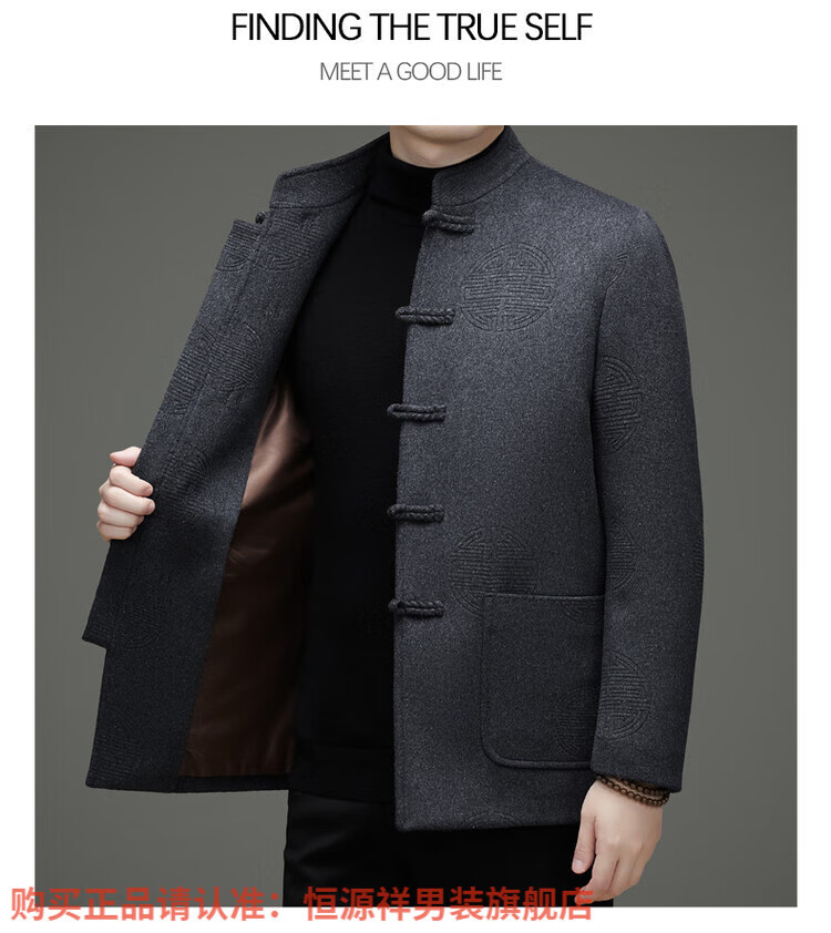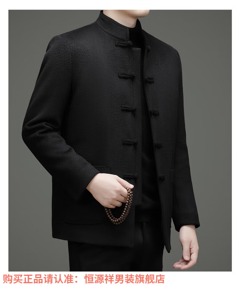 Hengyuanxiang New Chinese Style Stand Collar Woolen Tang Suit Men's Autumn and Winter Middle-aged and Elderly Thickened Down Liner Buttoned Tunic Jacket Red Top Removable Liner L 175