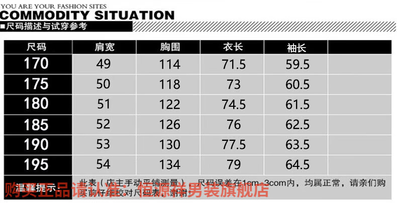 China (cm) 165 / 88-90 170 / 96-98 175 / 108-110 180 / 118-122 185 / 126-130