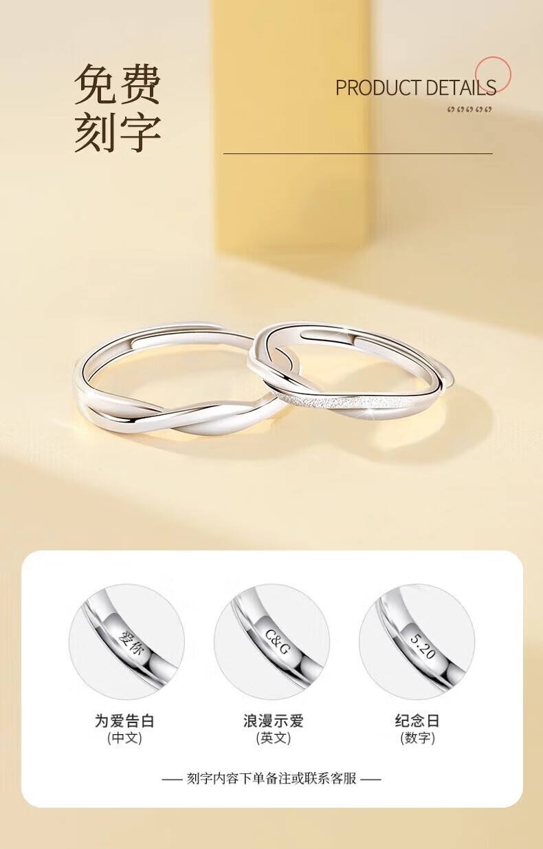 Lao Fengxiang 999 Silver Mobius Couple's Confession Ring Proposal Ring Valentine's Day Birthday Gift for Girlfriend and Wife Mobius Women's Model