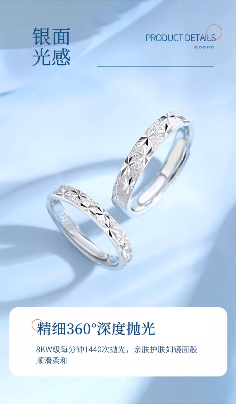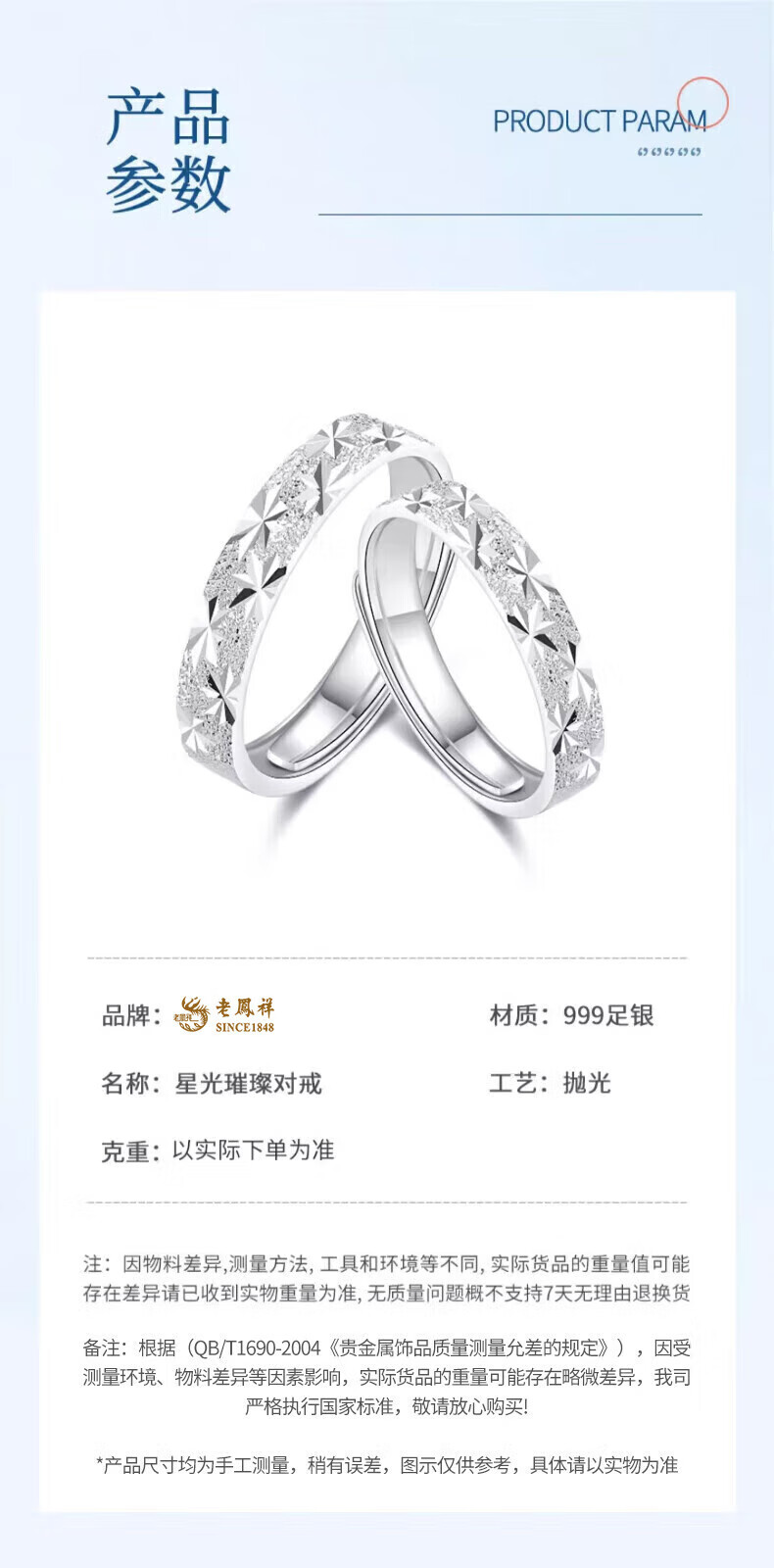 Lao Fengxiang Pure Silver Starry Star Couple Ring Pair 2025 New Couple Ring Classic Anniversary Birthday Gift Pure Silver* Starry Starry Couple Ring Valentine's Day Gift Box