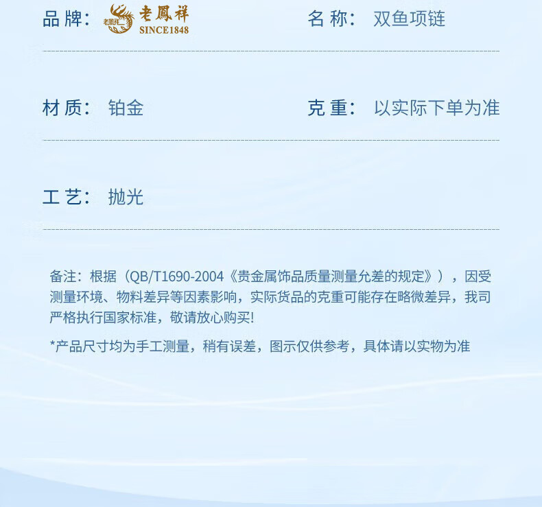 Lao Fengxiang PT950 platinum Pisces pendant for women 2025 new fashion platinum necklace Mid-Autumn Festival gift for girlfriend and wife PT950 platinum Pisces necklace about 5.5g brand gift box