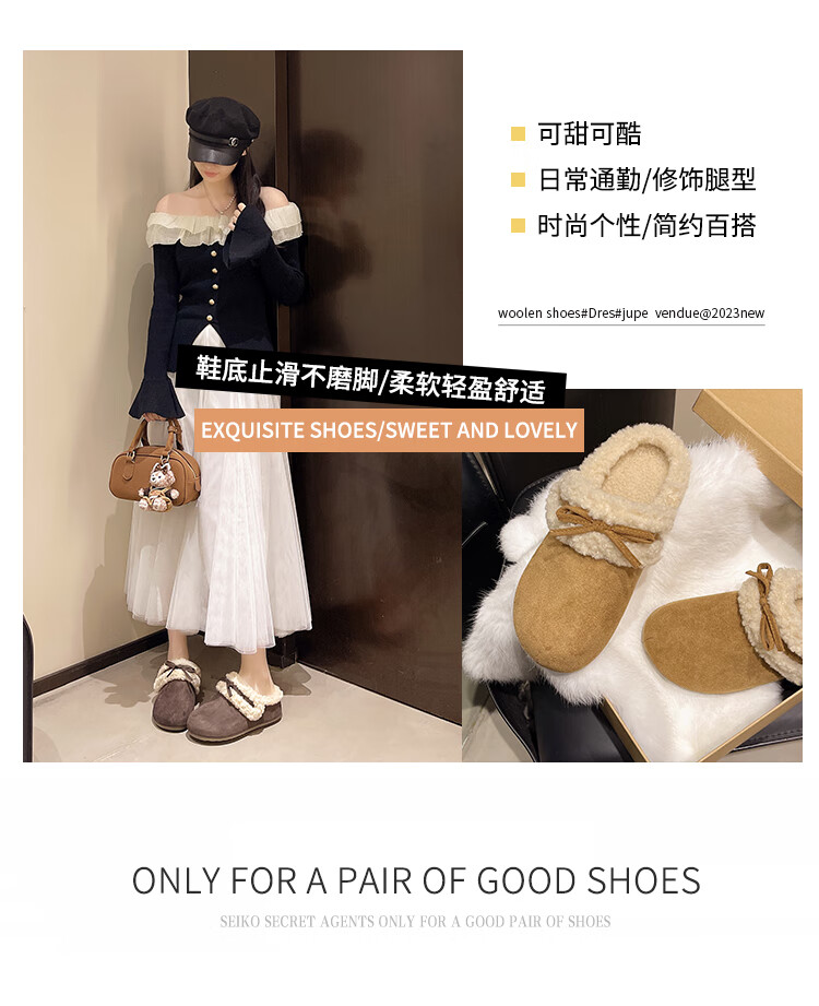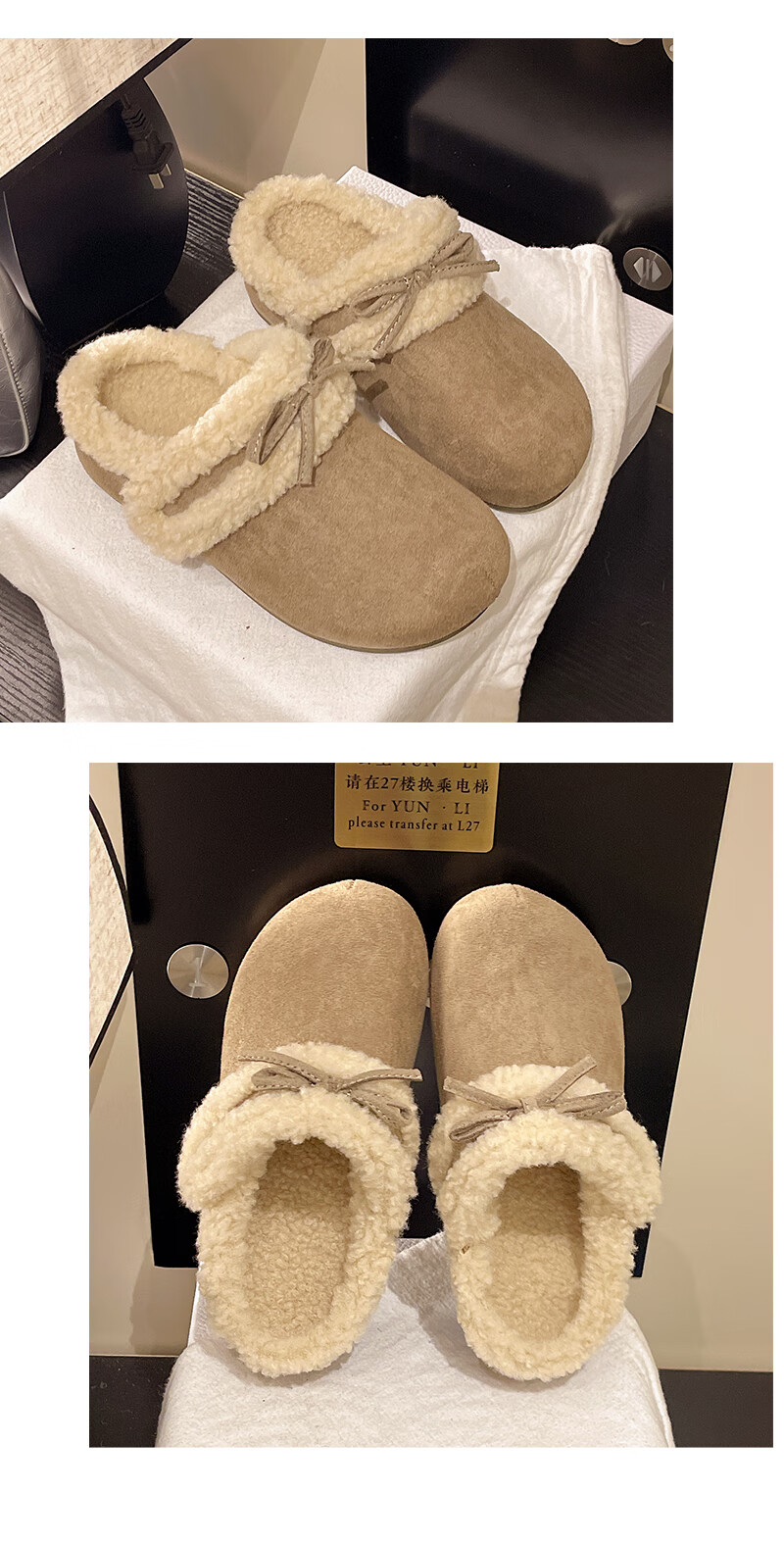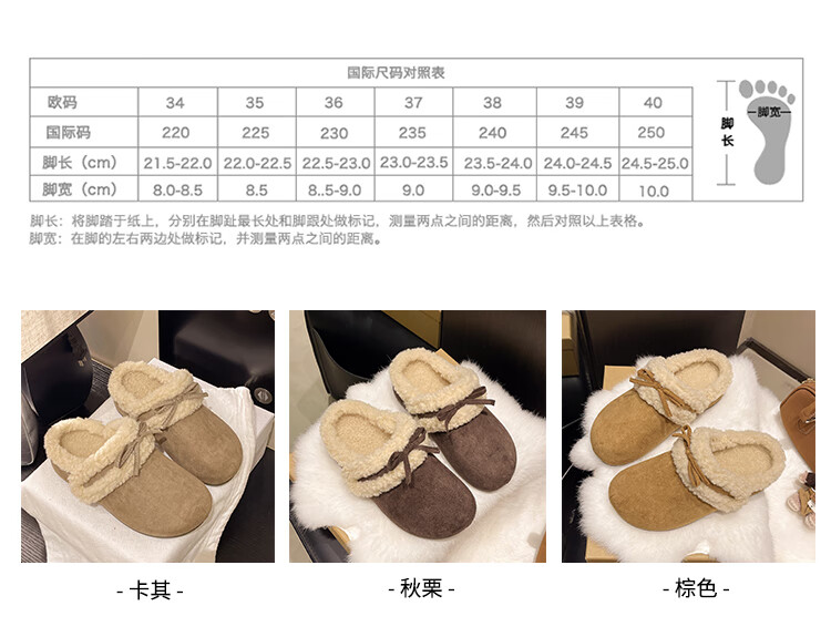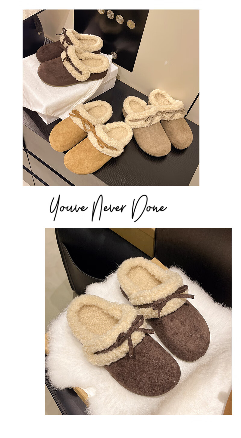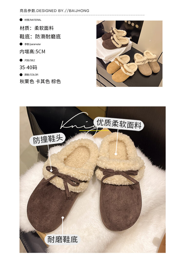 Retro bow thick-soled toe-cap fur slippers for women for outer wear 2025 new autumn and winter plus velvet warm Birkenstock cotton slippers C80 card color 37