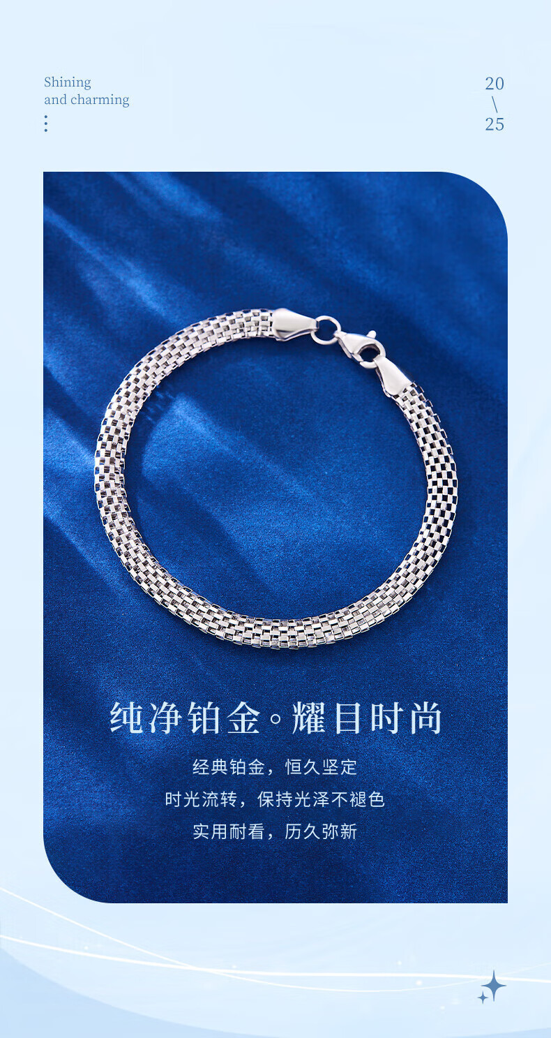 Lao Fengxiang PT950 platinum mesh bracelet for men and women, platinum bracelet, birthday gift, Mid-Autumn Festival gift for girlfriend and wife, platinum mesh bracelet, about 5.9g, brand gift box