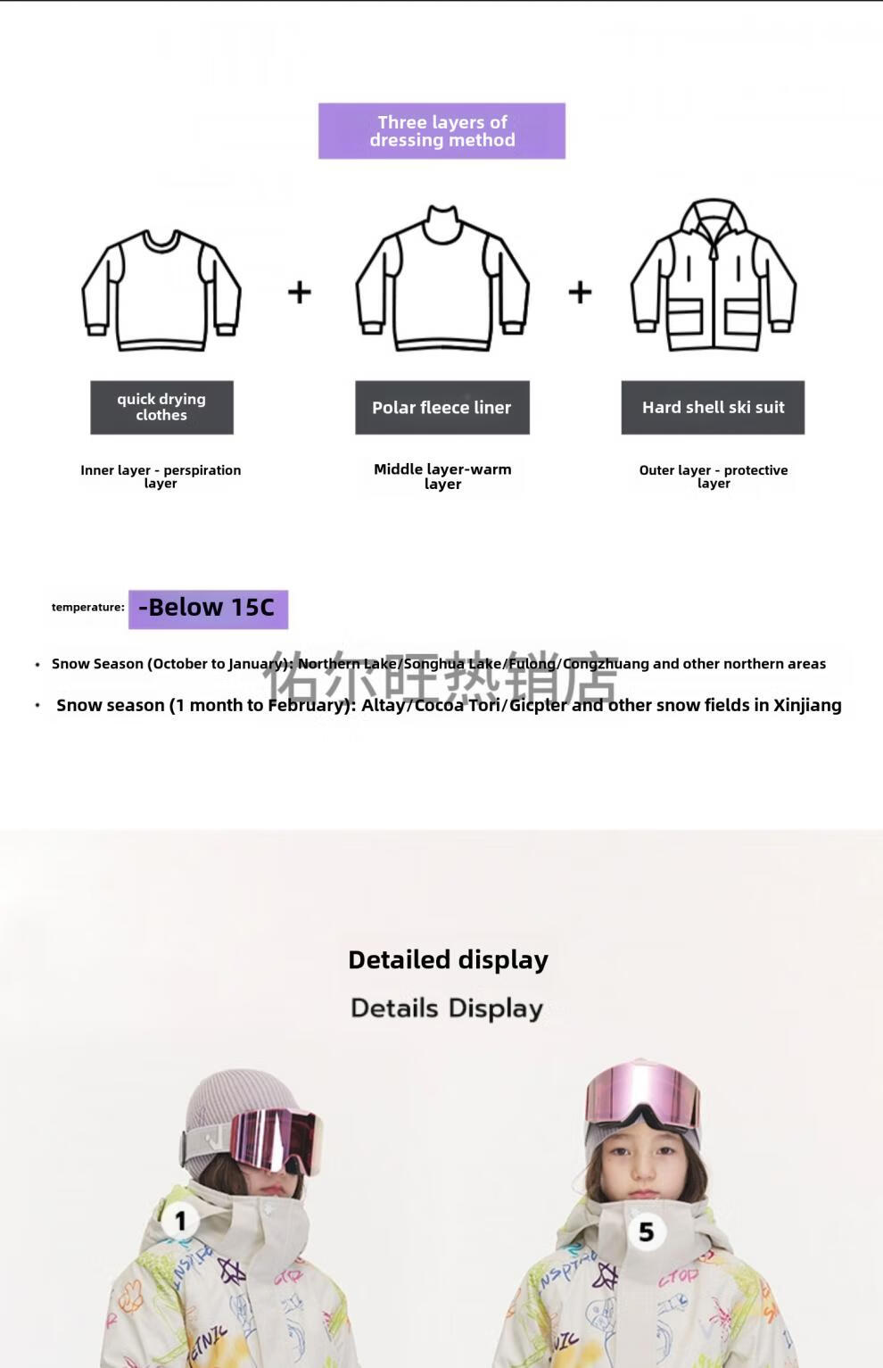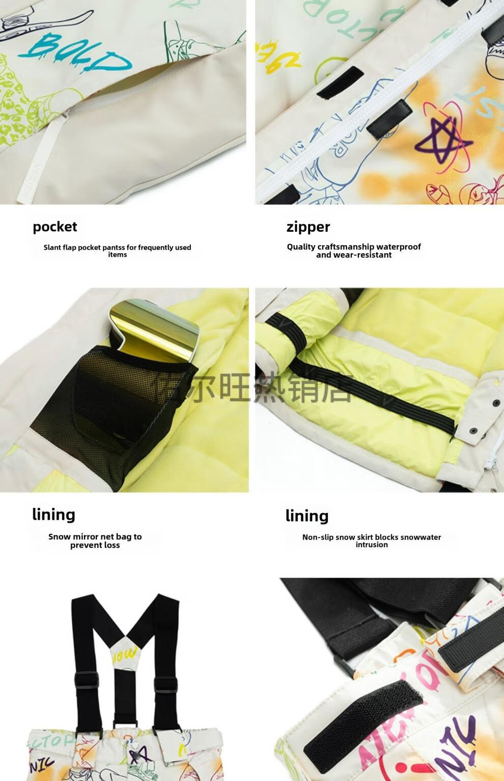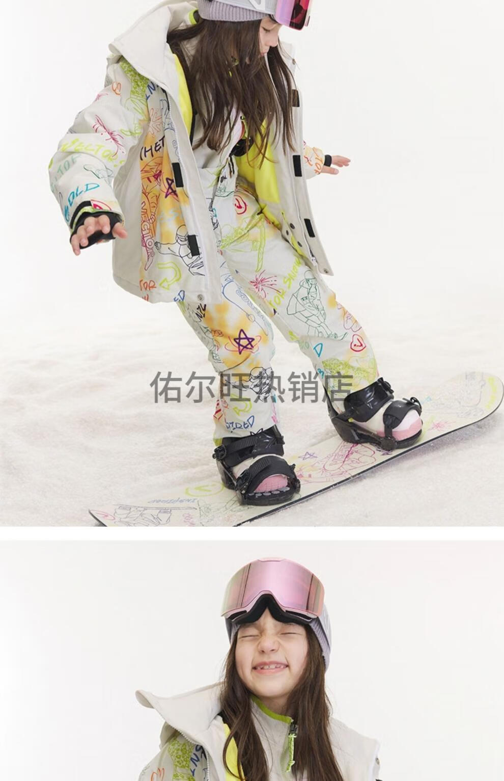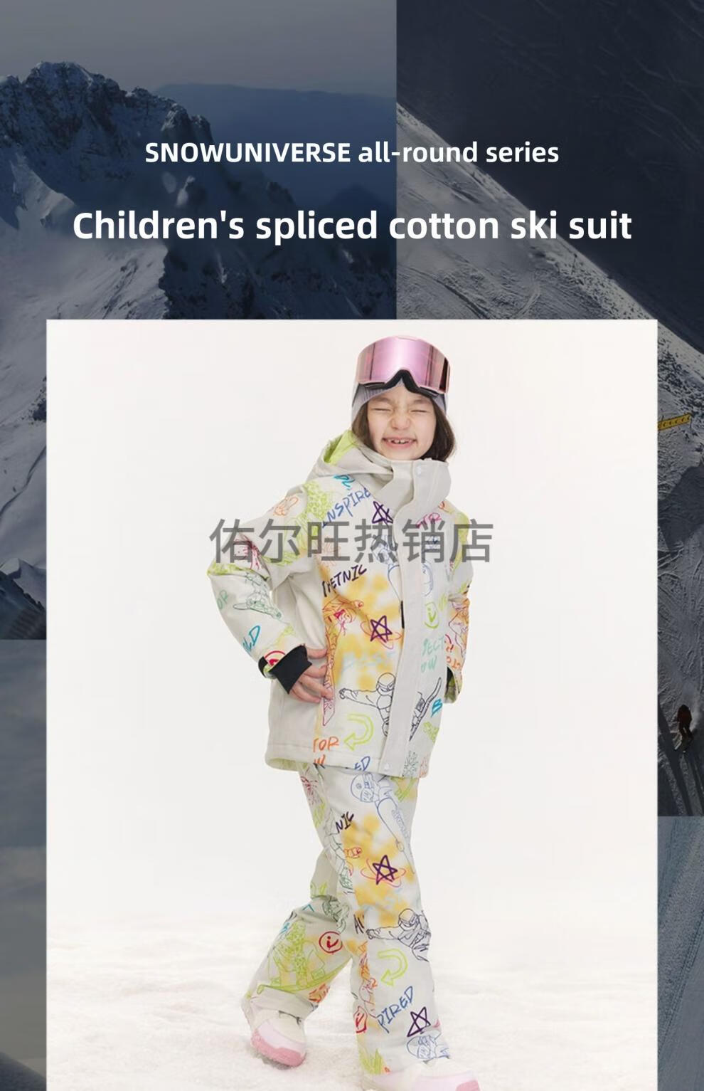 Vector children's ski jacket, thickened and warm, trendy contrasting colors, jacket and overalls for boys and girls, ski suit suit, pastel graffiti park top + pastel graffiti park pants, same style for boys and girls M 160_ Suitable for height 155-165c