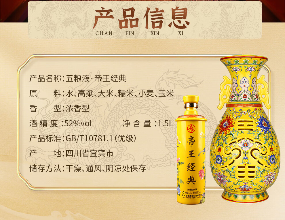 Produced by Wuliang Luzhou Fragrance General Factory, Liquor Luzhou Fragrance Sichuan Famous Liquor, Collection Display Cabinet for Self-Drinking, Holiday Gifts, Wine Gift Box, 52 Degrees, 500mL, 6 Bottles, Imperial Classic Collection