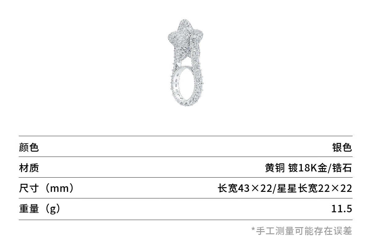 YVMIN Lucky Star Ring Designer Birthday Gift for Girlfriend Silver 11#