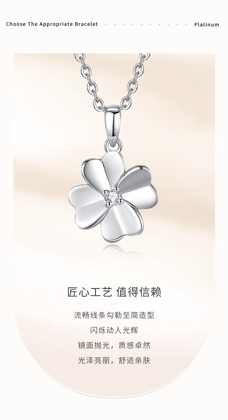 Lao Fengxiang PT950 platinum four-leaf clover necklace, women's platinum Chinese Valentine's Day gift for girlfriend and wife PT950 platinum four-leaf clover pendant-1g brand gift box with free silver chain