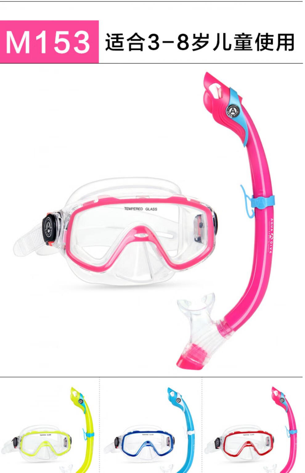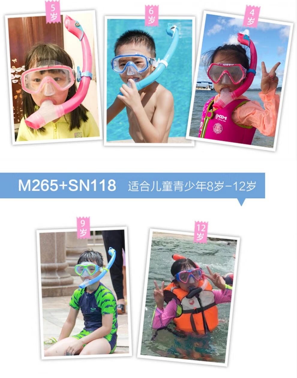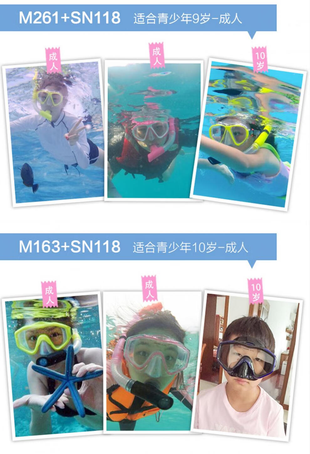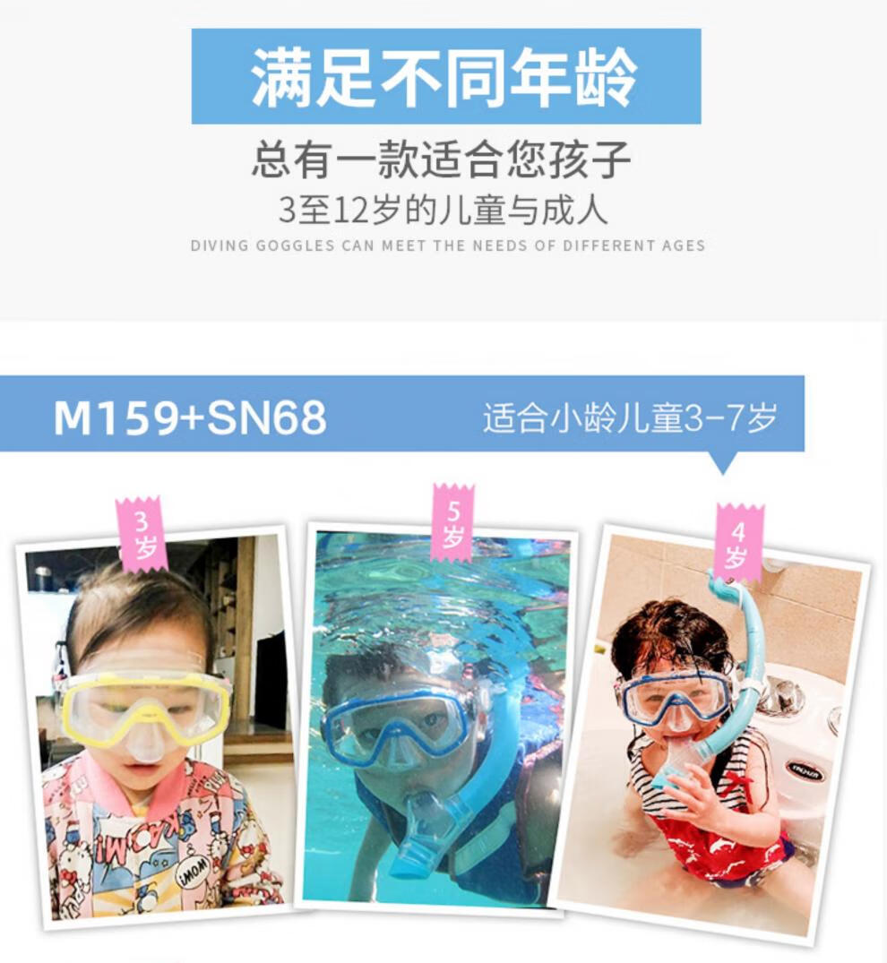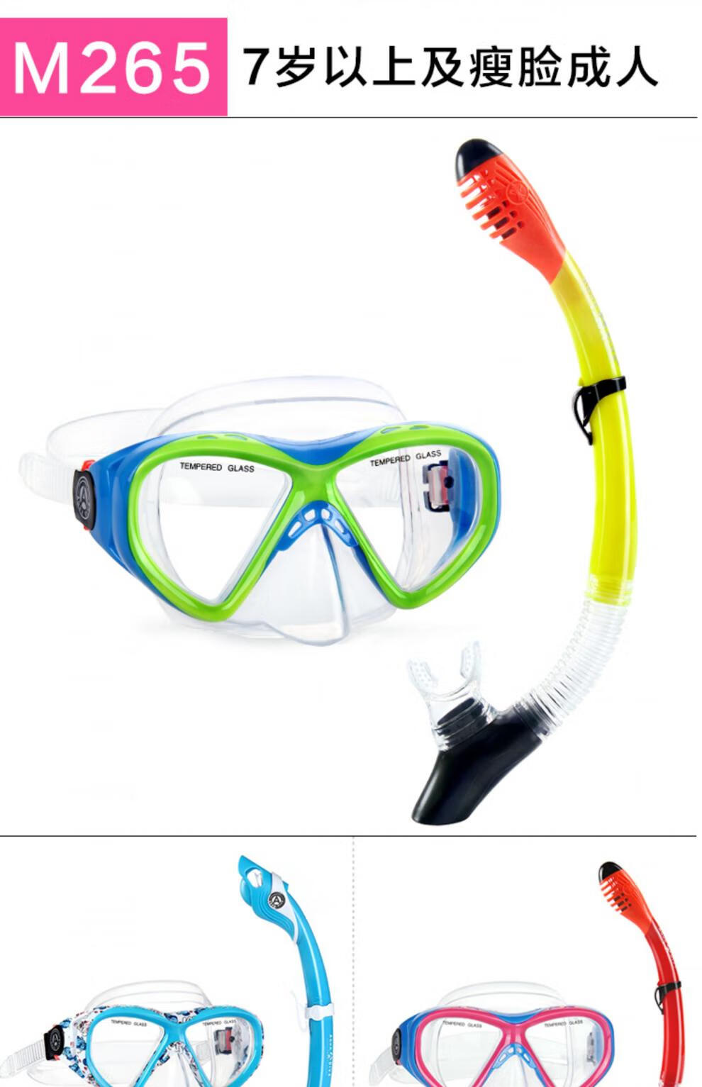 AQUADIVE儿童潜水镜干 干拭呼吸管套装游泳护鼻一体面罩浮潜三宝 M220黄黑+SN118黄+黄潜水袜