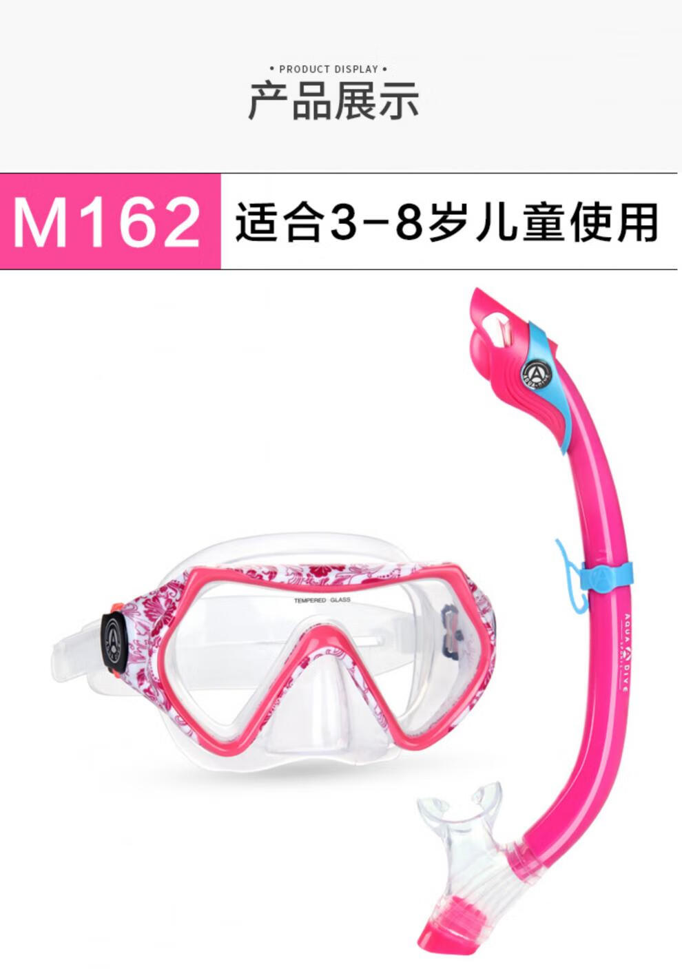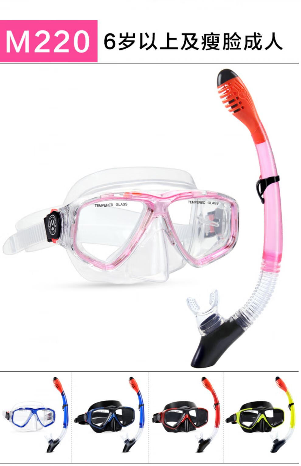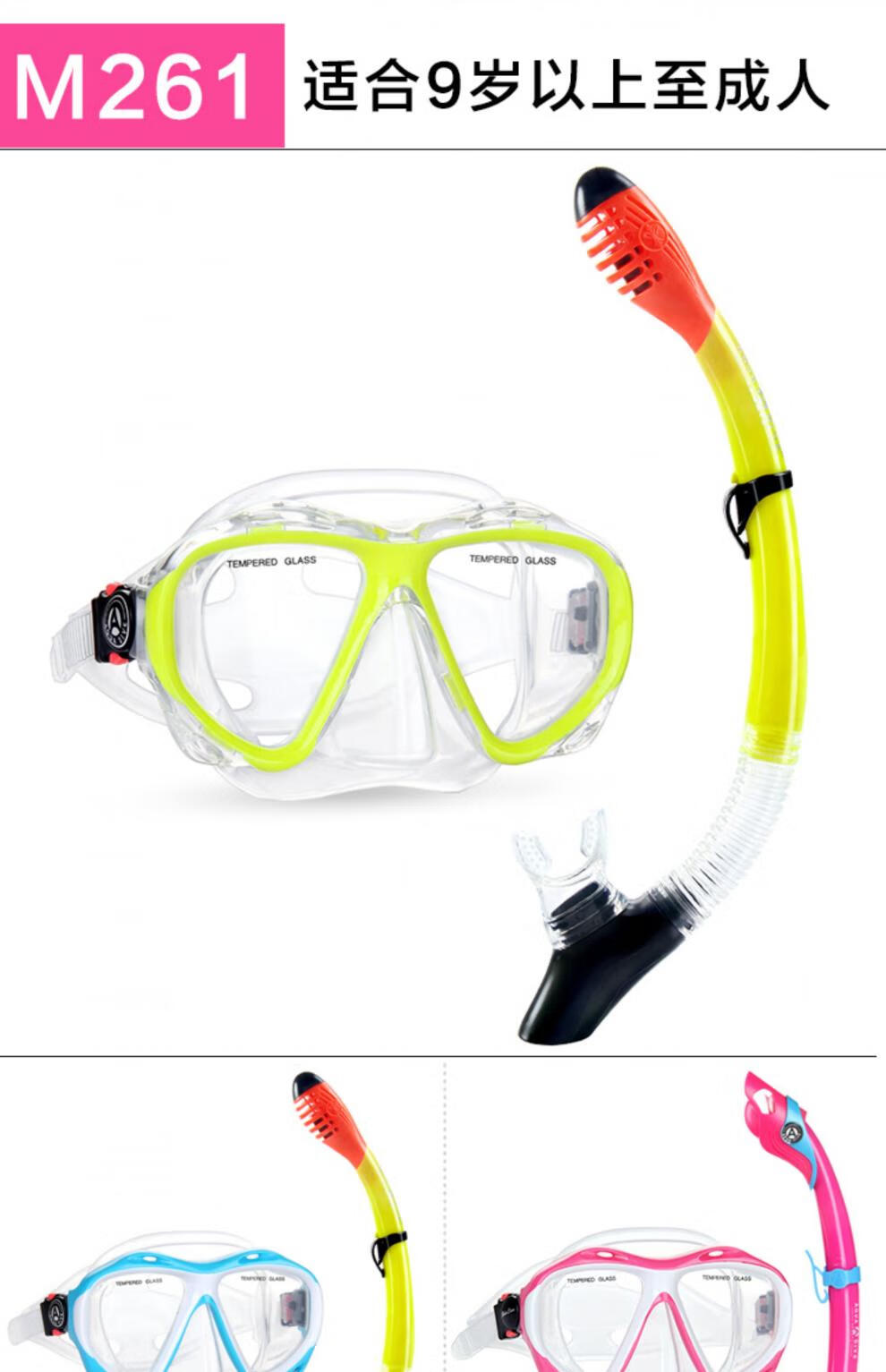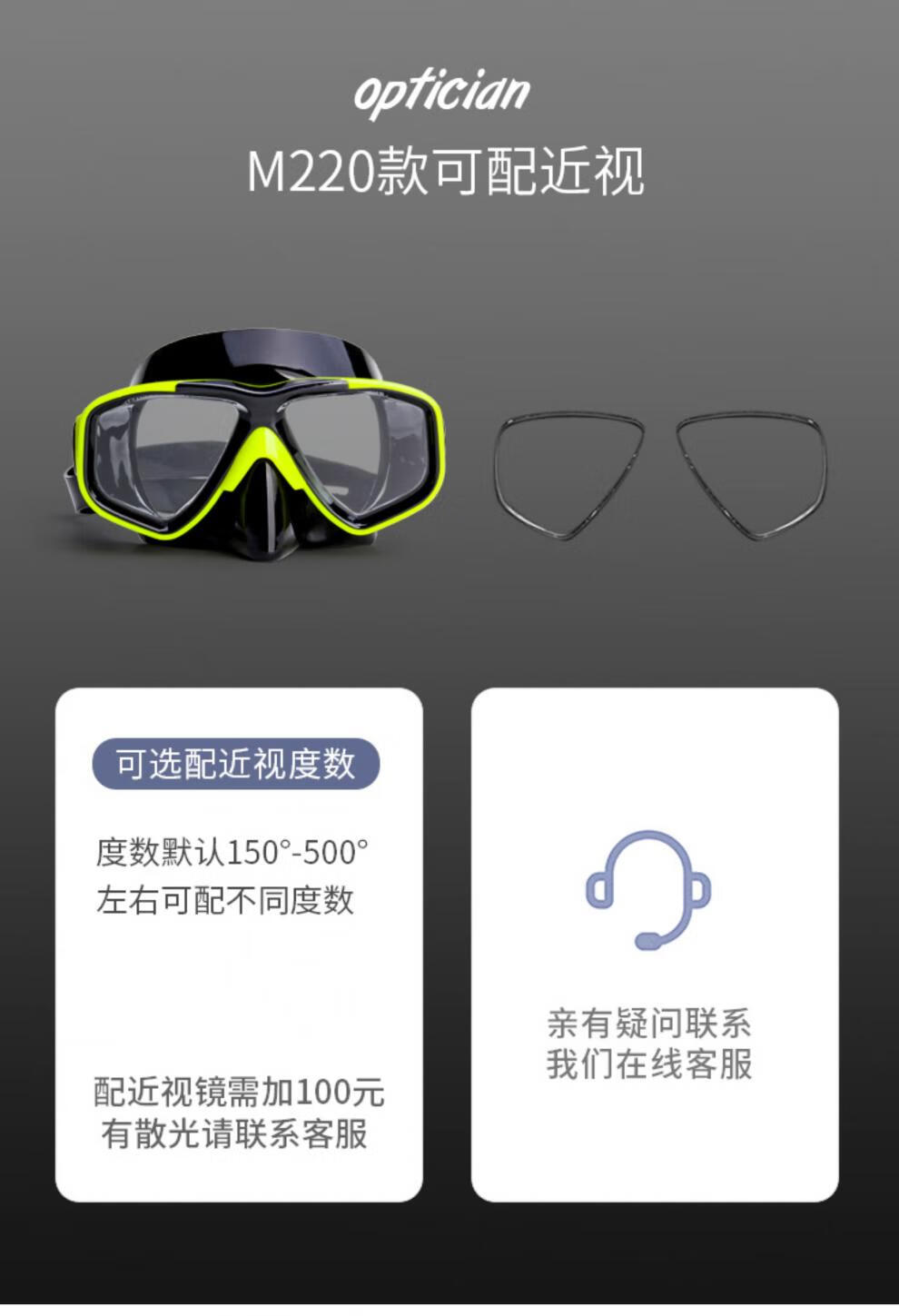 AQUADIVE儿童潜水镜干 干拭呼吸管套装游泳护鼻一体面罩浮潜三宝 M220黄黑+SN118黄+黄潜水袜