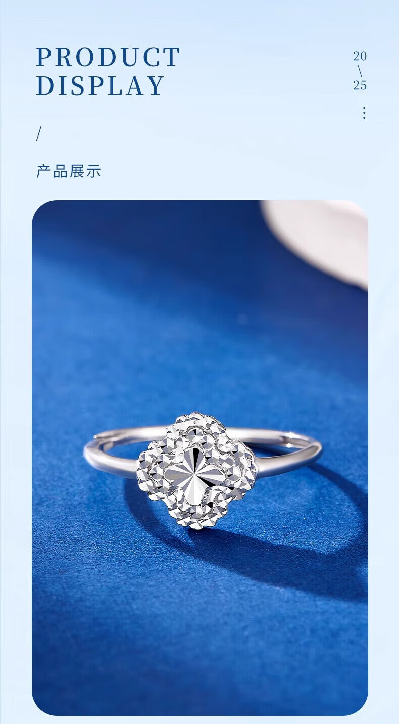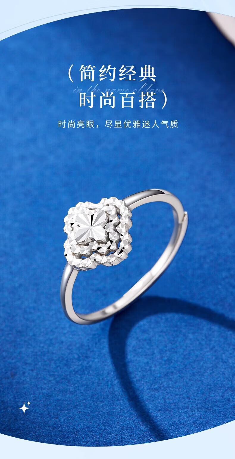 Lao Fengxiang PT950 platinum four-leaf clover ring for women platinum ring classic light luxury Mid-Autumn Festival birthday proposal gift platinum four-leaf clover ring about 3.1g + brand gift box