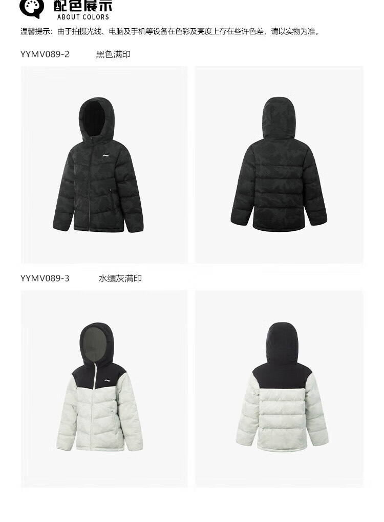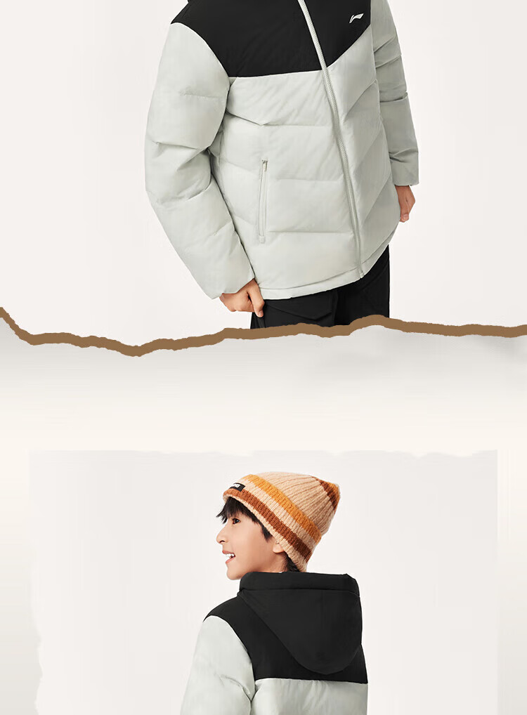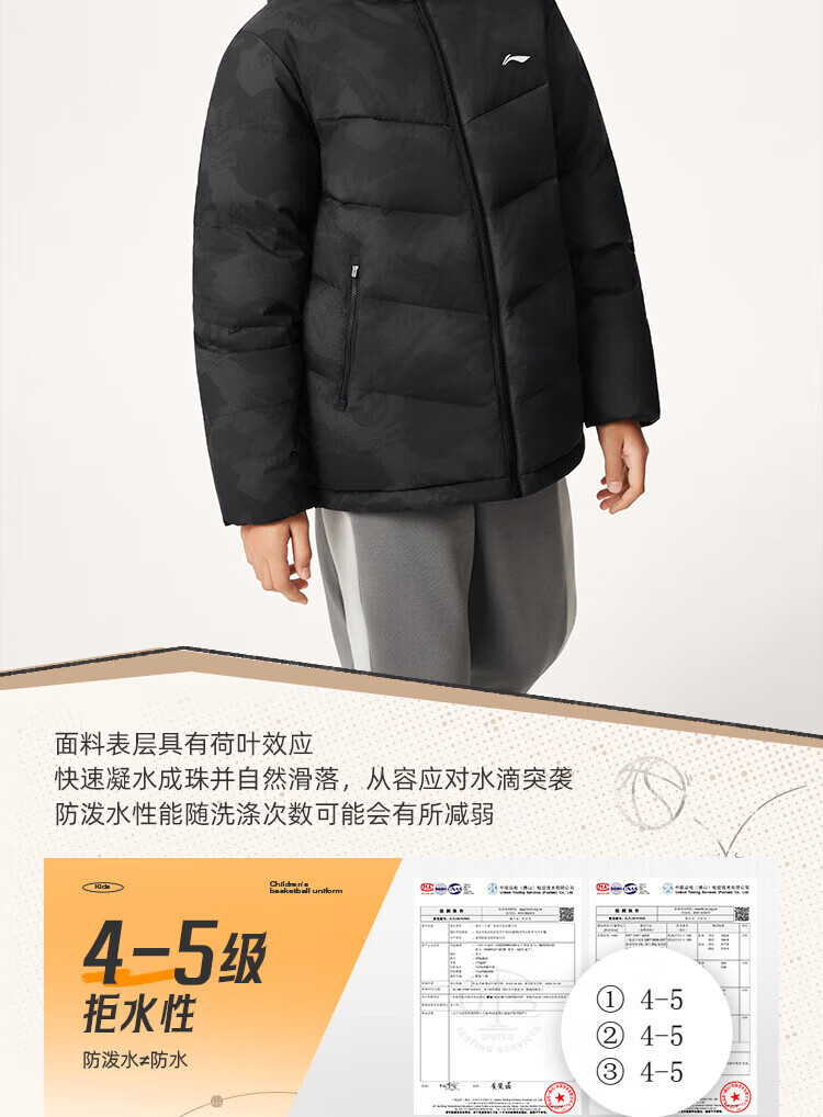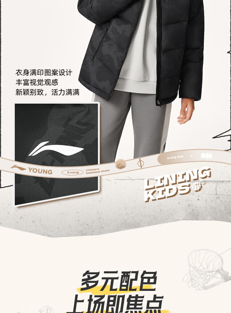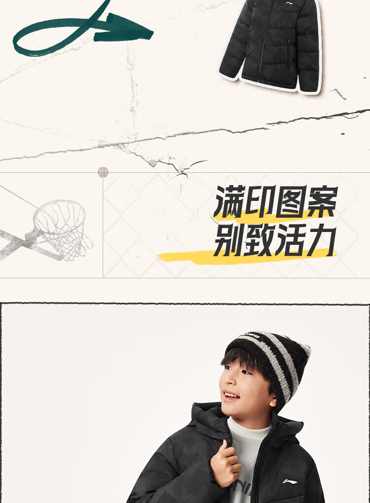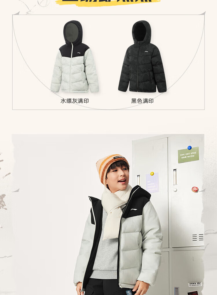 Li-ning (LI-NING) children's down jacket for men and large children 2026 autumn and winter new waterproof water-repellent thickened warm duck down youth jacket dark navy blue full print three-proof down content 85% 140