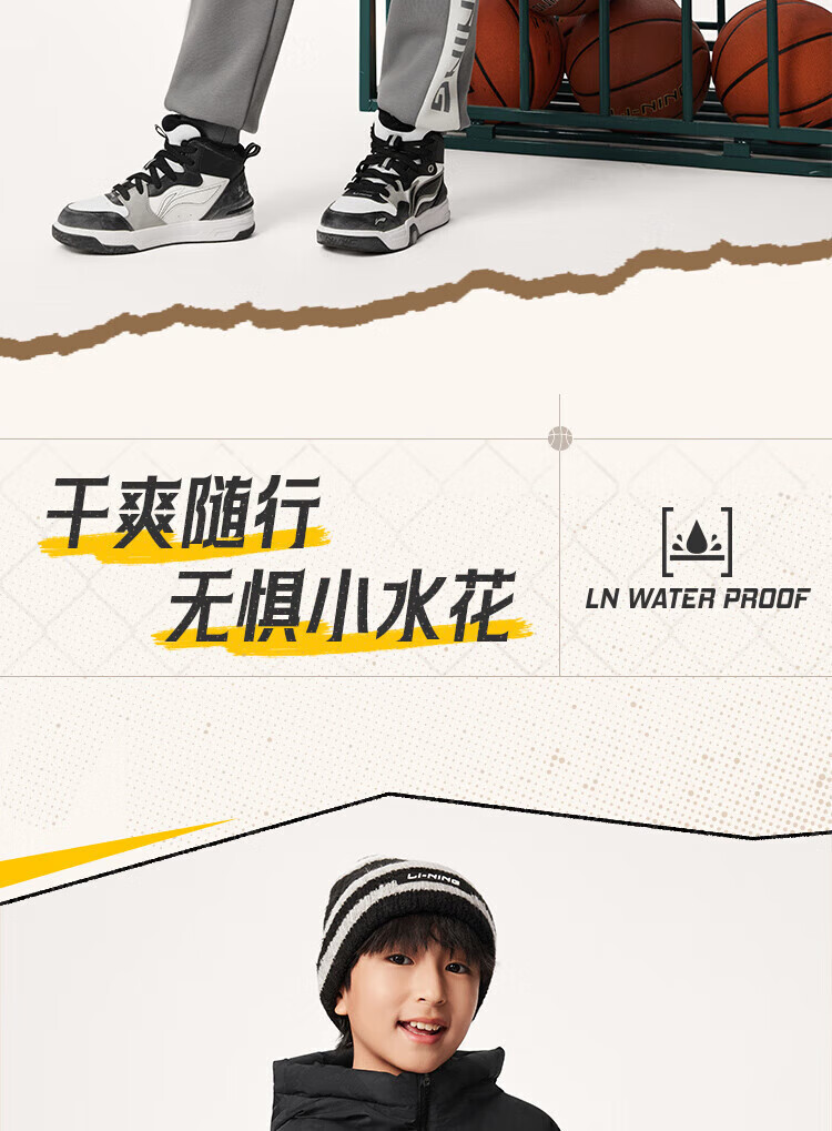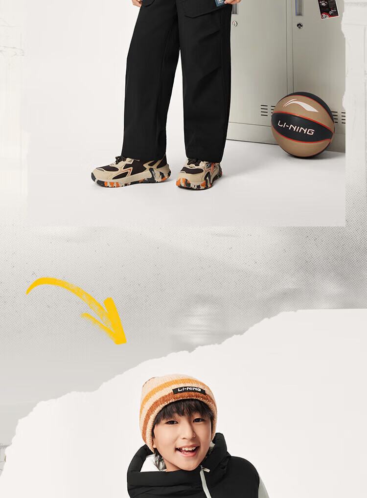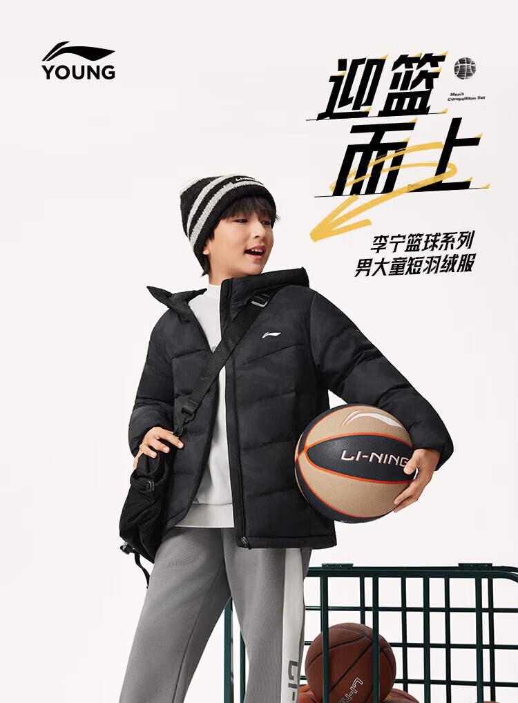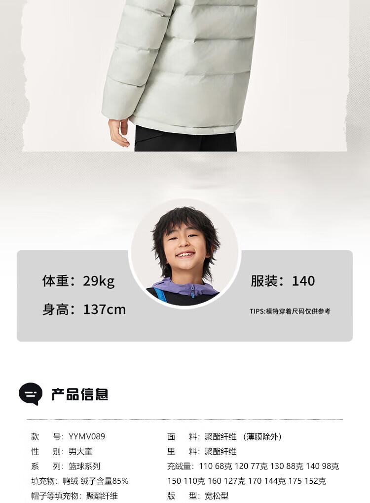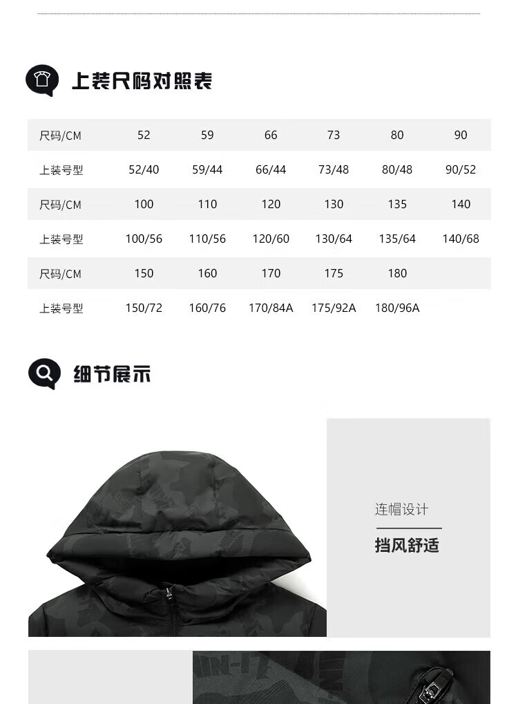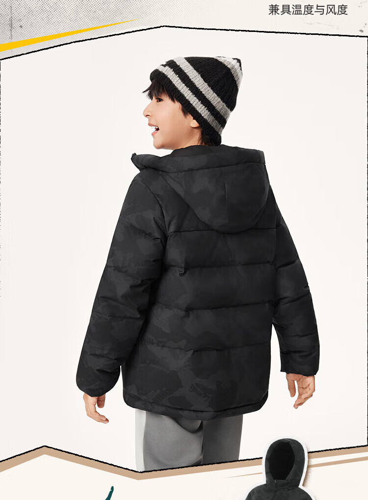 Li-ning (LI-NING) children's down jacket for men and large children 2026 autumn and winter new waterproof water-repellent thickened warm duck down youth jacket dark navy blue full print three-proof down content 85% 140