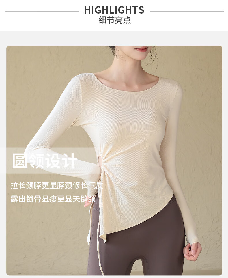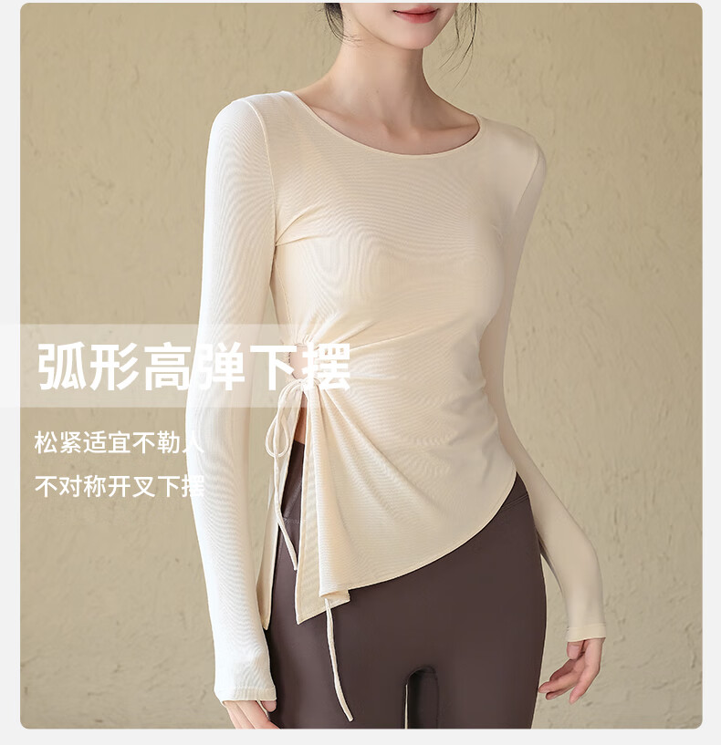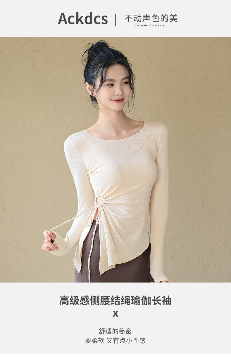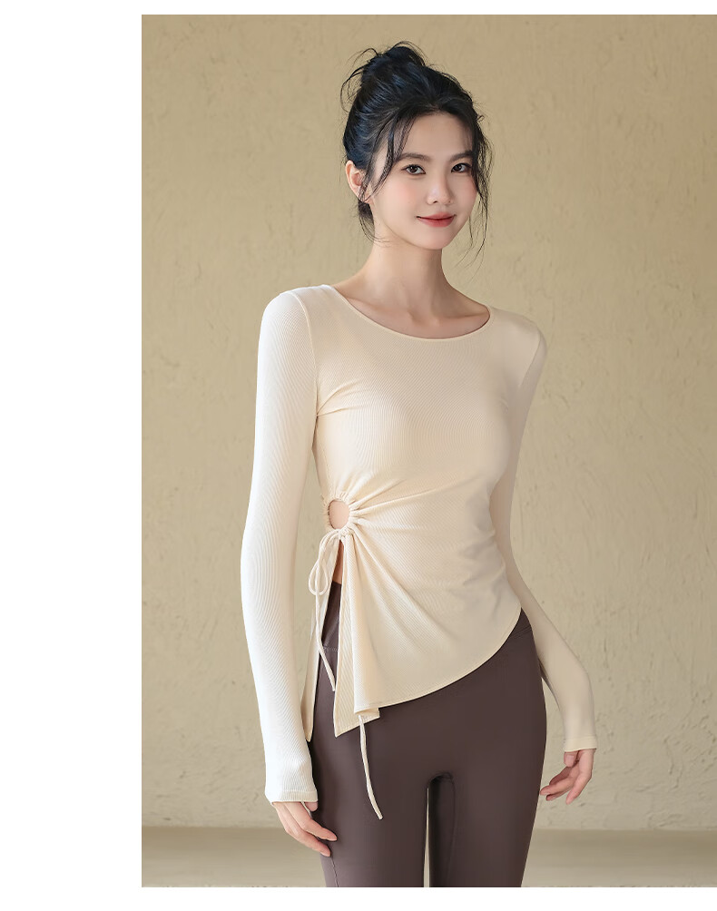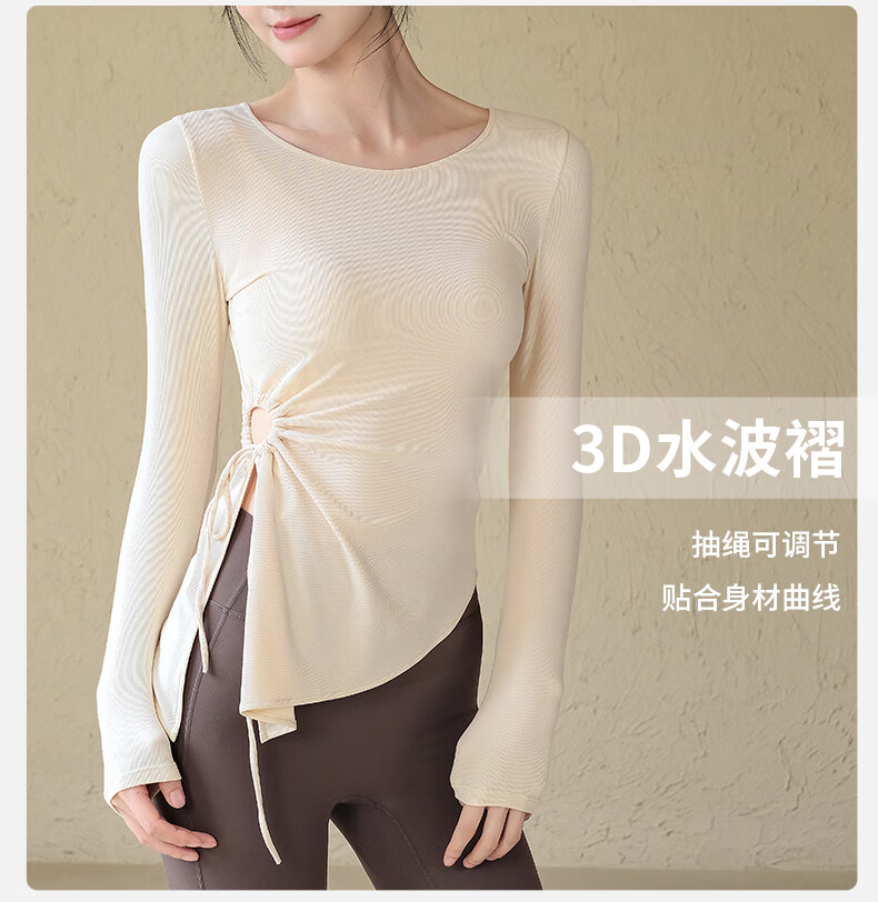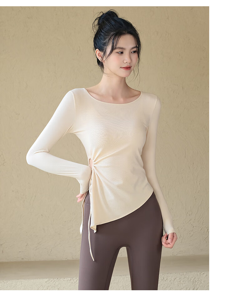 ACKDCS high-end yoga top for women in autumn and winter drawstring pleats Pilates fitness long-sleeved running sports suit Mica Yellow S