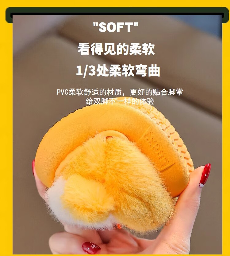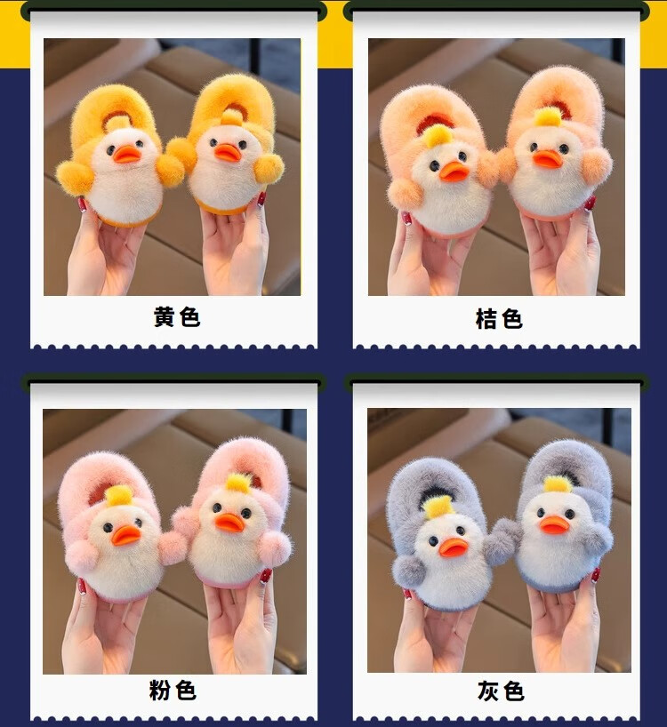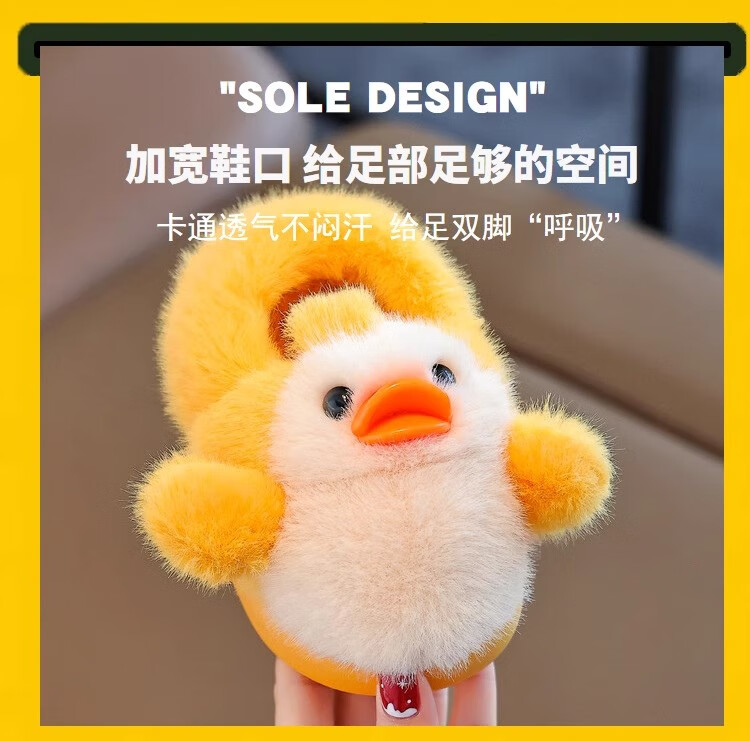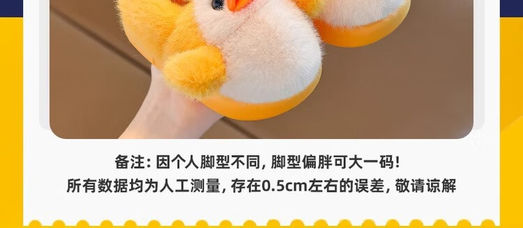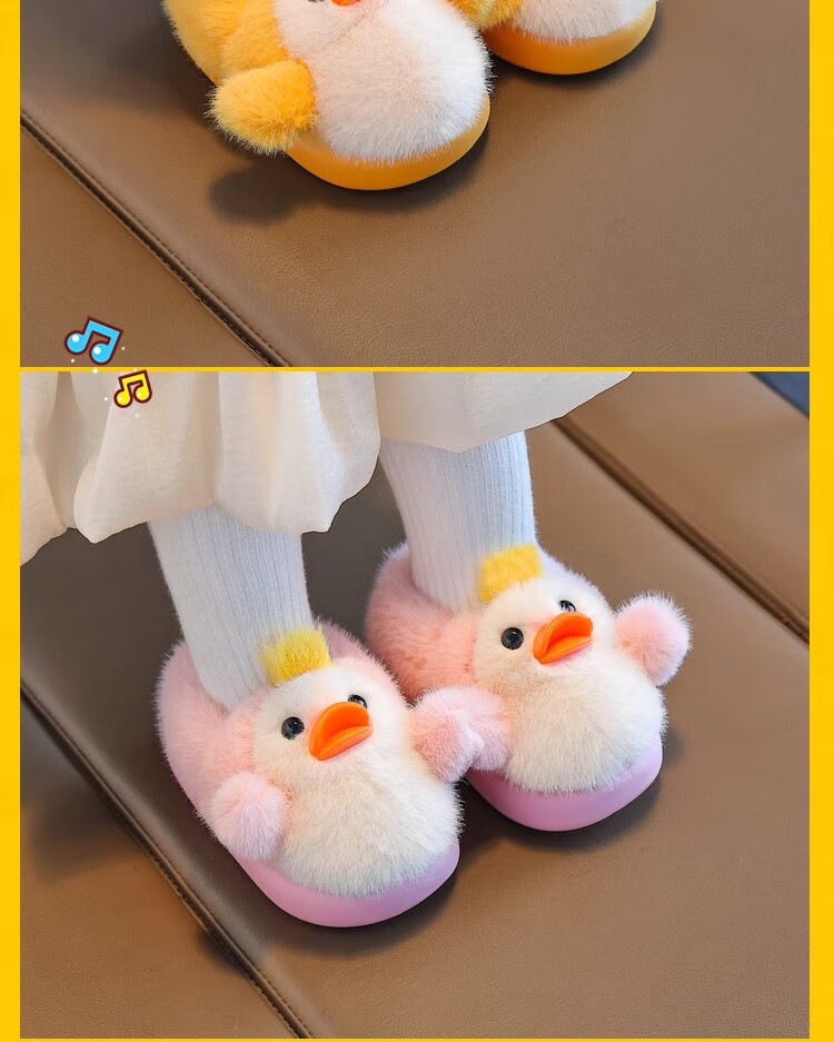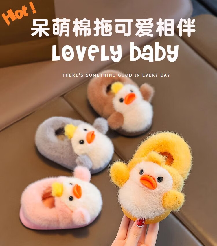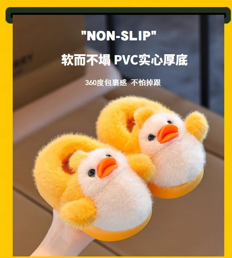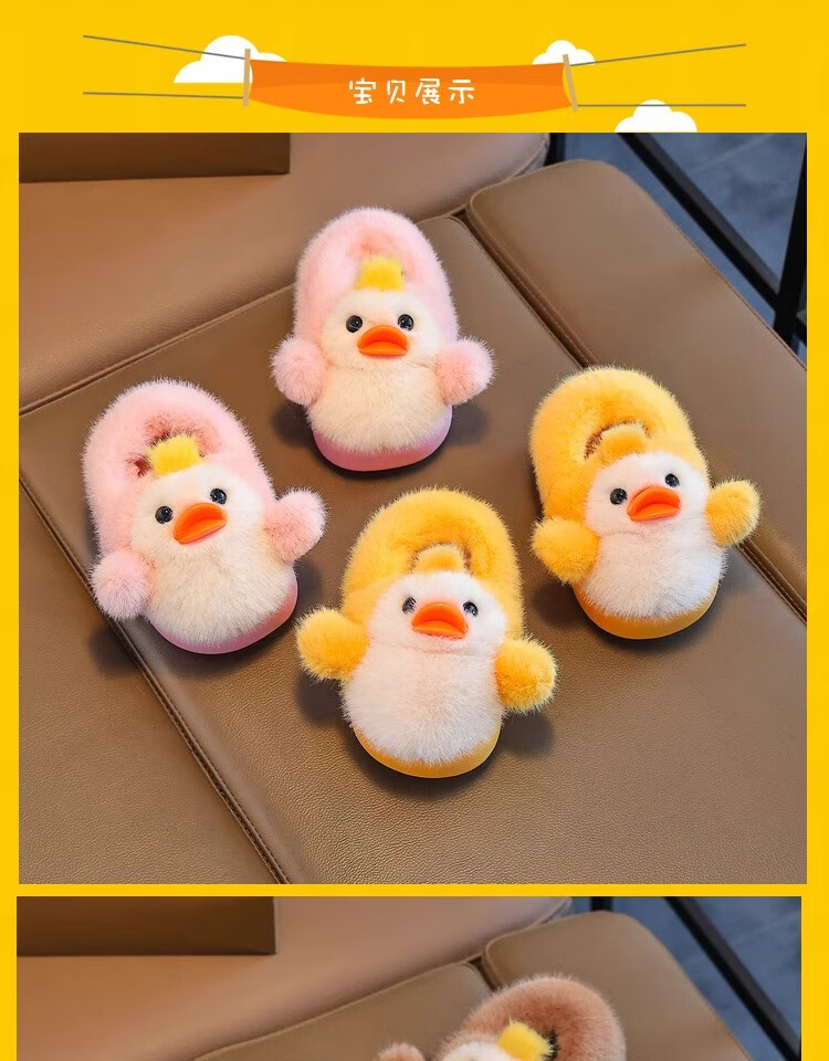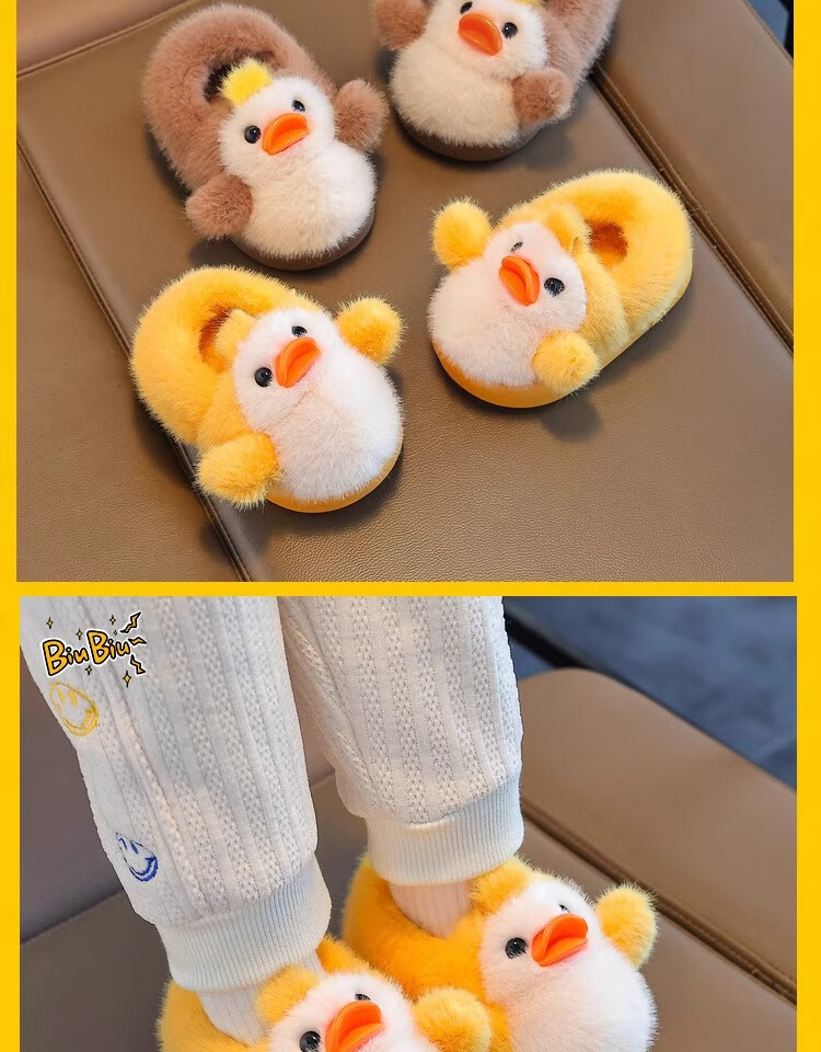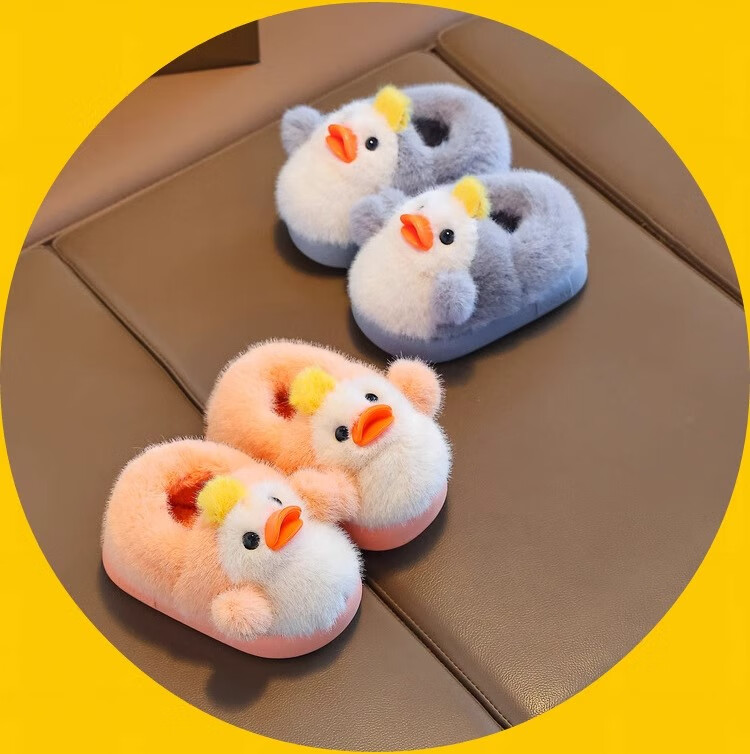 Zhizhou Furry Slippers Children's Cotton Slippers Bag Heel Winter Cute Little Yellow Duck Parent-child Warm Home Non-Slip Baby Cotton Shoes Apricot Yellow Little Yellow Duck Card size recommended to go up one size 22-23 (inner length 13.5CM)