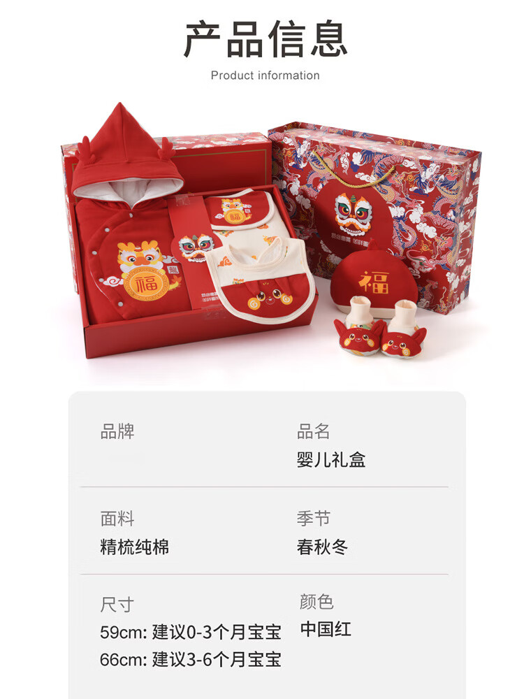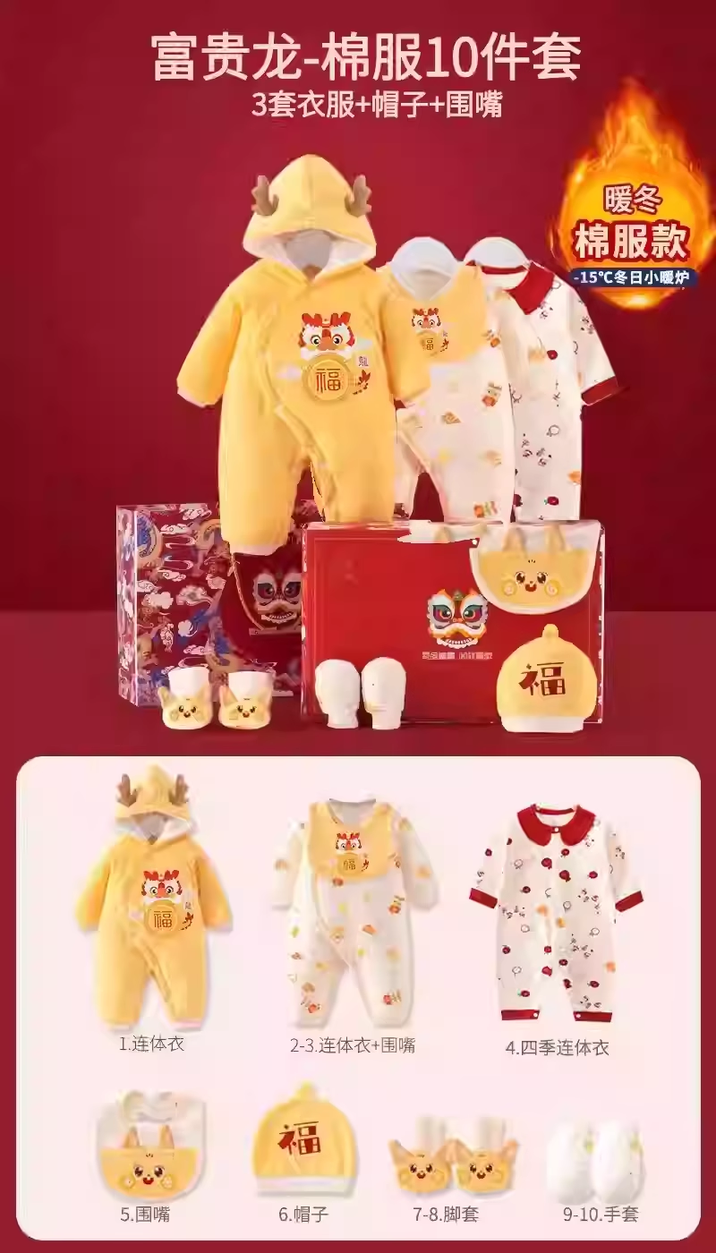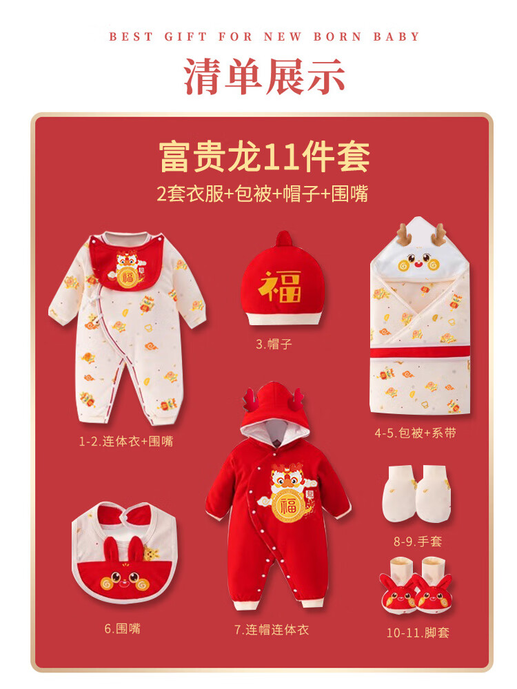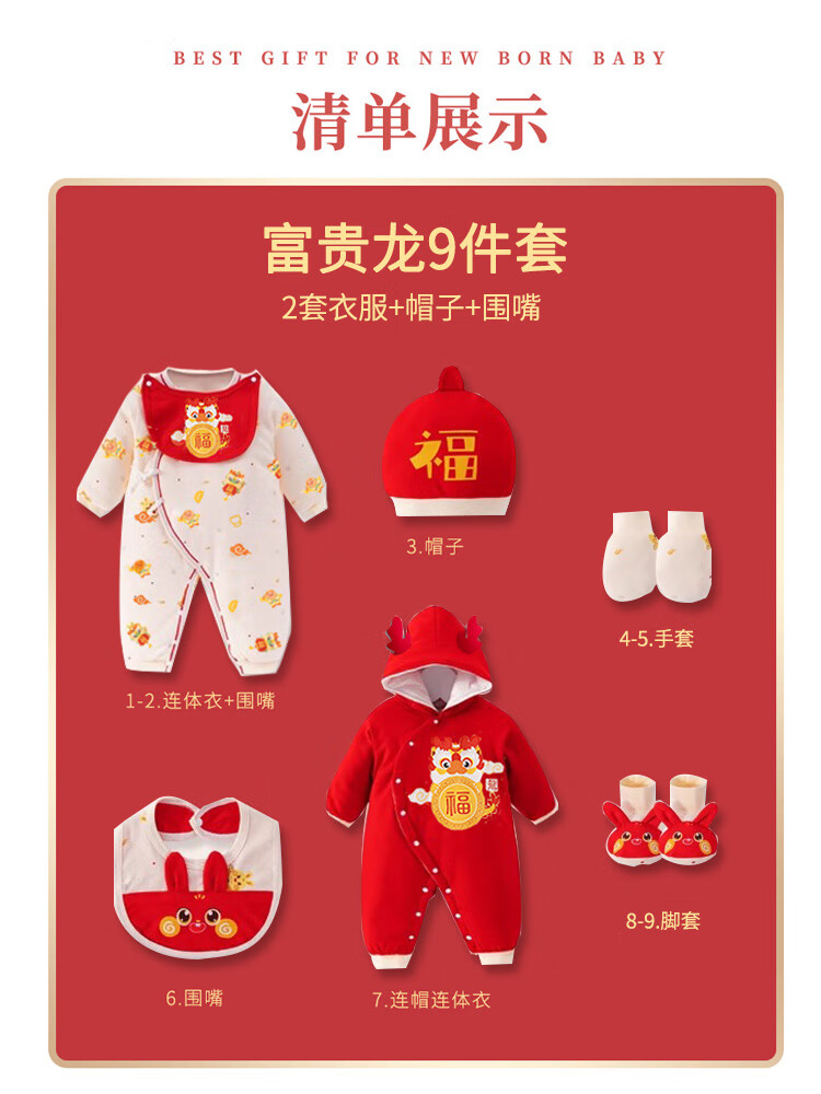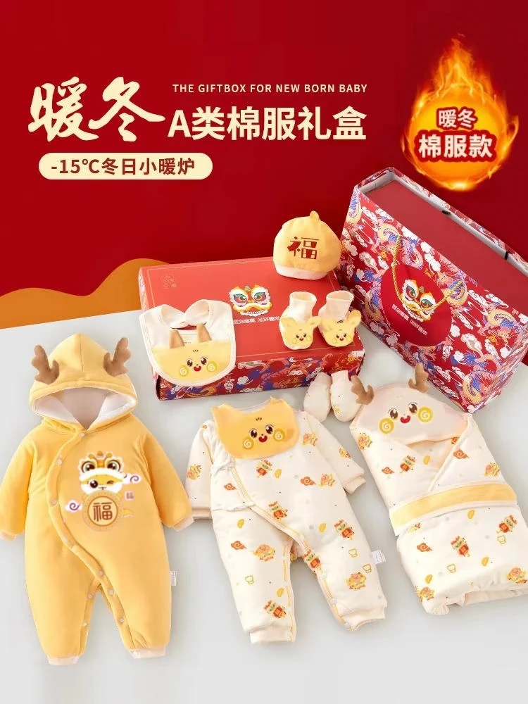 Cotton Fruit Newborn Baby Clothes Gift Box Winter Thickened Cotton Clothes Baby Autumn and Winter Set Full Moon Meeting Gift Supplies High-end Rich Snake Red--9-piece Set Winter Cotton Clothes 59cm Suitable for 0-3 Month Babies