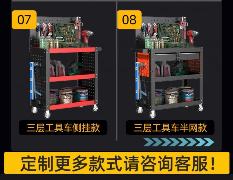 Shantou Lincun Tool Cart Tool Cabinet Mobile Multi-Function Workshop Repair Toolbox Trolley Operator Table Trolley Auto Repair Bright Orange/One Draw + Hanging Net (Wanxiang 360 Silent Wheel)