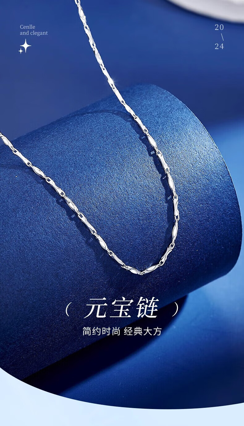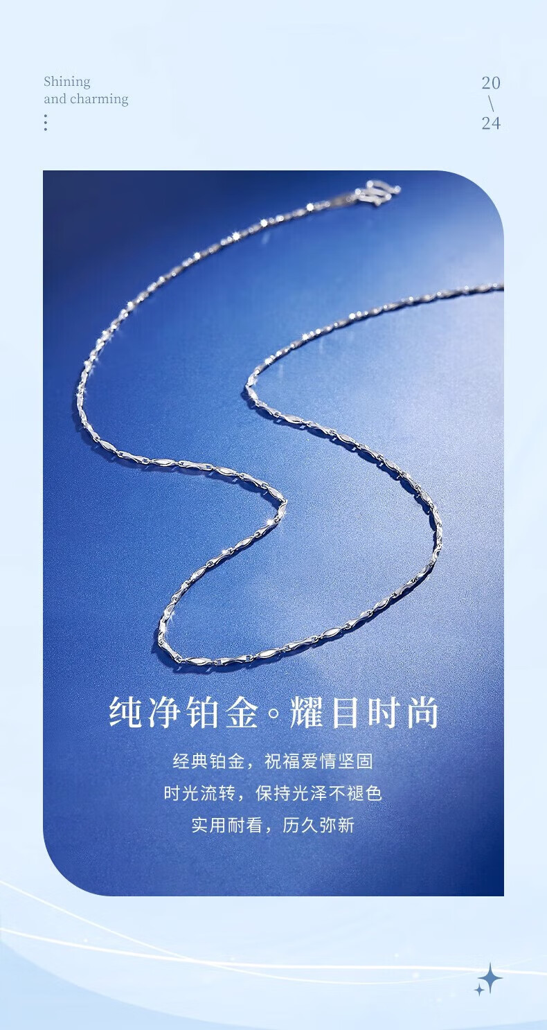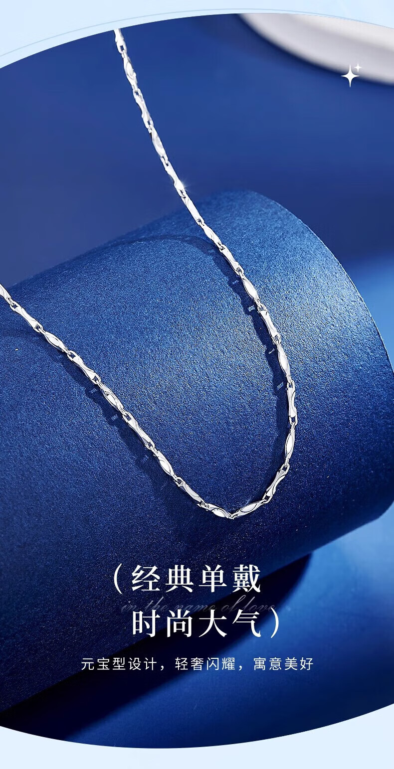Lao Fengxiang PT950 platinum ingot chain for women, platinum necklace without pendant, fashionable sweater chain as a gift for the Year of the Horse. PT950 platinum ingot chain, about 3.6g, brand gift box
