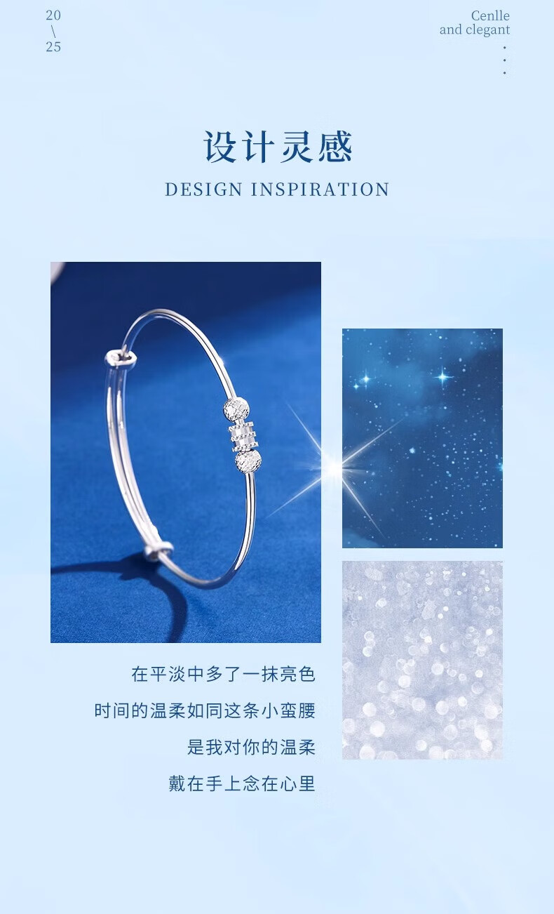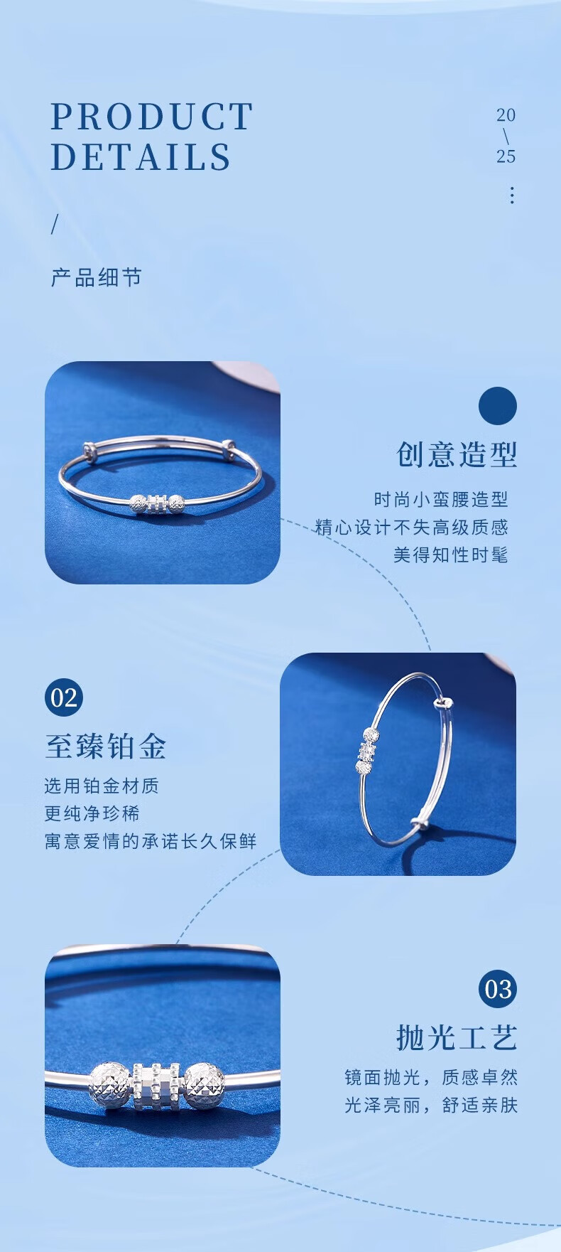 Lao Fengxiang PT950 Platinum Small Waist Bracelet Women's Pure Platinum Hand Accessories Chinese Valentine's Day Birthday Gift for Girlfriend and Wife PT950 Platinum Small Waist Bracelet Approximately 9.4g